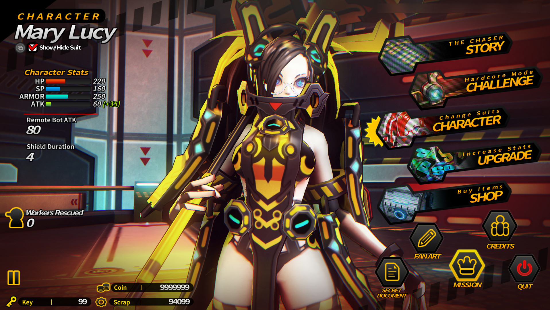 Особенности SMASHING THE BATTLE делают её идеальным выбором для тех, кто хочет быстро отвлечься от реальности и выплеснуть всю свою энергию в безопасном, виртуальном пространстве. Игра предлагает множество бонусов и предметов для разблокировки, так что процесс прокачки и кастомизации никогда не надоест. Графика, хоть и не претендует на звание AAA-шедевра, выполнена в ярком и сочном стиле, который отлично передаёт атмосферу весёлого экшена. А саундтрек? Он как раз тот самый, что заставляет вас чувствовать себя главным героем боевика 90-х, пока вы крушите роботов в горящем ангаре. Так что, если вы ищете динамичный экшен от третьего лица, где можно вдоволь нарубиться, насладиться простым, но затягивающим геймплеем и просто хорошо провести время, SMASHING THE BATTLE — ваш надёжный друг и отличный способ сказать всем этим железякам: «Вы не пройдёте!».