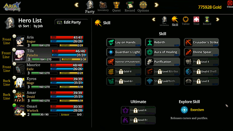 В центре сюжета Aria Chronicle находится принцесса Ария, которая отправляется в путешествие, и во время этого путешествия узнаёт о таинственном Культе, организации с неимоверными возможностями. Теперь принцессе со своими подданными предстоит сразиться с многочисленными врагами, преодолеть множество разных препятствий и узнать много нового интересного об этом фэнтезийном мире.