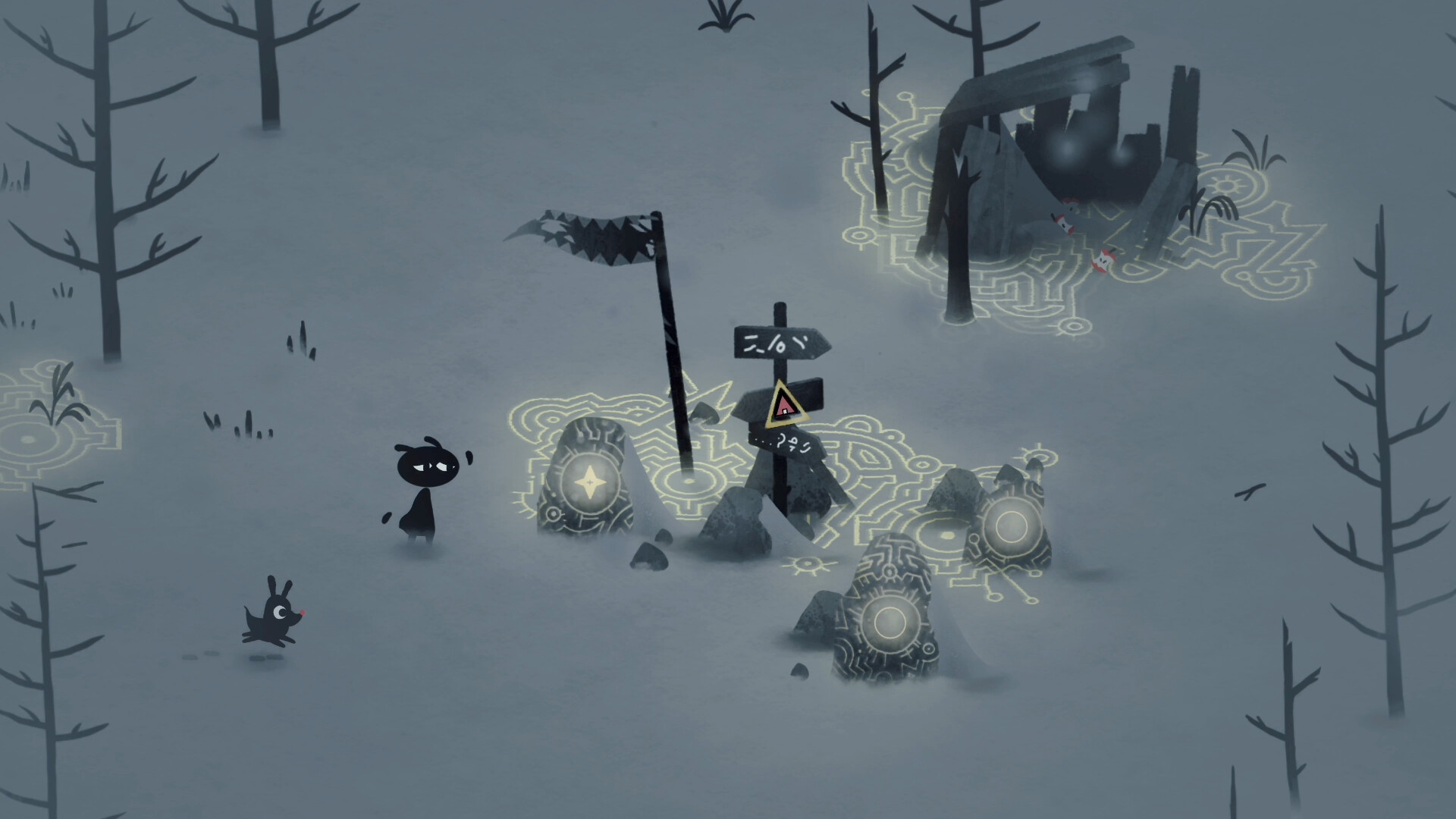 Каким-то образом вы оказались далеко от своего дома — сердца леса. Вы не помните, как это случилось. Вокруг вас незнакомые деревья и кусты. Вы чувствуете себя потерянным и одиноким. Но тут вы слышите лай. Он доносится из-под ближайшего куста. Вы подходите ближе и видите там щенка. Вы понимаете, что не можете оставить его в беде.