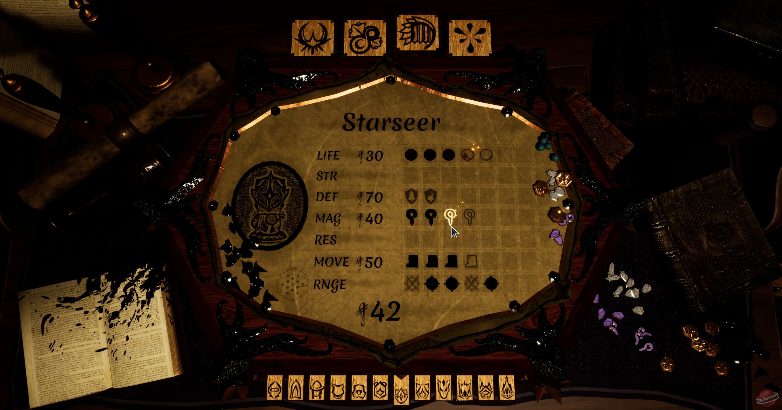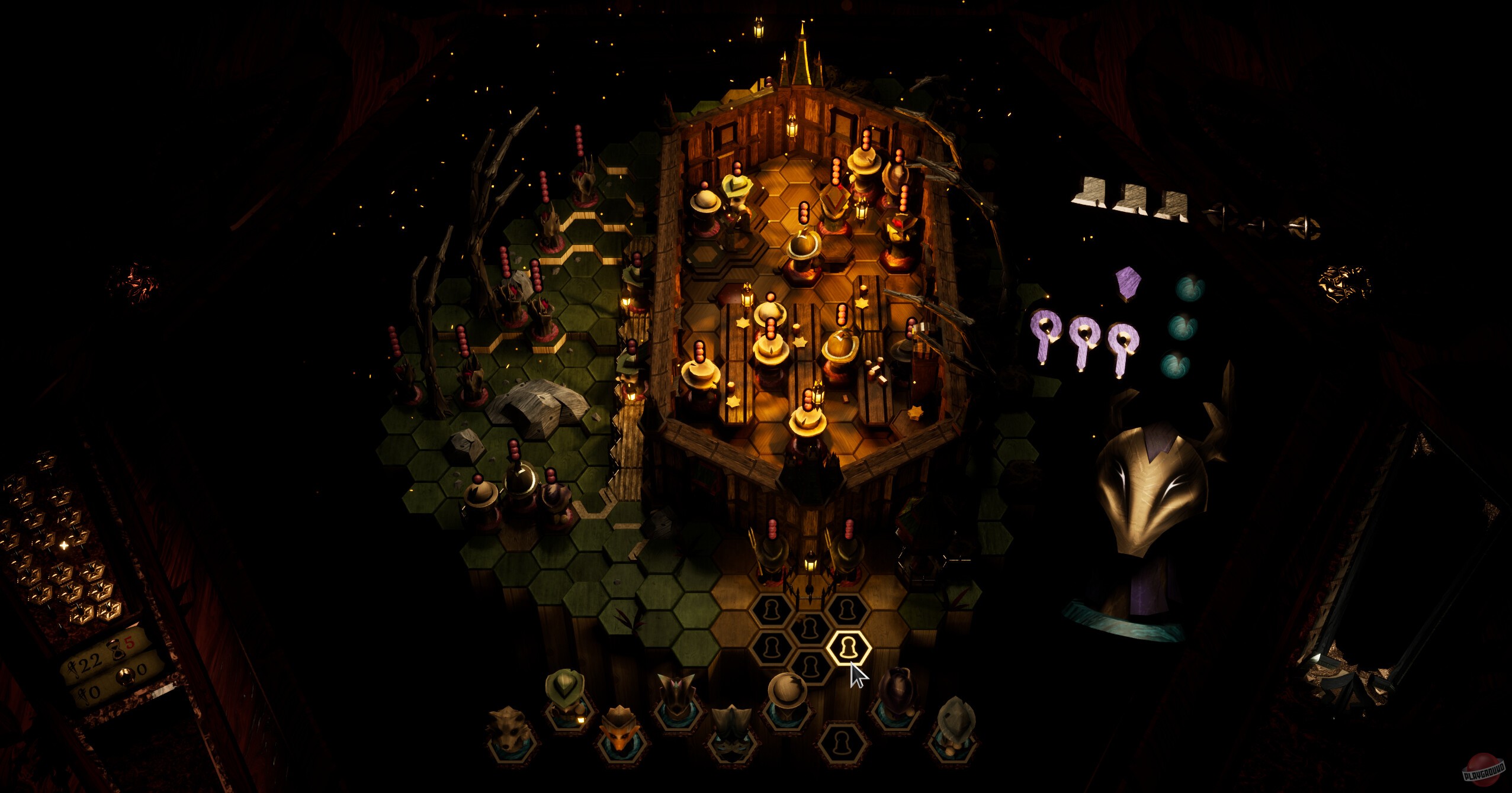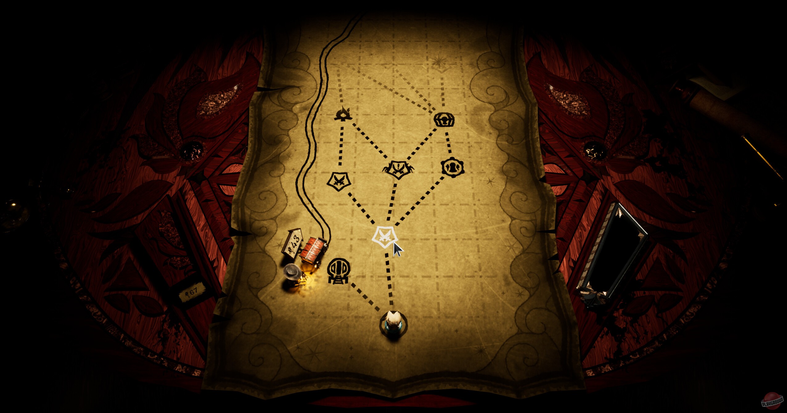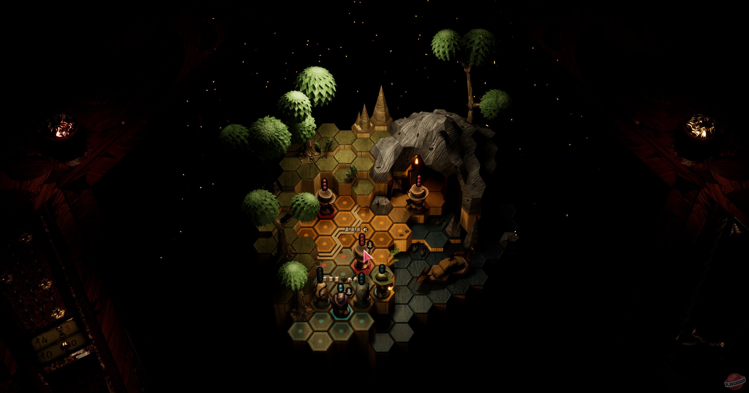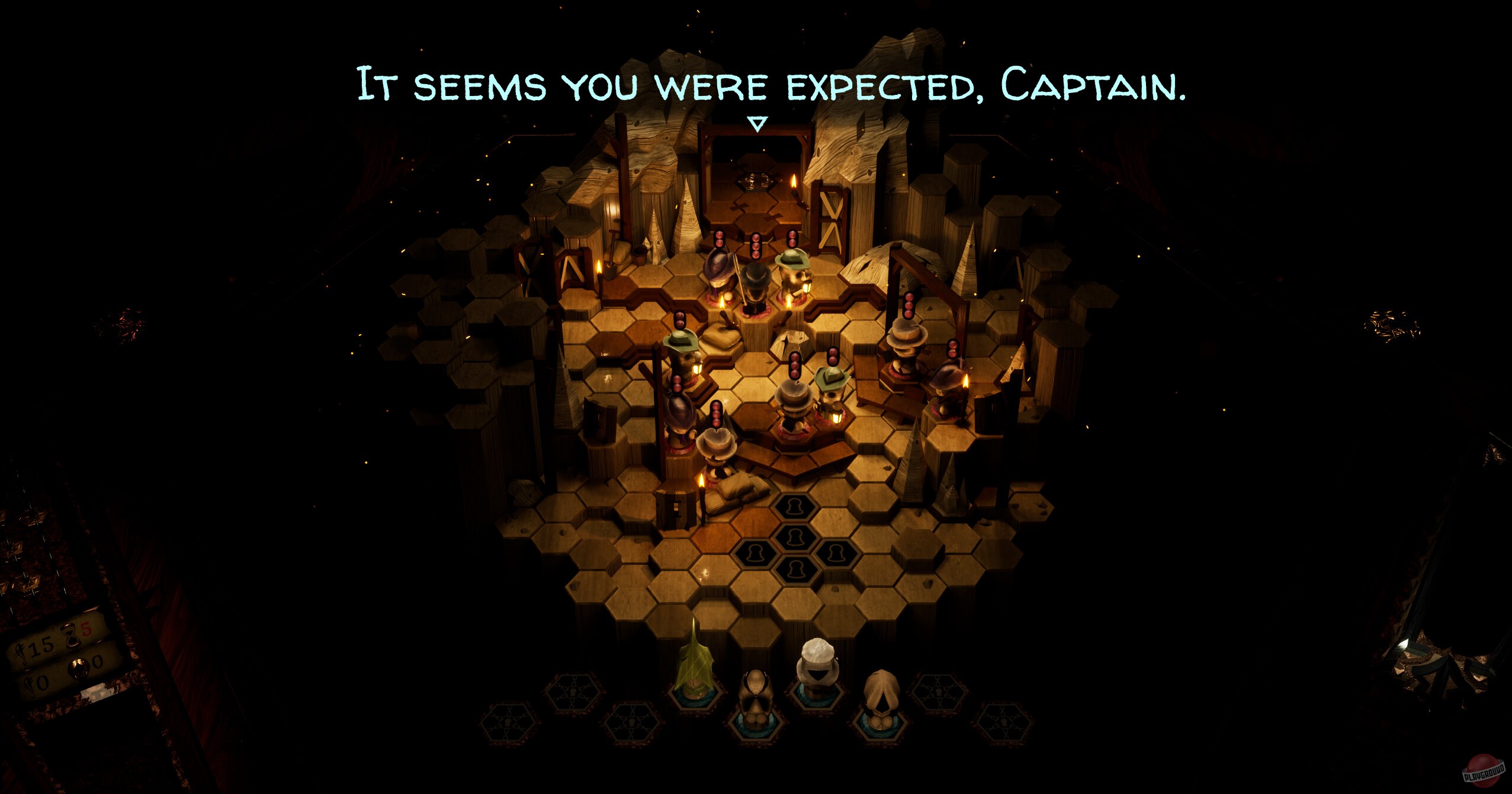 Какое-то странное существо заставляет вас играть в настольную игру с деревянными фигурками. Атмосфера жутковатая, все эти фигурки резные, а само существо явно что-то замышляет. По сюжету вы капитан, который ищет какую-то бездну, но сначала надо захватить континент и найти дирижабль. По жанру это обычная пошаговая тактика — двигаете фигурки по клеткам, каждая умеет что-то своё. Между боями ходите по каким-то запертым комнатам, разгадываете загадки, находите новых персонажей. Интересно то, что врагов можно переманивать к себе в команду после победы — не убиваете, а забираете себе.