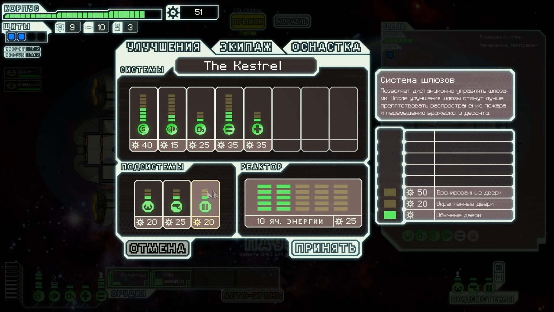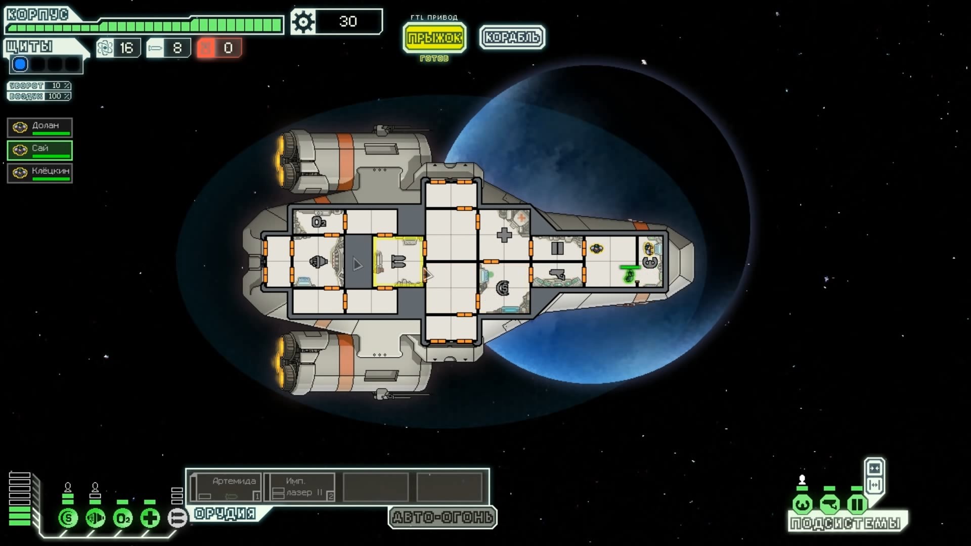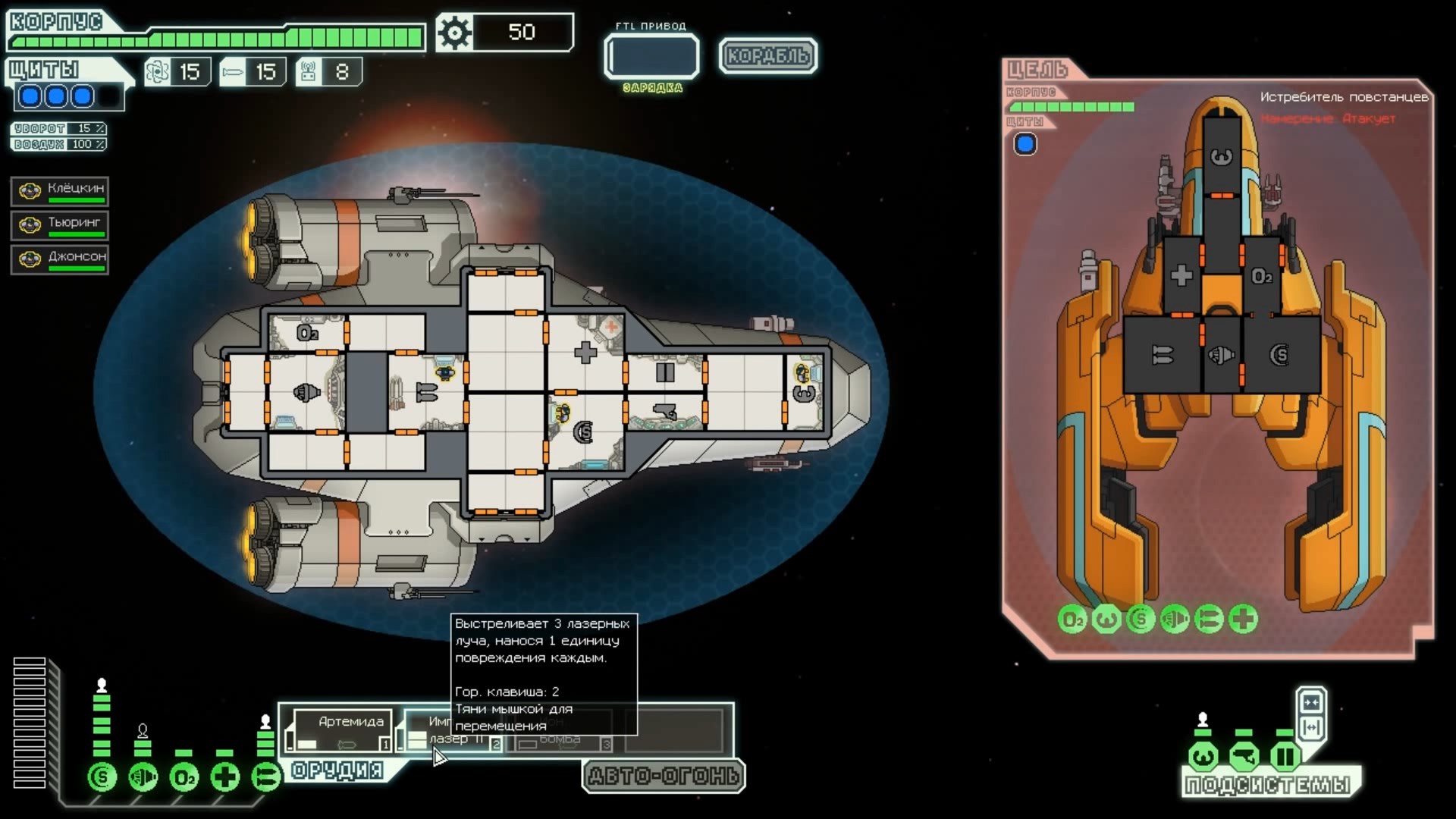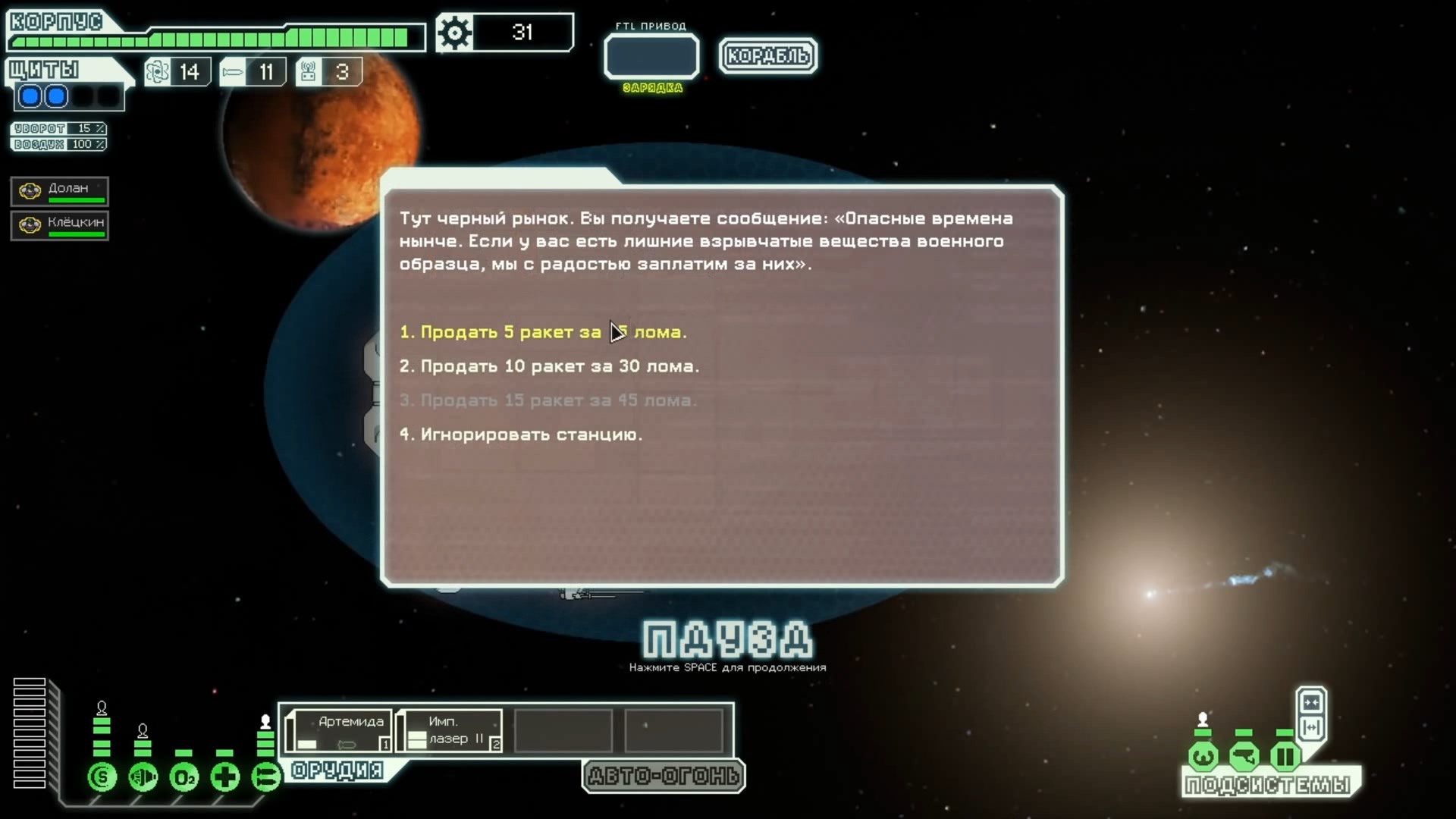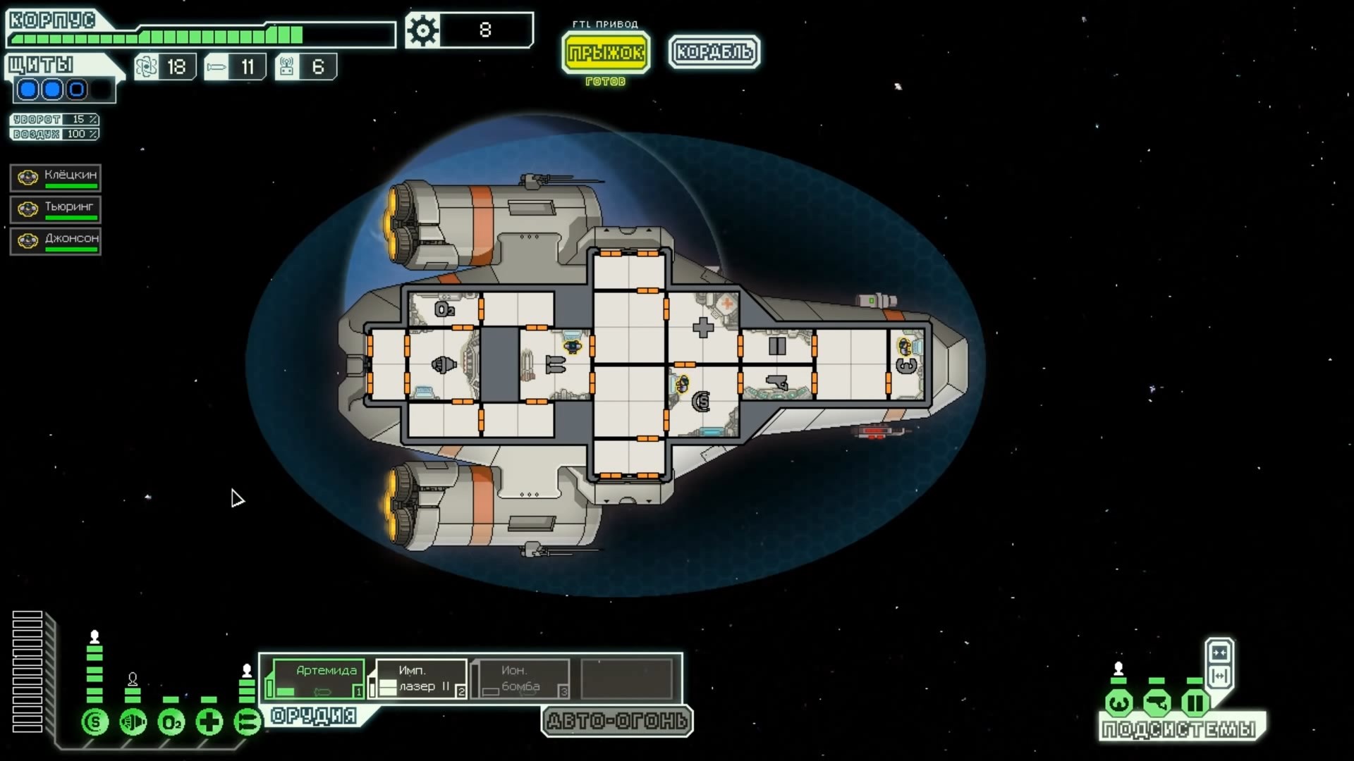 FTL: Faster Than Light – это проект, который сочетает в себе элементы нескольких разных жанров. Здесь есть механики из привычных стратегий, космического симулятора, а также roguelike с массой возможностей. Основная цель игры – поддерживать работоспособность систем жизнеобеспечения космического корабля, позволяя экипажу преодолеть отрезок от стартовой до конечной точки. Процедурно-генерируемые локации создают случайные события, которые оказывают рандомное влияние на атмосферу вашего судна. Помимо прочего, ваш корабль будет постоянно подвергаться атакам представителями агрессивной внеземной расы, захватывающей системы одну за другой. Нанося урон вашему космическому средству передвижения, пришельцы попытаются ликвидировать вас и ваших подопечных, выполняющих важную миссию. Руководство федерации поручило вам провести разведку и установить место нахождения вражеского флагмана, чтобы нанести по нему точечный удар и спасти галактику от неминуемого уничтожения. Потребность в постоянном контроле – из-за повреждений разных отсеков корабля вам постоянно придется перенаправлять энергию и руководить ремонтными работами; Тактические приемы и маневры – останавливайте время, чтобы распределить обязанности между экипажем и продумать свой следующий ход; Разнообразие рас – более 6 уникальных народов со своими оригинальными особенностями ждут, когда вы возьмете их под свой контроль (к примеру, Валуны, Богомолы, Золтаны и так далее); Нелинейность происходящего – выполняйте квесты несколькими разными способами и добивайтесь разных финалов. Если ваш корабль уничтожают, придется начинать весь прогресс сначала. Перманентной является также гибель членов экипажа – в таком случае нужно будет нанимать новых бойцов, учитывая их сильные и слабые стороны. Каждое новое прохождение будет уникальным, так как условия, миры и параметры персонажей формируются случайным образом. Зарабатывая очки, открывайте новые типы кораблей, модули и специалистов, чтобы в этот раз дать агрессорам достойный отпор.