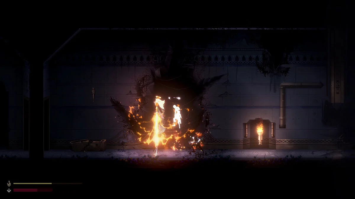 Рисованная метроидвания с механикой «жонглирования» противником и уникальной игровой особенностью: после одиночного удара по источнику огня меч вспыхивает, пронзая тьму и открывая зрелищные способности. Использовать пламя необходимо с умом, ведь слишком многочисленные враги могут быстро потушить его и будут пытаться держать героя во тьме.