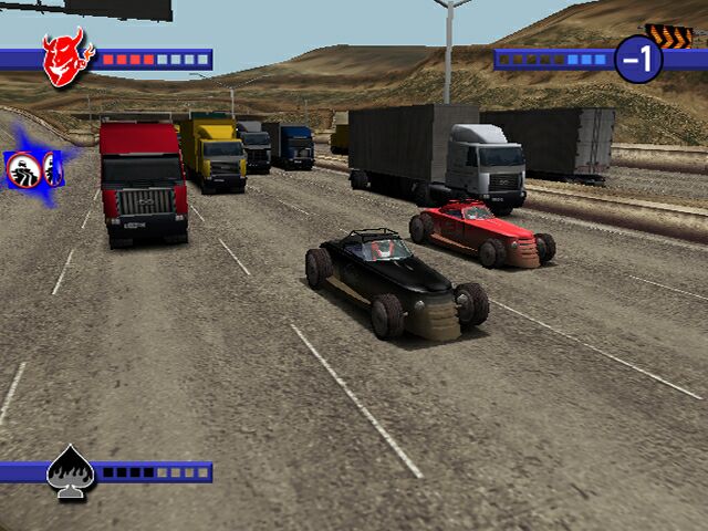 Аркадная гоночная игра с видом сверху вниз. Соревнуйтесь с соперниками на тринадцати сложных и разнообразных трассах, стараясь использовать все необходимые средства для борьбы с ними. Вы можете использовать пулемёты, миномёты, ракеты, дробовики, масляные пятна, огнемёты, мины, бомбы и ослепляющие сигнальные ракеты. Ваша главная задача — остаться целым и добраться первым до финиша.