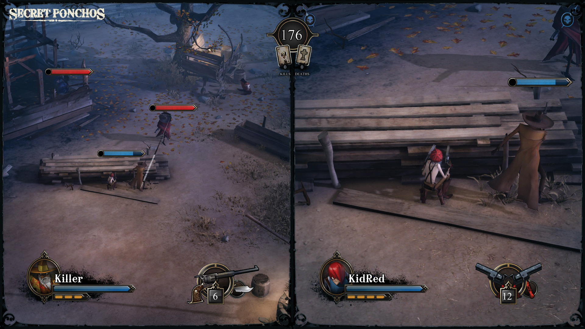 Геймплей Secret Ponchos — это идеальный микс стратегии и скоростной реакции. Это не просто "шутер от третьего лица", это настоящий поединок дуэлянтов, где важна каждая секунда. Вы будете играть в напряженные дуэли один на один, кооперативные командные бои (2 на 2 или 3 на 3) и масштабные схватки Guns Blazing для восьми игроков одновременно. Каждый из разнообразных персонажей обладает своим уникальным оружием, способностями и стилем ведения боя, что делает каждую встречу непредсказуемой. Хотите залечь в засаду за бочкой? Отлично! Предпочитаете агрессивный натиск? Вперед! Главное — не попасть под перекрестный огонь и не стать легкой мишенью для хитрого противника.