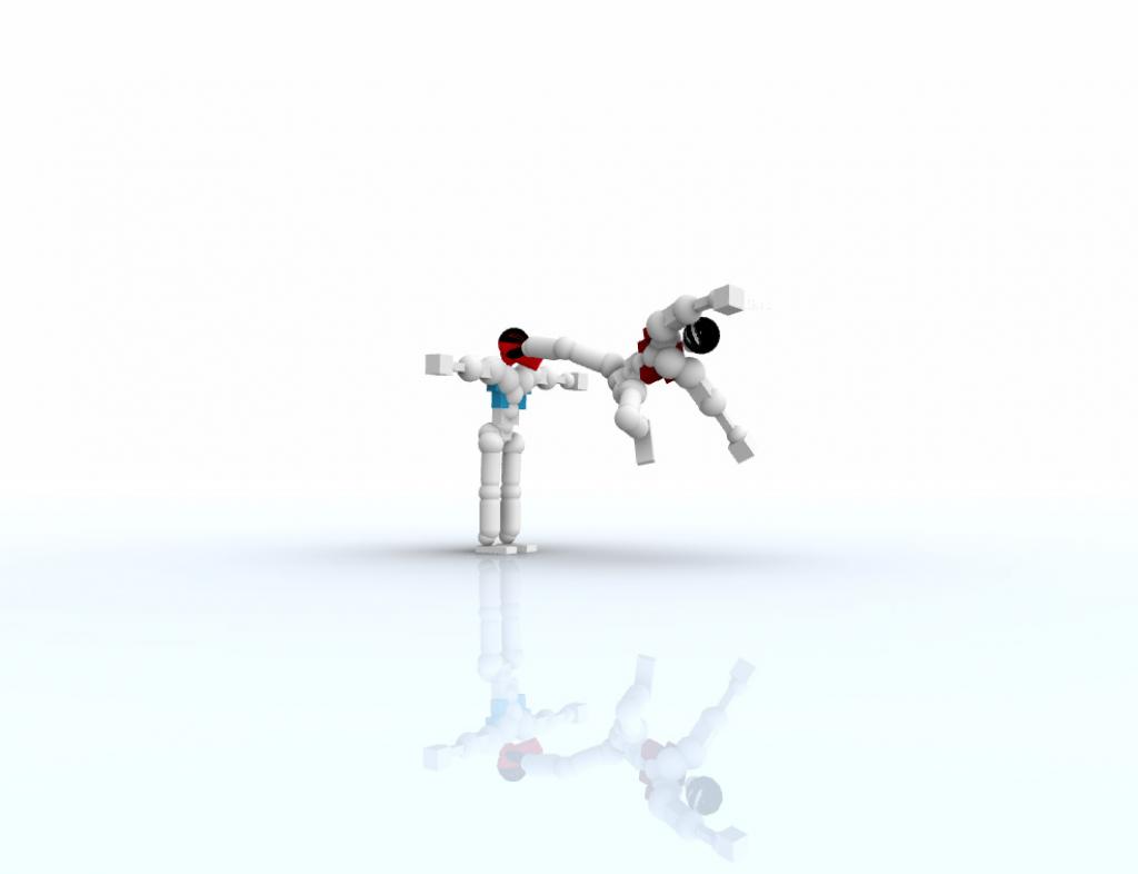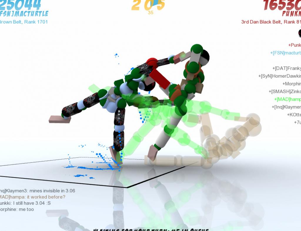 Геймплей Toribash настолько прост в концепции и одновременно сложен в освоении, что может свести с ума даже самого терпеливого игрока. Каждый ваш ход — это возможность задать состояние для каждого сустава вашего бойца: «расслабить», «напрячь» или «удерживать». Из этих, казалось бы, примитивных действий рождаются эпические (и зачастую крайне комичные) боевые последовательности. Представьте, что вы пытаетесь сделать удар ногой, но вместо этого ваш персонаж падает на спину и начинает судорожно дрыгать конечностями, как перевернутая черепаха. Именно такие моменты и делают Toribash культовой игрой с безумной физикой, полным демембрированием и комическим стилем крови. Это не просто файтинг, это песочница для создания самых нелепых и зрелищных роликов.