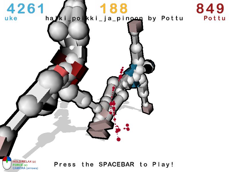 Забудьте про стандартные файтинги, где вы просто жмёте кнопки и ваш персонаж сам выполняет крутые связки! В Toribash вы не управляете героем — вы становитесь его злым гением-кукловодом, который садистски манипулирует каждым суставом своего безвольного манекена. Это не просто пошаговый файтинг, это уникальный симулятор физики и стратегии, где победа достаётся не тому, кто быстрее пальцами, а тому, кто лучше просчитает, как в следующий момент оторвать противнику голову или отправить его конечности в разные стороны экрана. Готовы ли вы стать маэстро хореографии насилия?