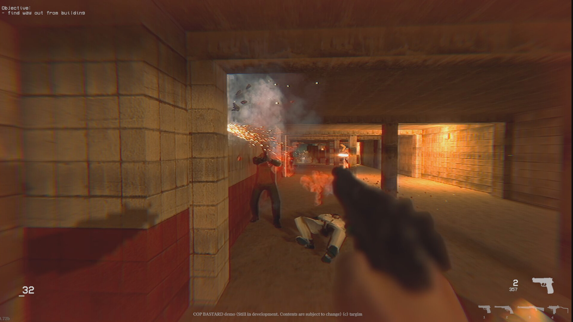 Классический шутер от первого лица, где нас заставляют бегать по японским улочкам в роли копа из Осаки, который по какой-то причине связался с якудзой. И раз это шутер, то геймплей такой: «беги вперёд и мочи всех, кто движется». Собственно, на этом всё.