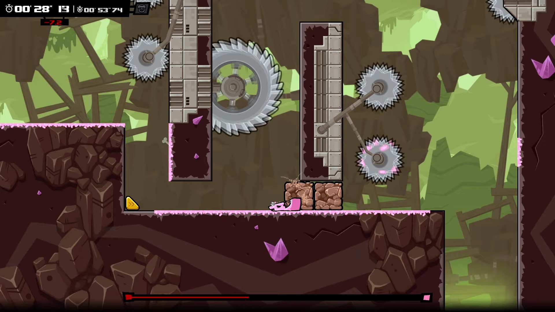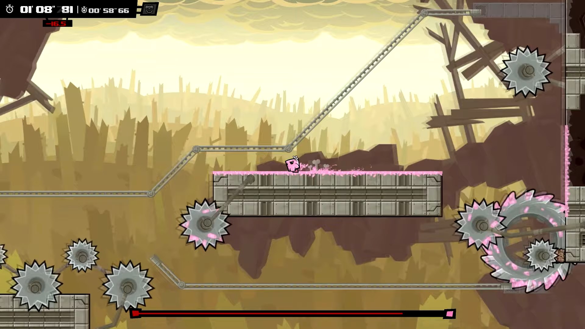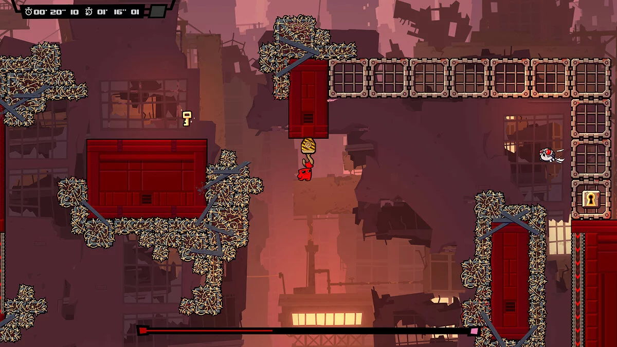 Приготовьтесь к самому мясистому, кроваво-веселому и безумно сложному приключению на свете! Super Meat Boy Forever — это не просто платформер, это экзамен на прочность ваших нервов и пальцев. Если вы думали, что спасение своей любимой Пластырь-девочки от злобного Доктора Фетуса в первой части было делом чести, то готовьтесь: теперь у вас есть дети! Да-да, наш бесстрашный кусочек мяса стал папочкой, и семейные ценности требуют немедленного действия. Эта игра в жанре автобегущего платформера (или как его еще называют — автраннер) переворачивает привычный геймплей с ног на голову: вы больше не управляете каждым прыжком напрямую. Вместо этого ваш персонаж бежит сам, а вам остается лишь нажимать всего две кнопки для прыжков и атак. Звучит просто? Ха! Это все равно что сказать, что взобраться на Эверест — просто прогулка. Только представьте: лазеры, пилы, шипы, огненные стены и другие изощренные ловушки, которые заставят вас умирать сотни, если не тысячи раз. Но не волнуйтесь, каждый провал — это шаг к победе и отличная возможность попрактиковаться в медитации на тему «как не разбить геймпад».