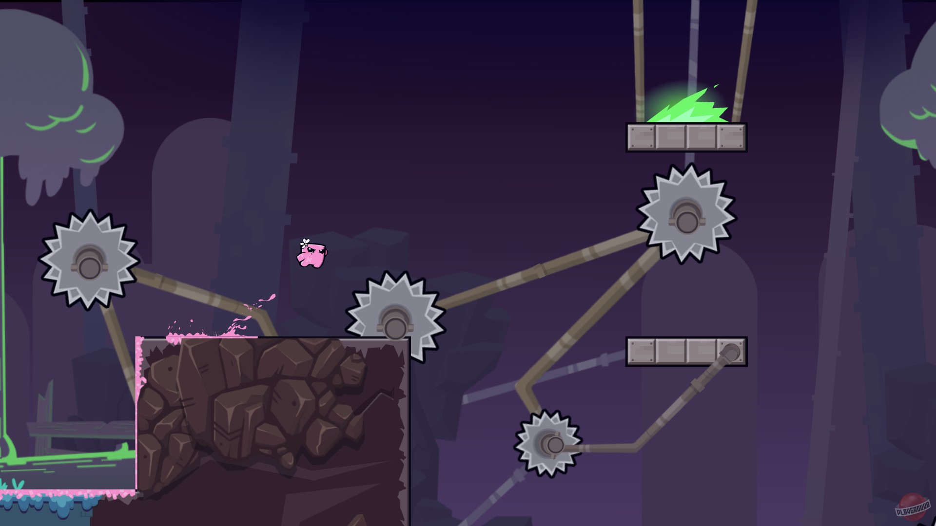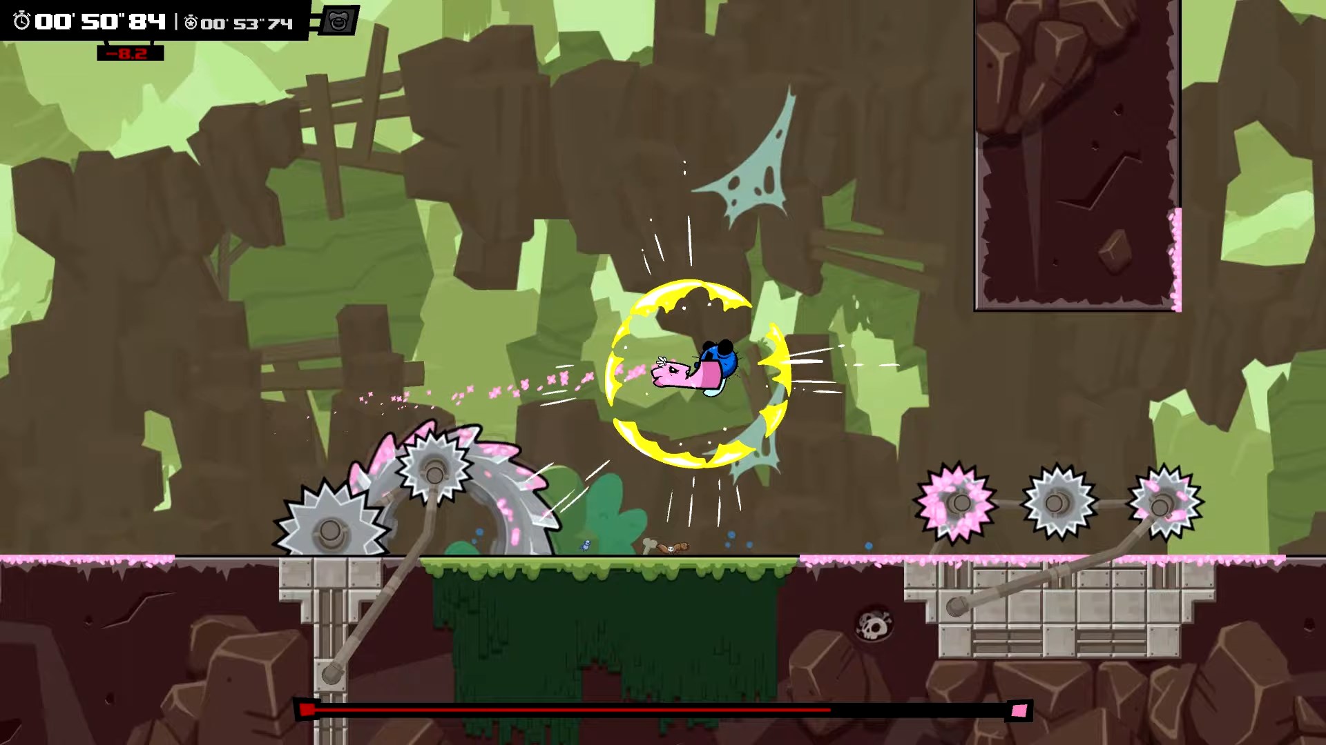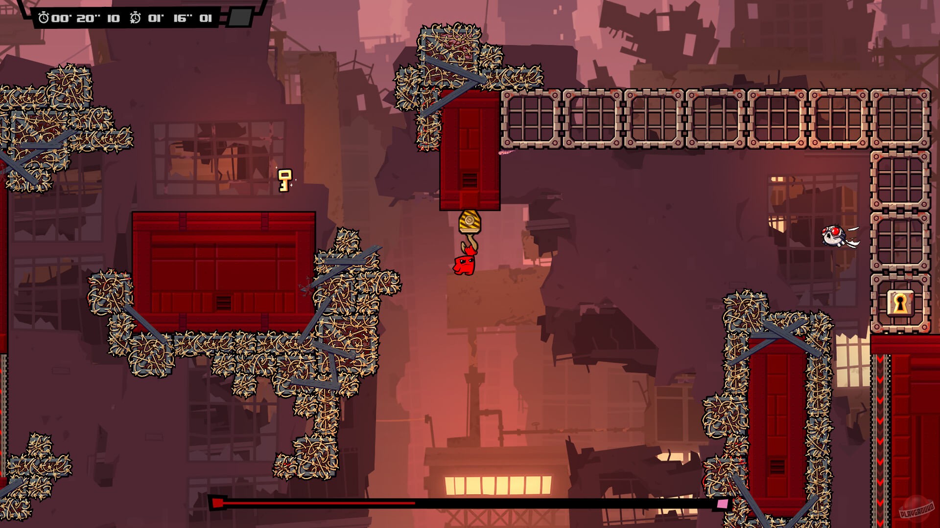 Приготовьтесь к самому мясистому, кроваво-веселому и безумно сложному приключению на свете! Super Meat Boy Forever — это не просто платформер, это экзамен на прочность ваших нервов и пальцев. Если вы думали, что спасение своей любимой Пластырь-девочки от злобного Доктора Фетуса в первой части было делом чести, то готовьтесь: теперь у вас есть дети! Да-да, наш бесстрашный кусочек мяса стал папочкой, и семейные ценности требуют немедленного действия. Эта игра в жанре автобегущего платформера (или как его еще называют — автраннер) переворачивает привычный геймплей с ног на голову: вы больше не управляете каждым прыжком напрямую. Вместо этого ваш персонаж бежит сам, а вам остается лишь нажимать всего две кнопки для прыжков и атак. Звучит просто? Ха! Это все равно что сказать, что взобраться на Эверест — просто прогулка. Только представьте: лазеры, пилы, шипы, огненные стены и другие изощренные ловушки, которые заставят вас умирать сотни, если не тысячи раз. Но не волнуйтесь, каждый провал — это шаг к победе и отличная возможность попрактиковаться в медитации на тему «как не разбить геймпад».