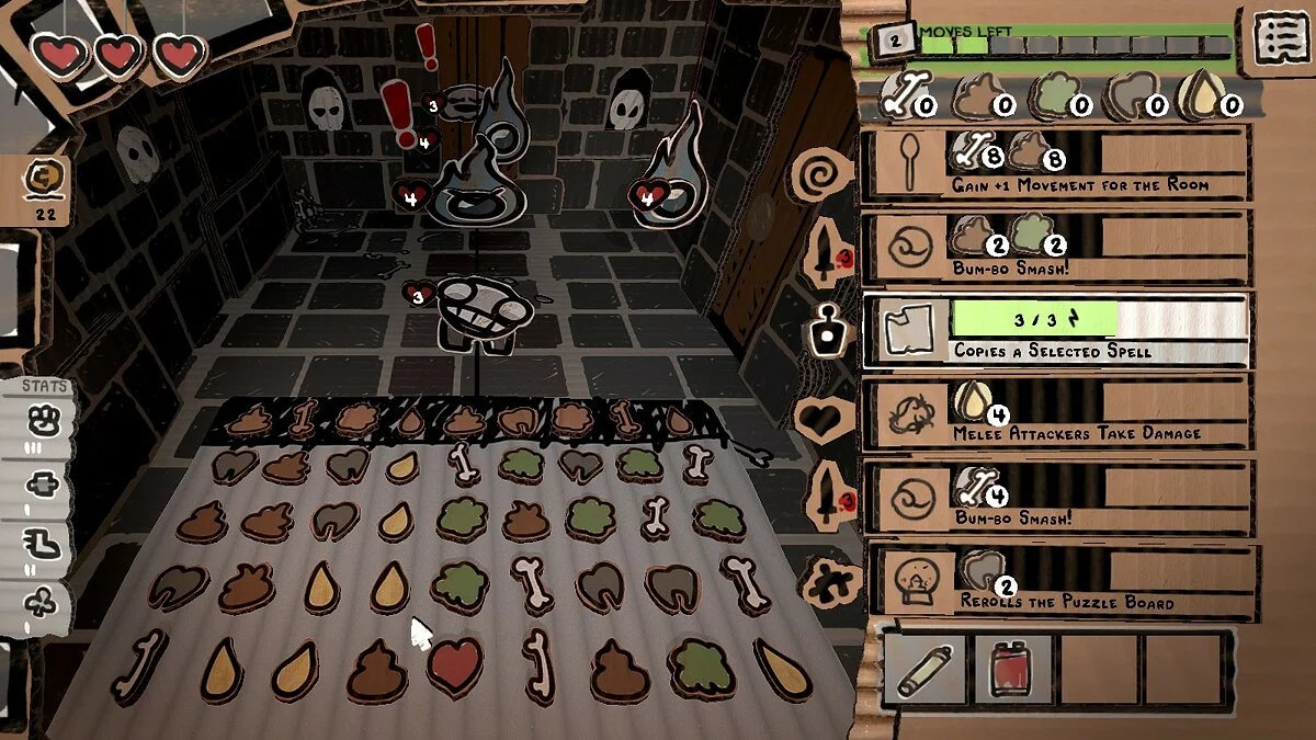 Геймплей The Legend of Bum-bo — это гениальный микс жанров, который удивит даже самых искушенных геймеров. Сверху это похоже на знакомую всем головоломку «три-в-ряд», но только до тех пор, пока вы не начнете сражаться. Каждое ваше совпадение фишек на поле превращается в мощную атаку: вы строите стены из костей, призываете демонов, метаете заклинания и даже используете… ну, скажем так, продукты своей жизнедеятельности. Это рогалик с элементами карточной стратегии и сбора предметов, где каждый забег уникален, а ваши решения напрямую влияют на боевые способности. Так что если вы искали «казуальную игру три в ряд» с изюминкой апокалиптического юмора и глубокой прокачкой, то вы ее нашли.