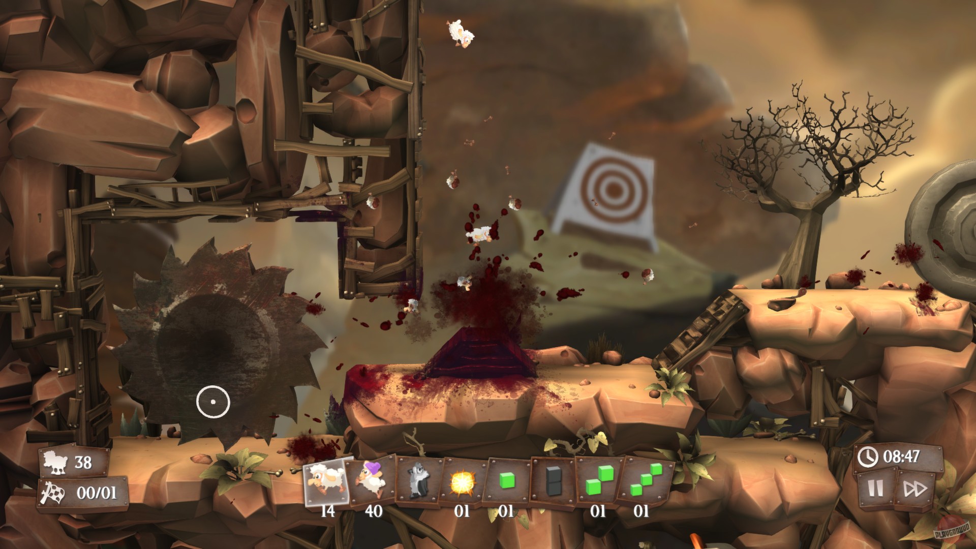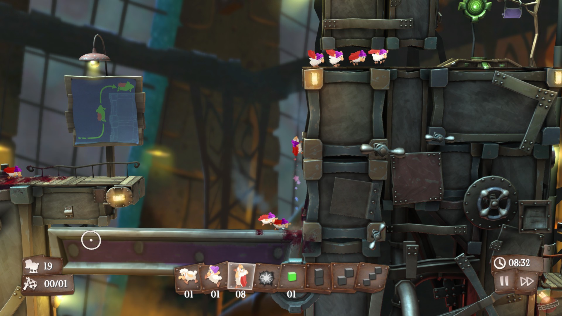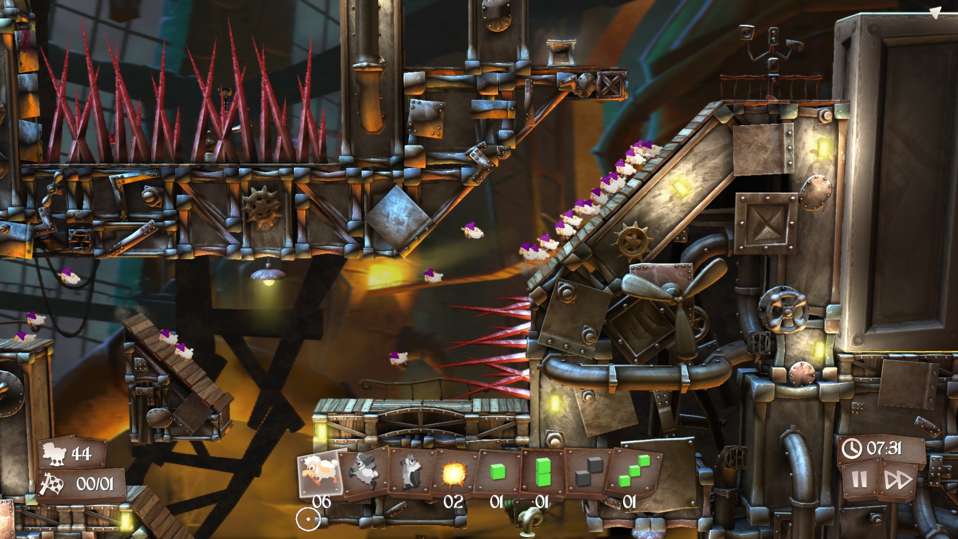 Представьте себе: ваши овцы — это не самые сообразительные существа на свете. Они идут прямо, пока не упадут в пропасть или не наткнутся на вращающуюся пилу. Вот тут-то и вступаете вы, их спаситель и стратег! У вас есть целый арсенал специальных предметов: от простых деревянных ящиков и лестниц до мощных пружин, воздушных шаров и даже... да-да, мин! Вам нужно продумывать маршрут, блокировать опасные пути и направлять своих подопечных к заветному выходу. Каждый уровень в Flockers — это новая дилемма, новая возможность проявить изобретательность и чувство юмора. Ведь кто бы мог подумать, что воздушный шарик может спасти овцу от мясорубки?