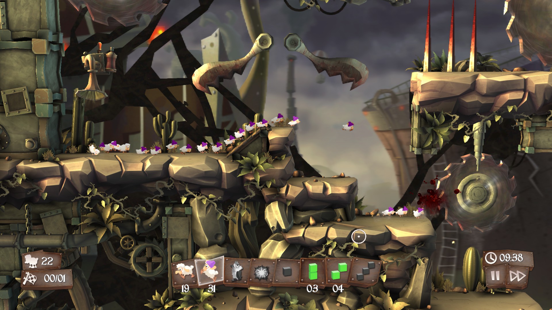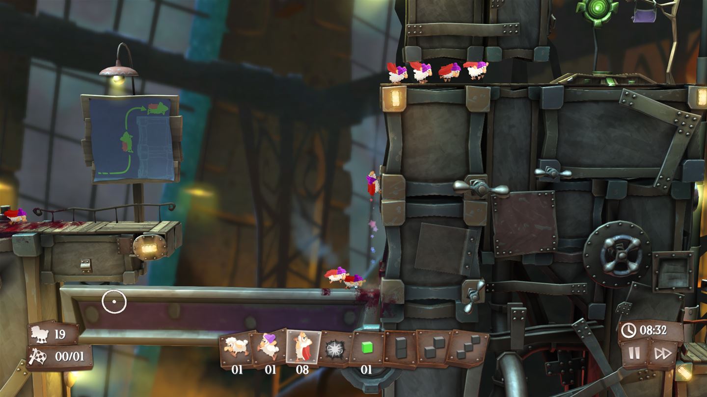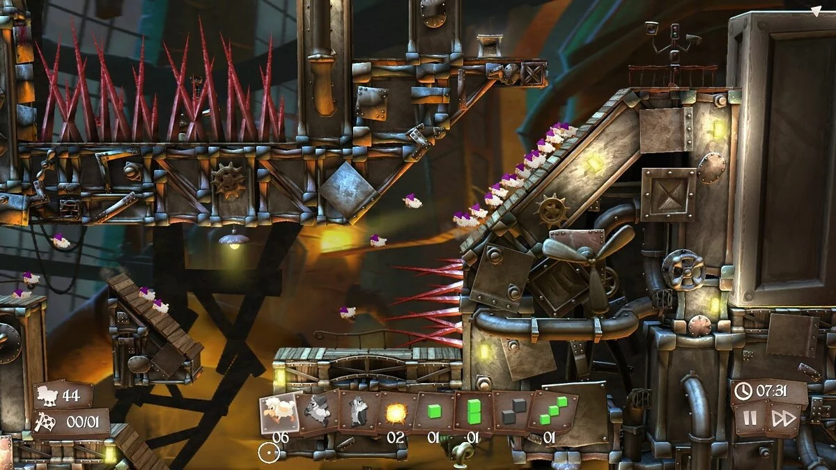 Добро пожаловать в Flockers — место, где овцы не жуют травку на зеленых лужайках, а борются за выживание в мире мясорубок, ловушек и абсурдных фабрик! От создателей культовой серии Worms, студии Team17, эта головоломка в лучших традициях Lemmings получила мрачноватый, но очень забавный макабр-мейкап в стиле Тима Бертона. Ваша миссия? Спасти как можно больше пушистых бедолаг от неминуемой участи превратиться в шашлык или войти в состав нового экспериментального снаряда. Звучит жестоко? Зато весело! В Flockers вас ждет уникальный геймплей, где вы не просто наблюдаете за стадом, а активно руководите его судьбой, расставляя хитроумные приспособления и взрывая все вокруг.