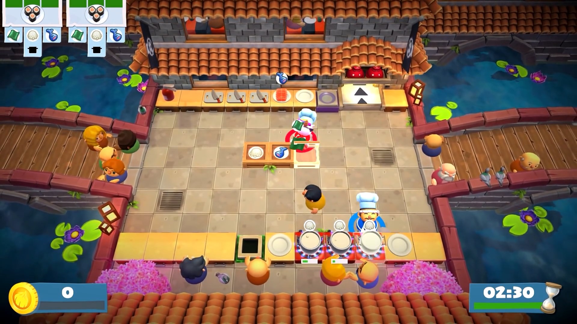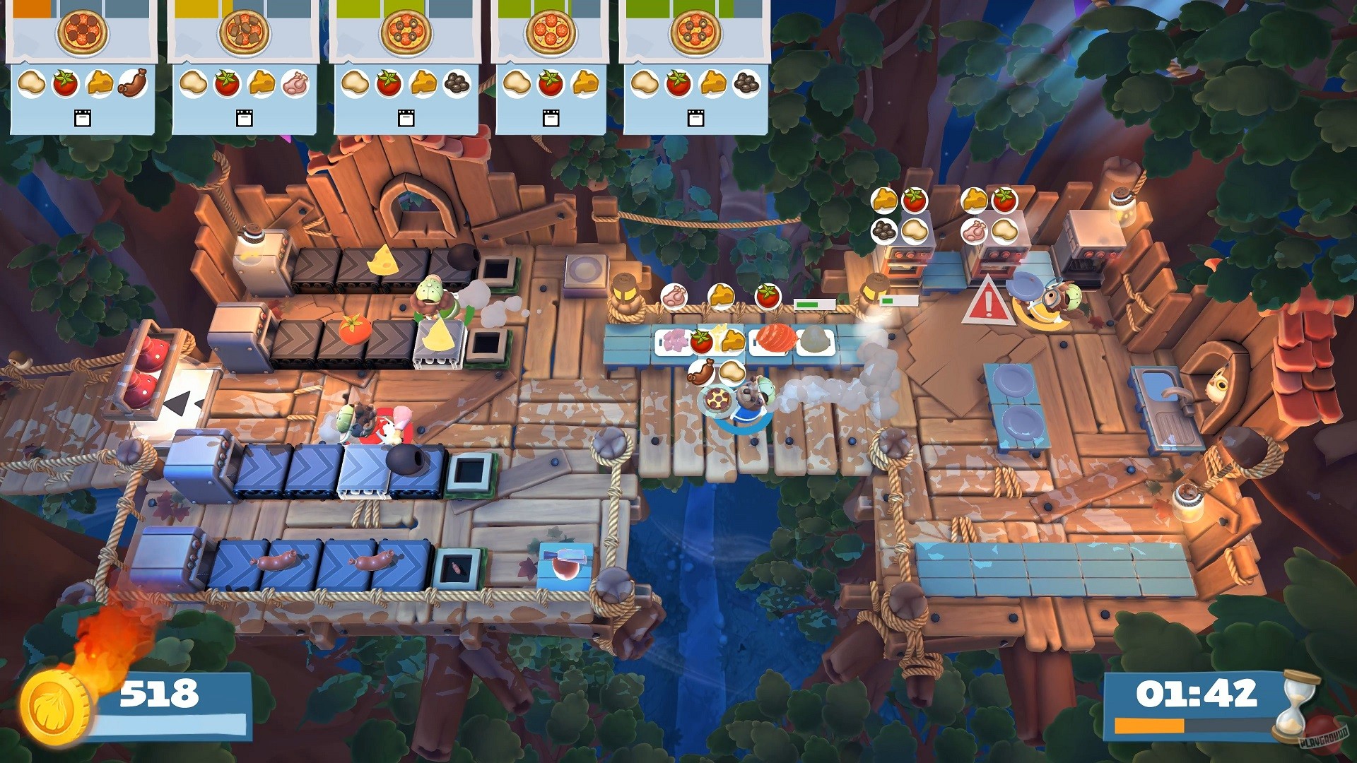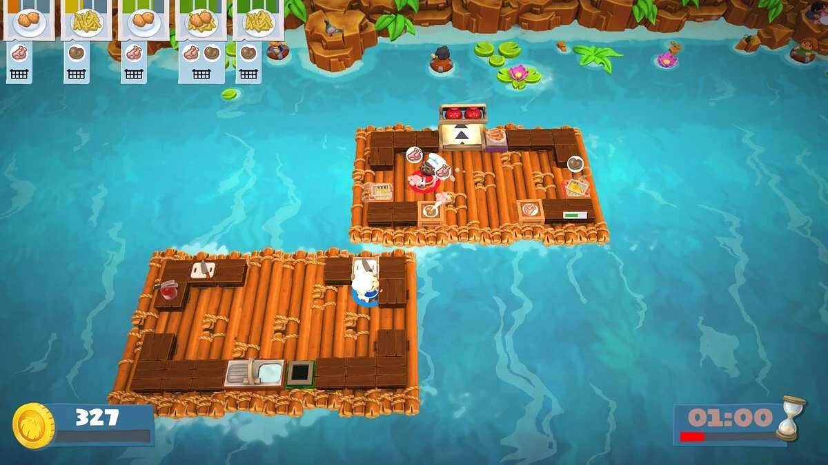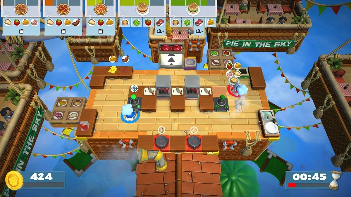 В Overcooked! 2 вас ждут десятки уровней, каждый из которых — это уникальный вызов вашей способности работать в команде. Сегодня вы готовите суши на устойчивой кухне, а завтра — на движущихся платформах над лавой или в кухне, которая разваливается на части каждые 30 секунд. Геймплей прост до безобразия: берите ингредиенты, рубите их, жарьте, варите и подавайте заказы, пока таймер не съел ваш обеденный перерыв. Но именно эта простота рождает хаос! Вы будете кричать «Кто взял мой лук?!», «Почему ты кидаешься мясом?!» и «БЕГИ ОТ ОГНЯ!» так часто, что ваши соседи начнут думать, что у вас дома открылся филиал «Адской столовой». И да, теперь есть онлайн-мультиплеер, так что вы можете испортить отношения с друзьями не выходя из дома.