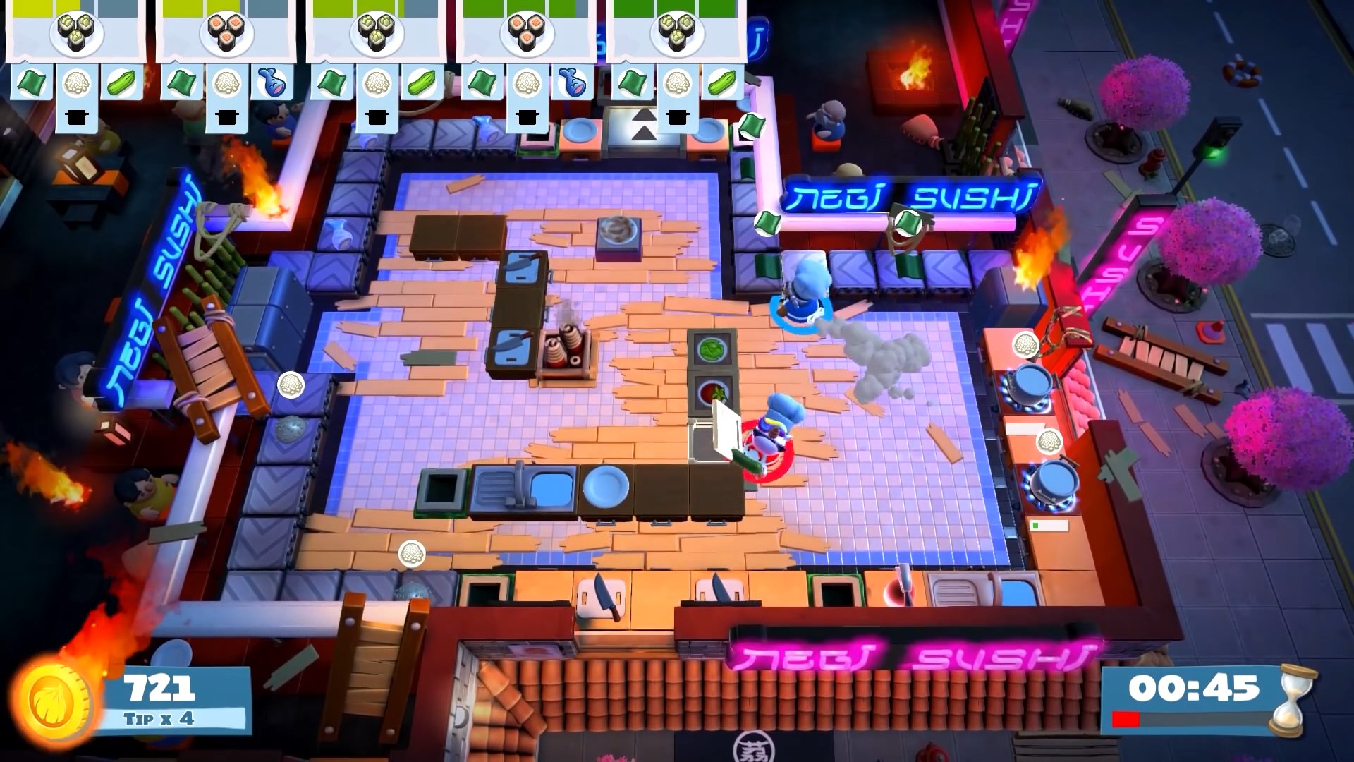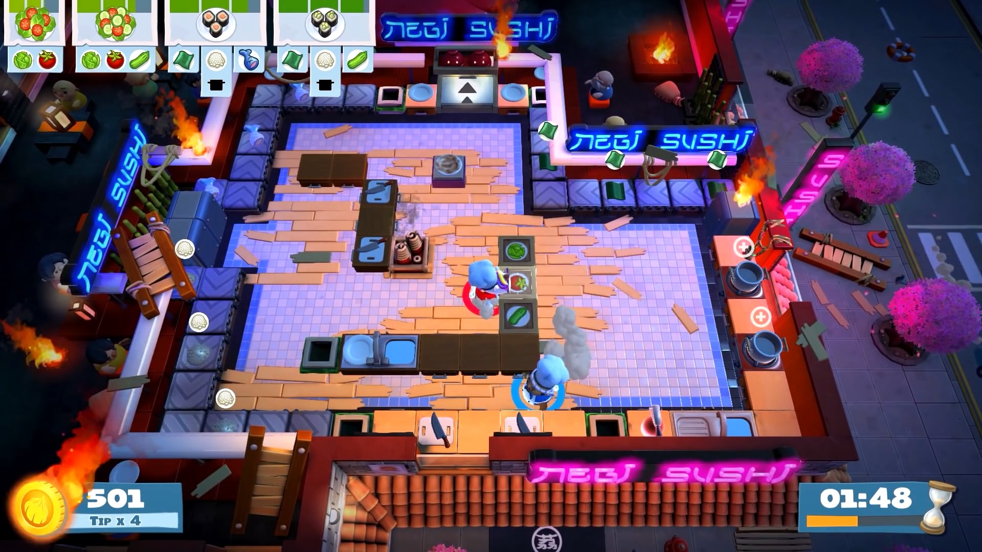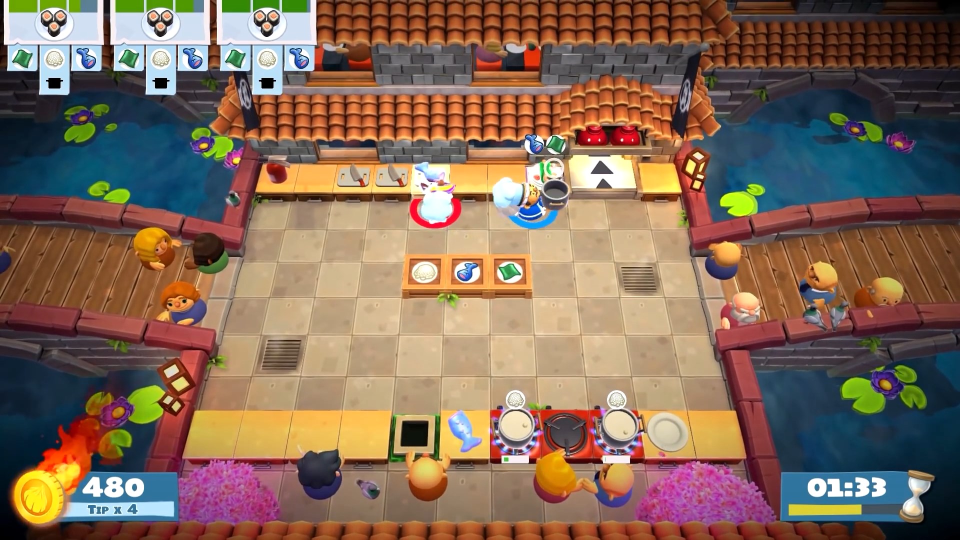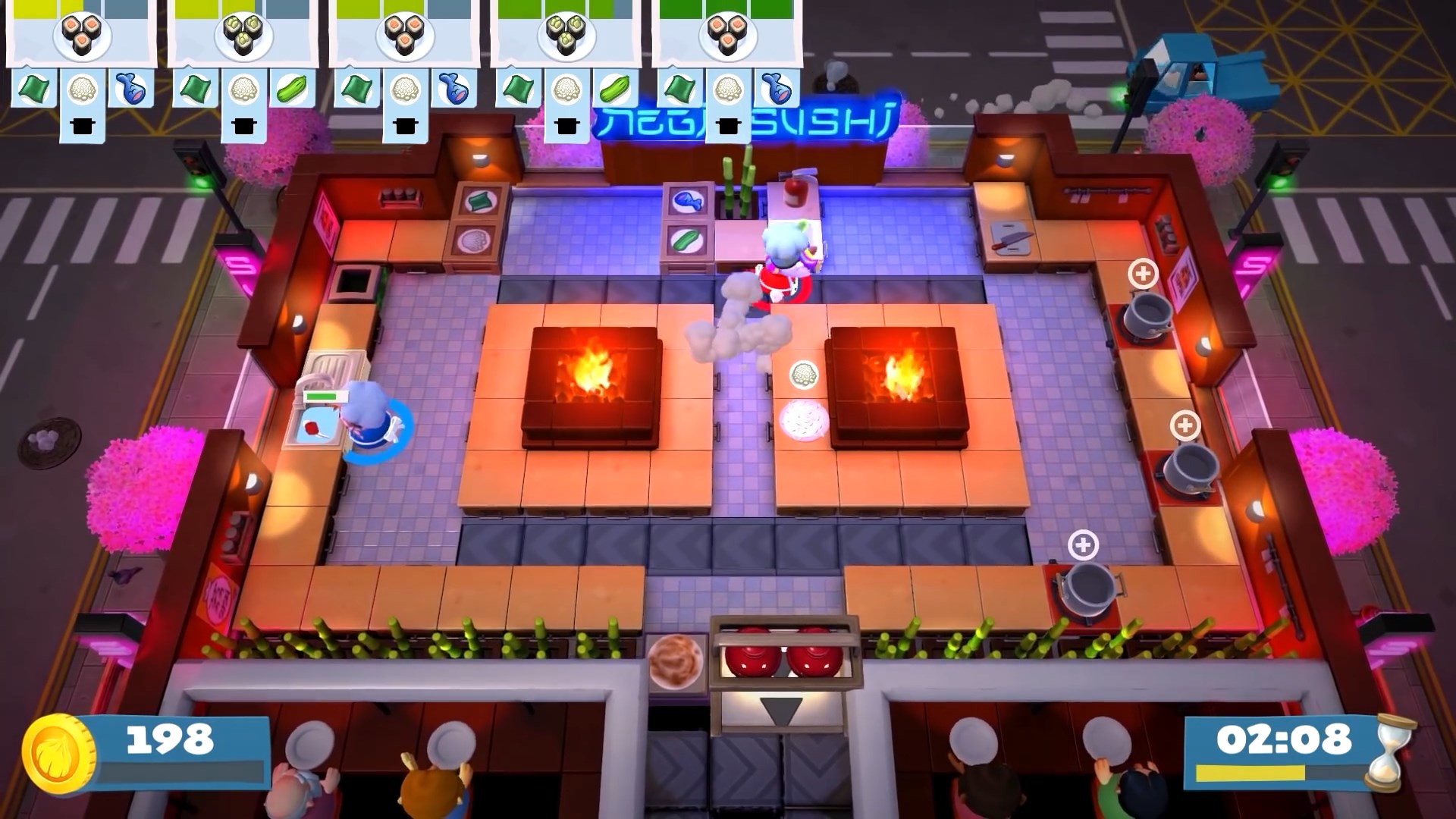 В Overcooked! 2 вас ждут десятки уровней, каждый из которых — это уникальный вызов вашей способности работать в команде. Сегодня вы готовите суши на устойчивой кухне, а завтра — на движущихся платформах над лавой или в кухне, которая разваливается на части каждые 30 секунд. Геймплей прост до безобразия: берите ингредиенты, рубите их, жарьте, варите и подавайте заказы, пока таймер не съел ваш обеденный перерыв. Но именно эта простота рождает хаос! Вы будете кричать «Кто взял мой лук?!», «Почему ты кидаешься мясом?!» и «БЕГИ ОТ ОГНЯ!» так часто, что ваши соседи начнут думать, что у вас дома открылся филиал «Адской столовой». И да, теперь есть онлайн-мультиплеер, так что вы можете испортить отношения с друзьями не выходя из дома.