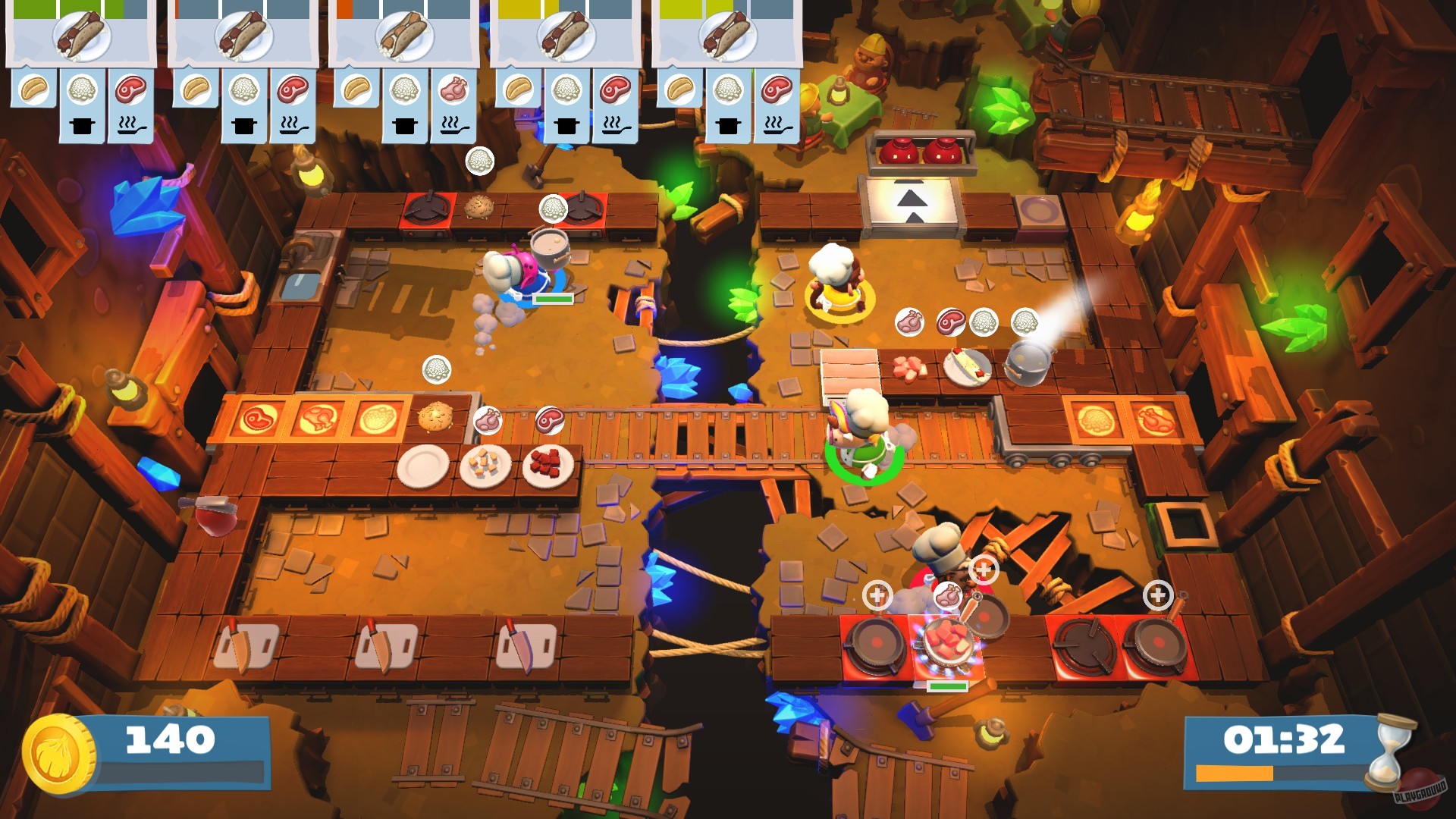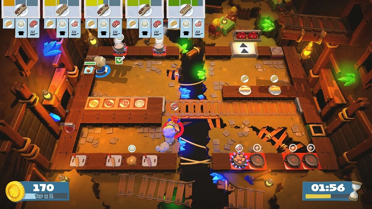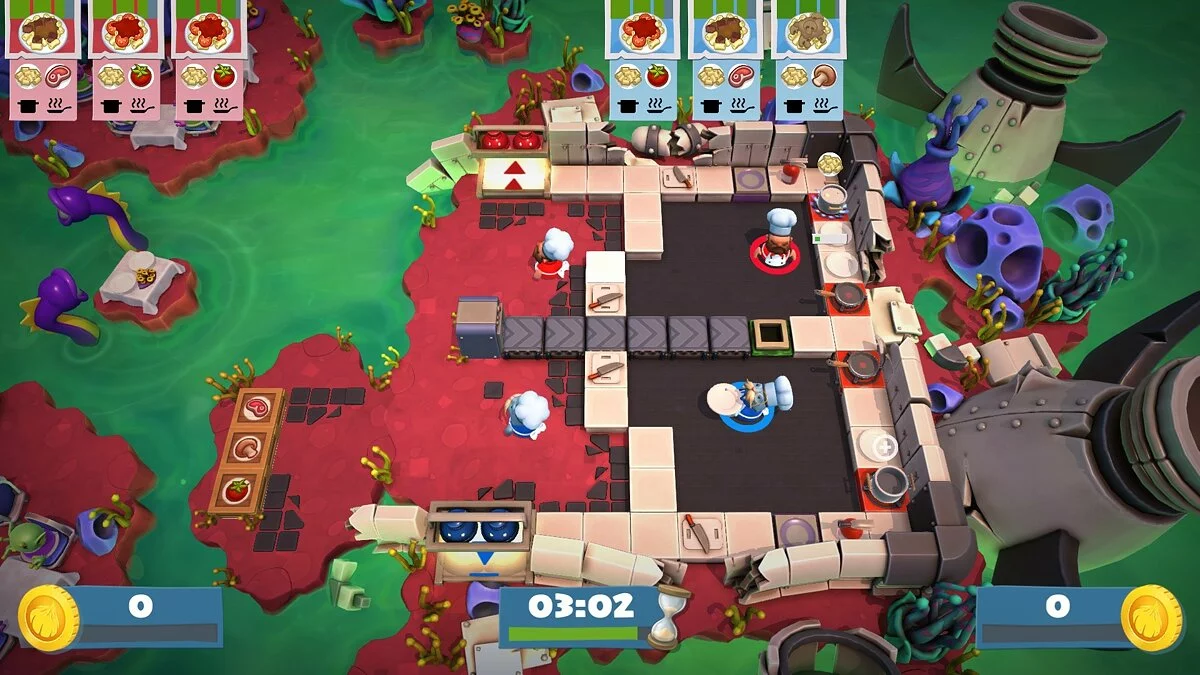 Добро пожаловать в Overcooked! 2 — игру, где ваша дружба проверяется на прочность под градом летящих помидоров и огненных шаров! Это не просто кооперативная аркада, это настоящий кулинарный апокалипсис для 1-4 игроков, в котором вы превращаетесь из лучших друзей в бешеных поваров, готовых продать душу за лишнюю сковородку. Ваша миссия? Спасти Луковое королевство от зловещего Капустного короля, который хочет накормить всех зомби-овощами. Звучит безумно? Это только начало!