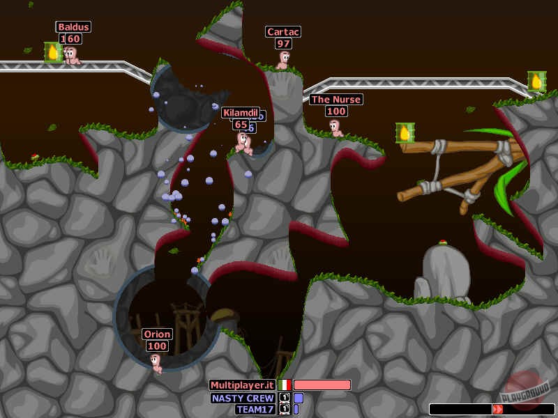 Добро пожаловать в Worms World Party — место, где червяки не ползают по огороду, а устраивают ядерные вечеринки с гранатами, ракетницами и банановыми бомбами! Эта культовая стратегия в жанре пошаговой тактики — не просто игра, а настоящая машина времени для всех, кто скучает по эпохе, когда главным вопросом был: «А ты за кого? За красных или за зелёных червячков?». Здесь вы возглавите отряд из четырёх бесстрашных (и слегка психованных) беспозвоночных, чья единственная цель в жизни — превратить вражескую команду в набор пикселей на фоне ландшафта. И да, они при этом будут комментировать всё происходящее фразами вроде «Ух ты!» и «О нет!», что добавляет особого шарма этой безумной вечеринке.