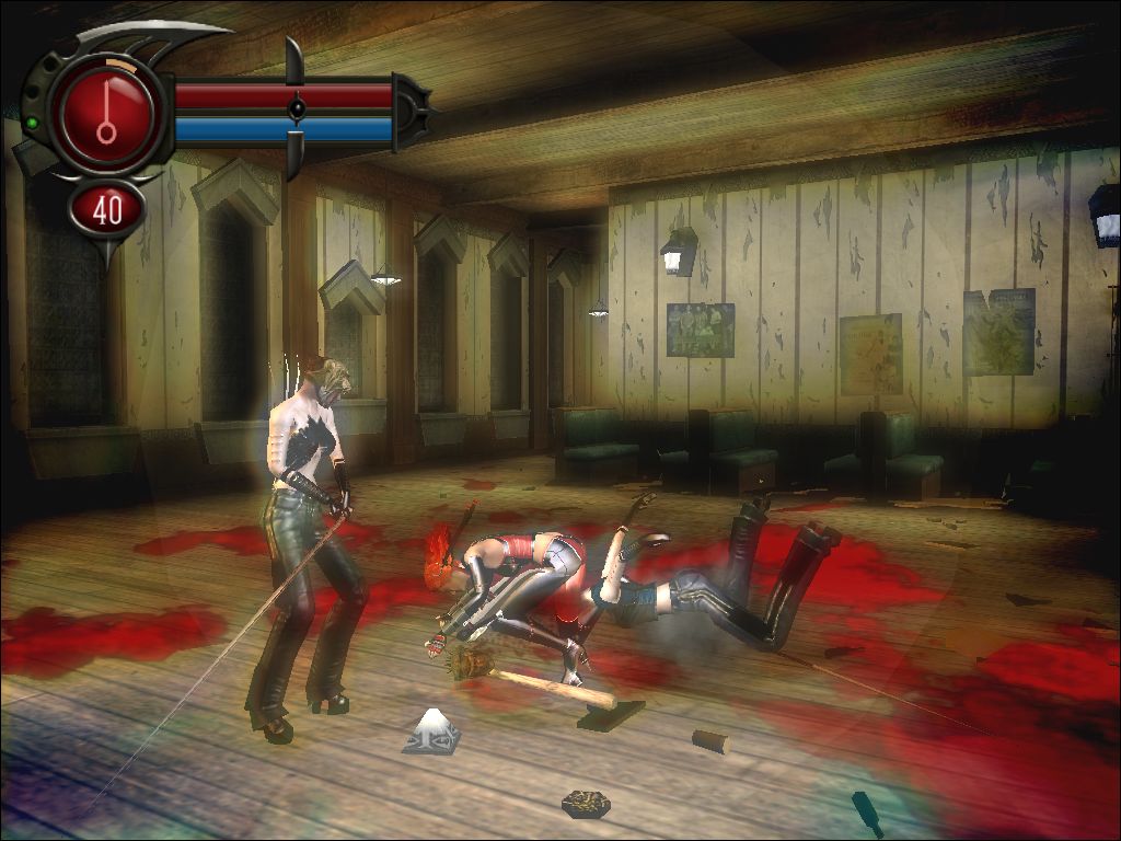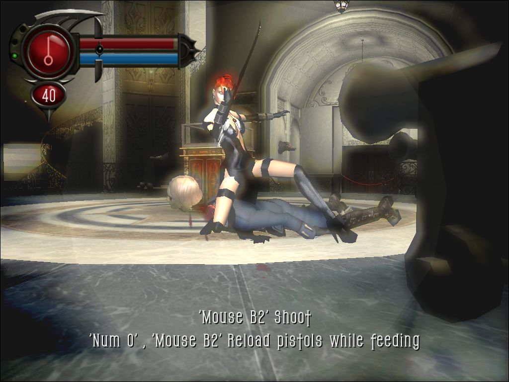 Геймплей BloodRayne 2 — это чистая, неприкрытая катарсис-терапия для тех, кто устал от сложных моральных выборов и диалоговых деревьев. Здесь всё просто: видишь врага — руби его. Видишь группу врагов — руби их всех. А чтобы было веселее, у Рейн есть её фирменные "глаза-жучки" (на самом деле — магические импланты), которые позволяют замедлять время и устраивать настоящие балетные па в облаке крови и отлетающих конечностей. Это не просто экшен, это кровавый перформанс! Игра линейна, как стрелка на карте, но зато каждая локация — это новый повод проверить, насколько прочен ваш контроллер от смеха над местной эстетикой и переигрывающими актерами. Сложность фиксирована, так что будьте готовы к вызову: здесь не будет легкого режима для тех, кто хочет просто полюбоваться на Рейн в её фирменном корсете.