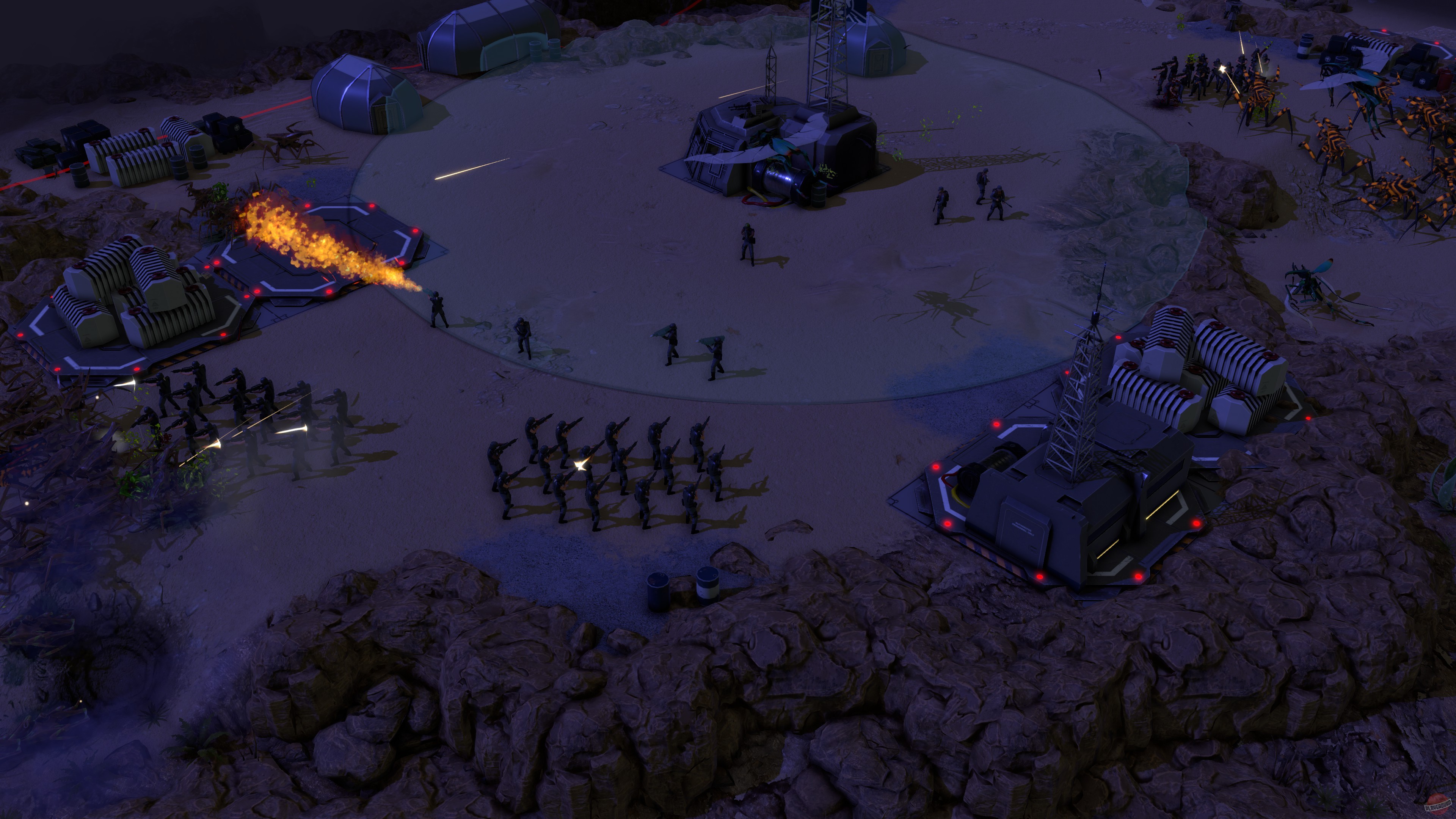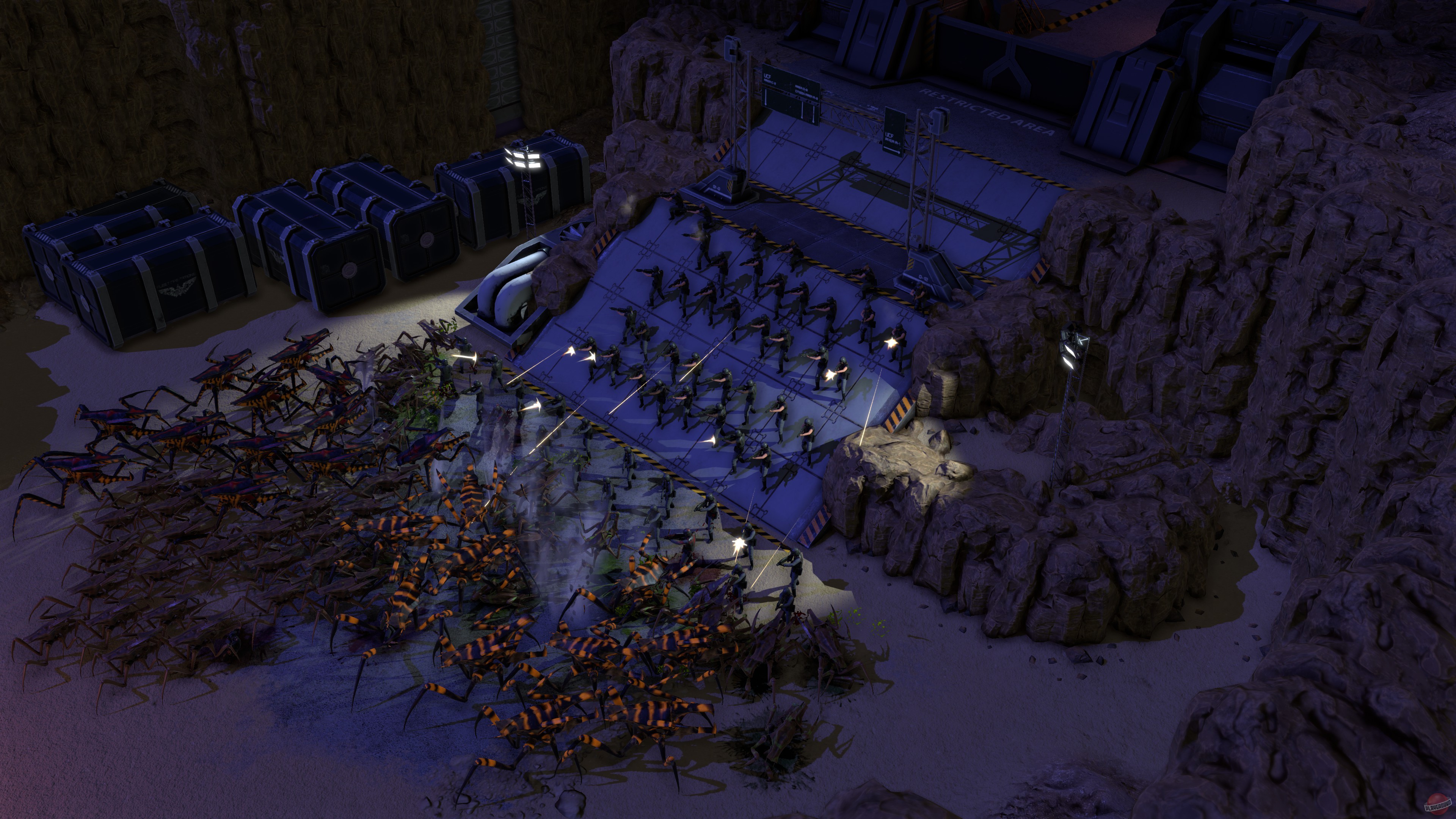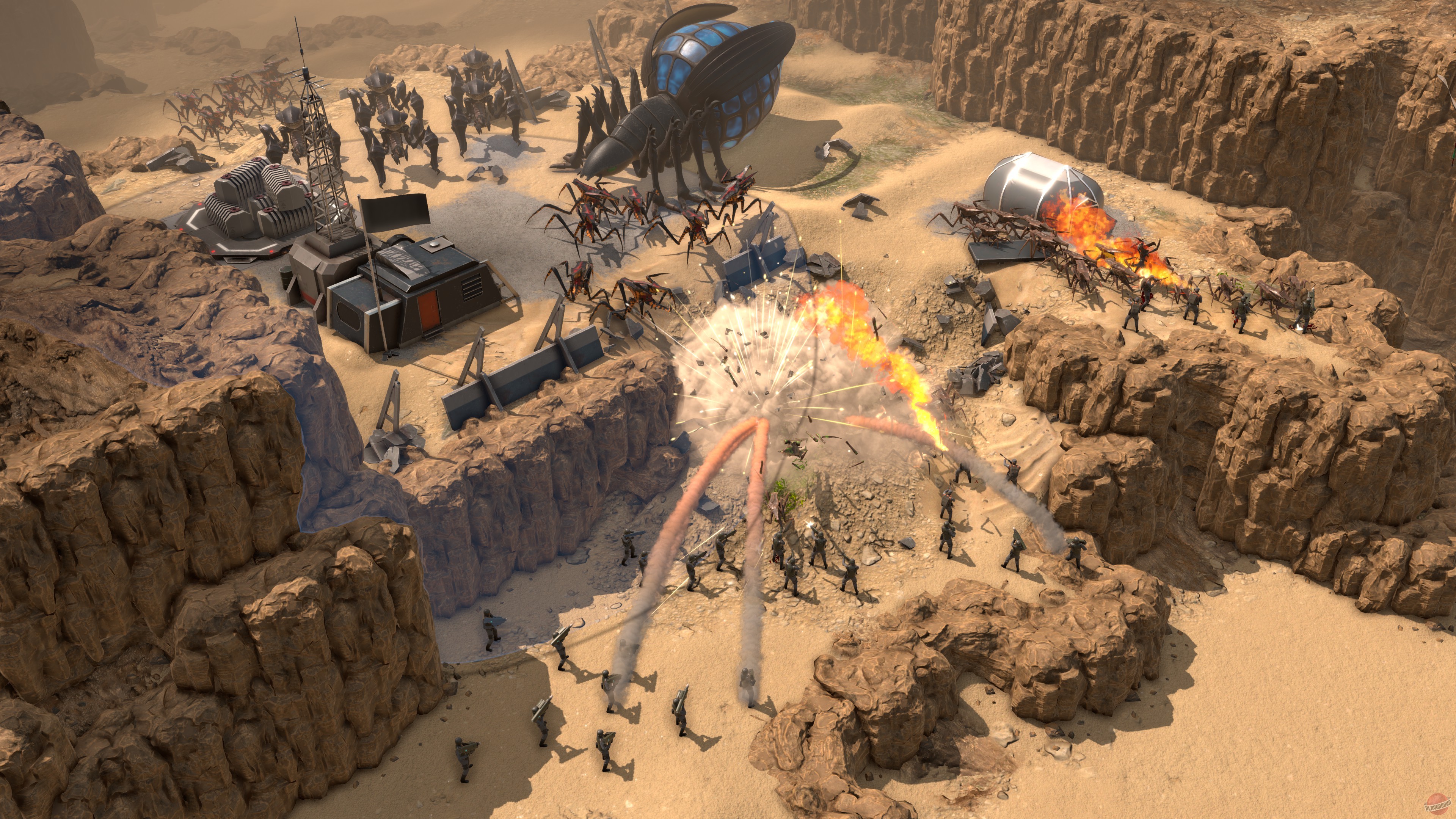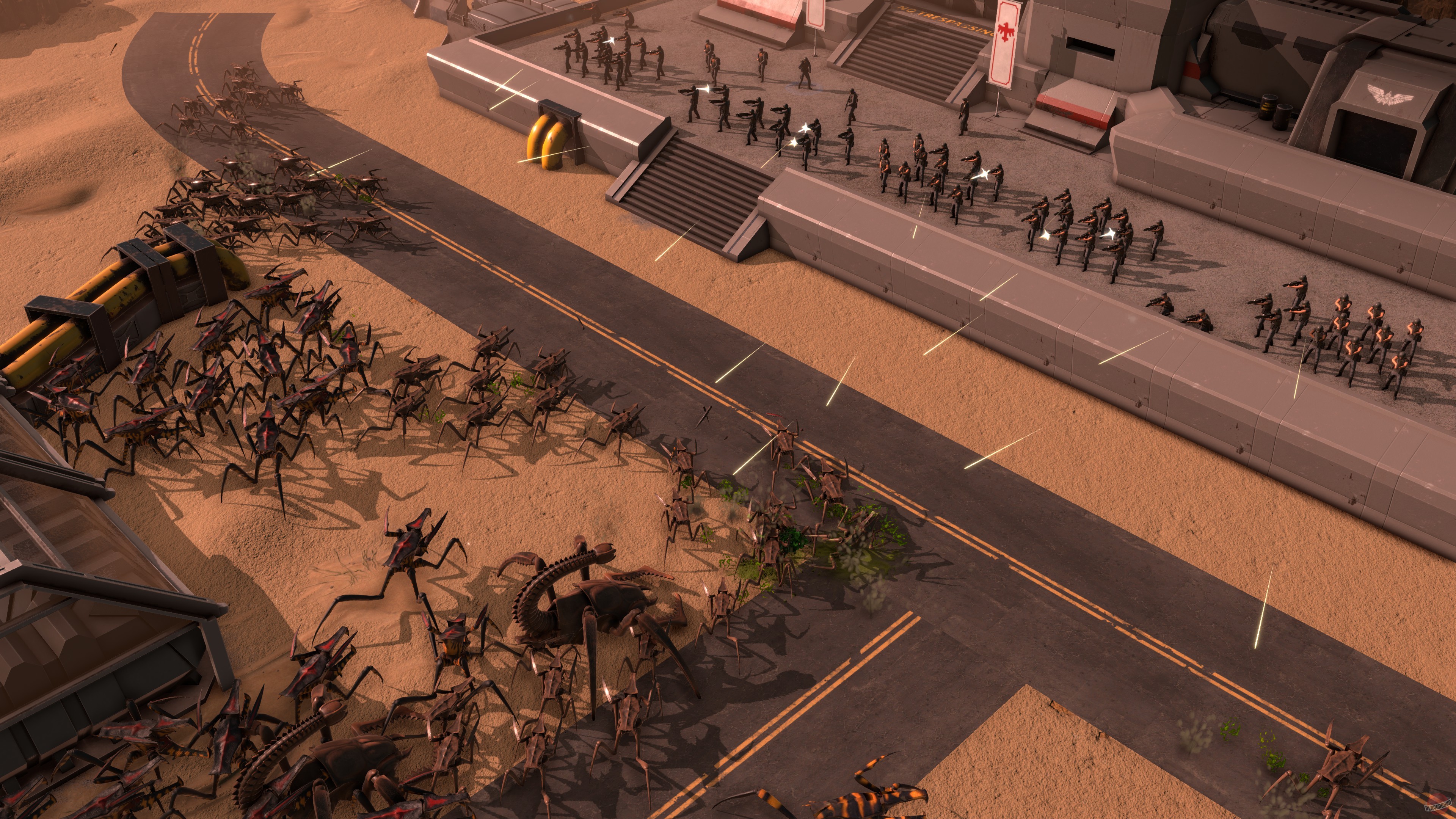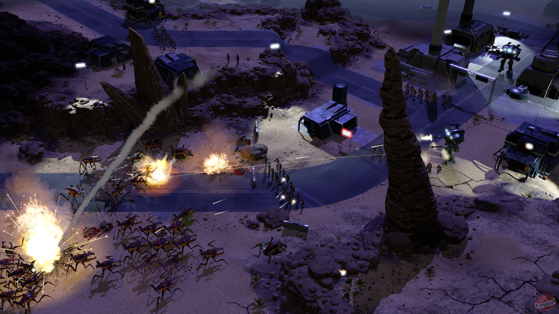 Starship Troopers - Terran Command - это стратегия в реальном времени, созданная по мотивам романа и фильма "Звездный десант". Игроков ждет возможность взять под свое управление базу людей на одной из планет арахнидов, с которой человечество планирует нанести жукам сокрушительный удар. Игроки должны заниматься набором войск, грамотно выбирая между тактическим превосходством и банальным "зерг рашем", учитывать особенности ландшафта и видимости во время столкновений, а также грамотно распределять лидеров между отрядами.