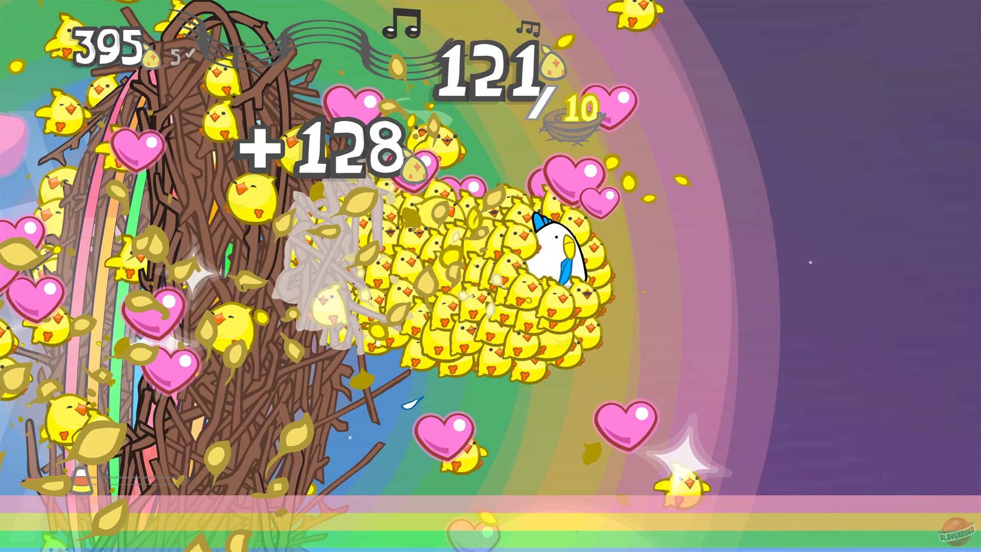 Суть этой игры предельно проста: вы — курица, которая носится по небу, пытаясь собрать всех разбежавшихся цыплят и уложить их в гнёзда. Ну и какая же игра про курицу без кукурузы? Только здесь она не простая, а карамельная.