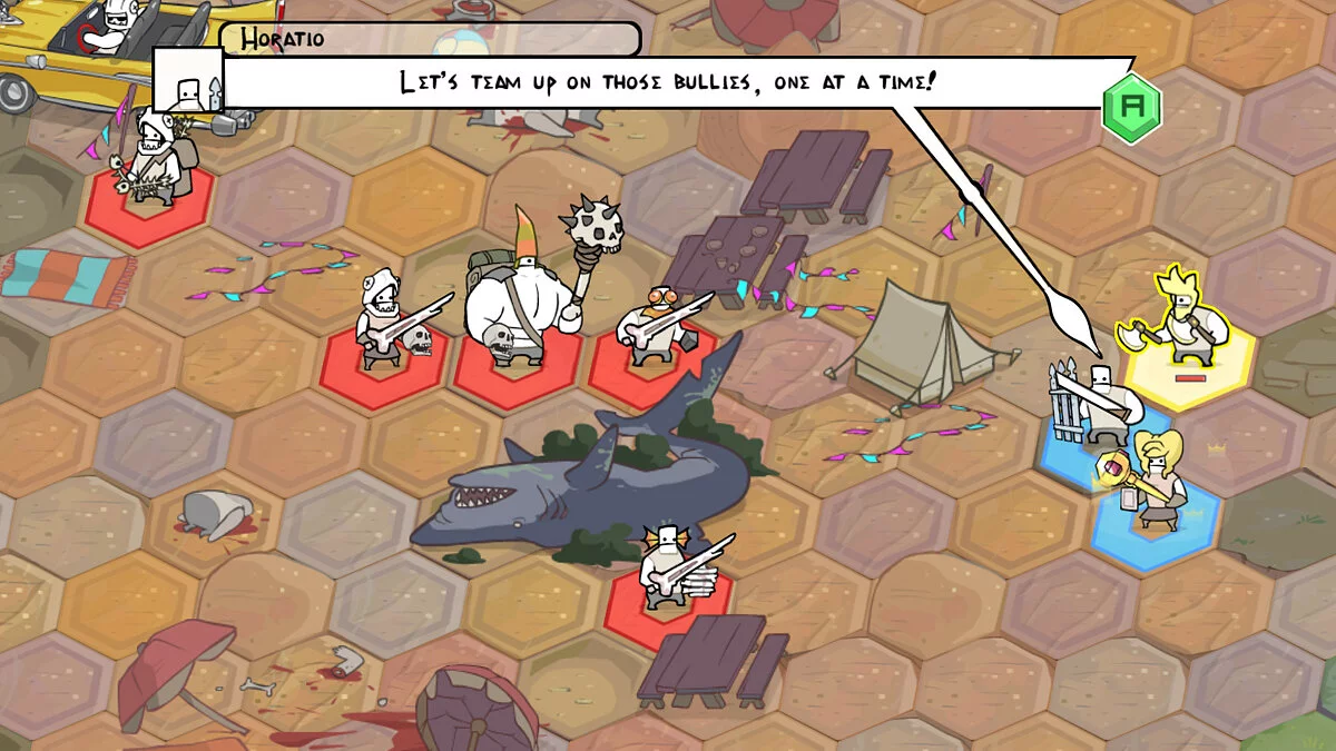 Однако настоящий хаос начинается, когда вы зовёте друзей! Pit People поддерживает кооперативный режим на двоих для прохождения всей кампании, а также захватывающий мультиплеер 2 на 2, где можно устроить настоящее тактическое побоище. Представьте, что вы и ваш друг командуете отрядом из клоуна, робота и летающего тостера против другой такой же парочки сумасшедших. Это не просто стратегия, это социальный эксперимент в лучших традициях The Behemoth! Игра прекрасно подходит как для тех, кто ищет весёлую одиночную RPG с тактическими боями, так и для компаний, жаждущих веселья в кооперативе или PvP-сражениях.