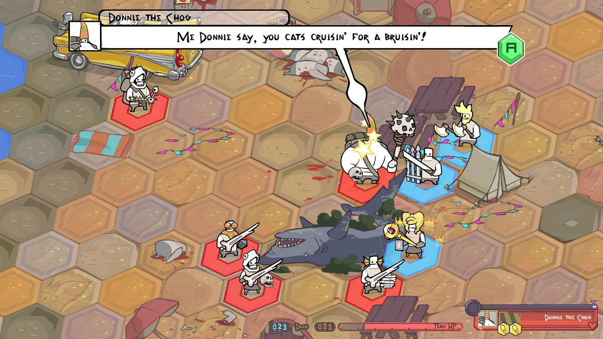 Pit People — это уникальное смешение жанров: пошаговая стратегия встречается с элементами RPG и тактическими поединками, всё это завёрнутое в яркую 2D-графику. Ваша задача — собирать отряд самых непредсказуемых персонажей, каждый из которых обладает своим уникальным набором способностей и, конечно же, причудами. Геймплей строится вокруг чередования спокойных исследований мира и напряжённых пошаговых боёв, где важно не только то, кого вы возьмёте в бой, но и как расположите их на поле. Хотите отправить своего молчаливого лучника в тыл врага или предпочитаете, чтобы ваш новоиспечённый друг-медведь просто всех раздавил? Решать вам! Игра предлагает богатую систему прокачки и крафтинга, позволяя создавать мощные предметы и делать ваших героев настоящими легендами этого безумного мира.