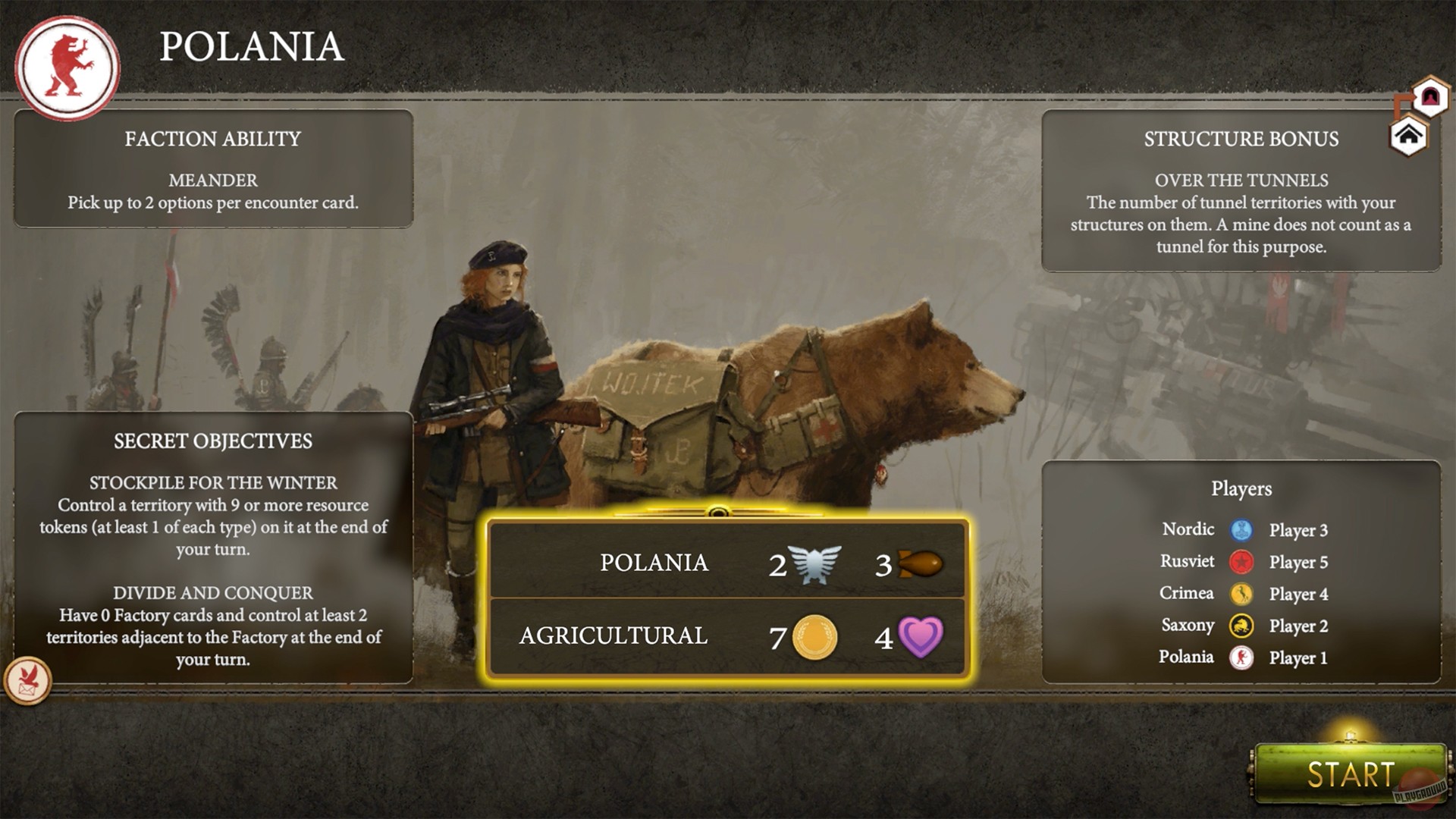 Эта игра переносит вас в альтернативную реальность — Европу 1920-х гг., разорённую Первой мировой войной. Выберите одну из пяти фракций — Саксонскую империю, Крымейское ханство, Руссветский Союз, Республику Полании или Северное королевство — и приведите её к процветанию и господству в эти мрачные времена. Чтобы обеспечить своему народу победу, вам придётся исследовать и завоёвывать новые земли, вербовать рекрутов и размещать войска, а также создавать гигантских и страшных боевых мехов.