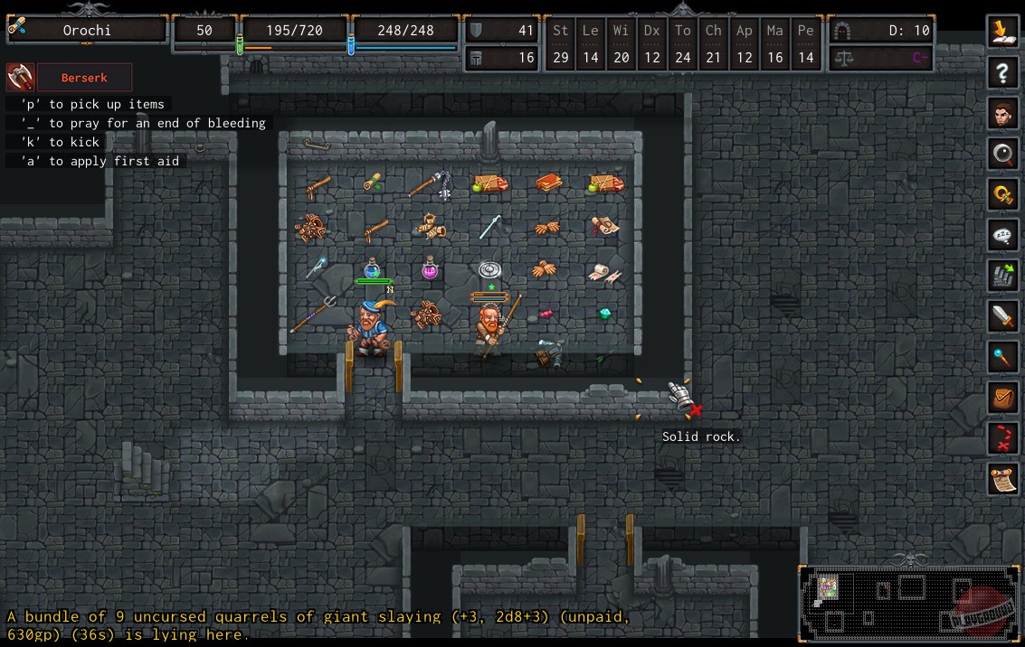 В ADOM вы найдете всё, что нужно настоящему искателю приключений: огромный, живой мир с городами, полными болтливых NPC, сотнями квестов и тайнами, которые не раскроются за один присест. Здесь есть и глубокая система прокачки персонажа, и крафт уникальных предметов, и даже возможность жениться (или выйти замуж)! Но не думайте, что всё так просто. Этот рогалик славится своей беспощадностью. Один неверный шаг — и вас сожрёт тролль, отравит змея или просто убьёт собственная неуклюжесть. И да, вы будете умирать. Много. Очень много. Но именно в этом и заключается магия ADOM: каждый новый запуск — это новая история, новый шанс стать легендой (или хотя бы дожить до третьего уровня).
