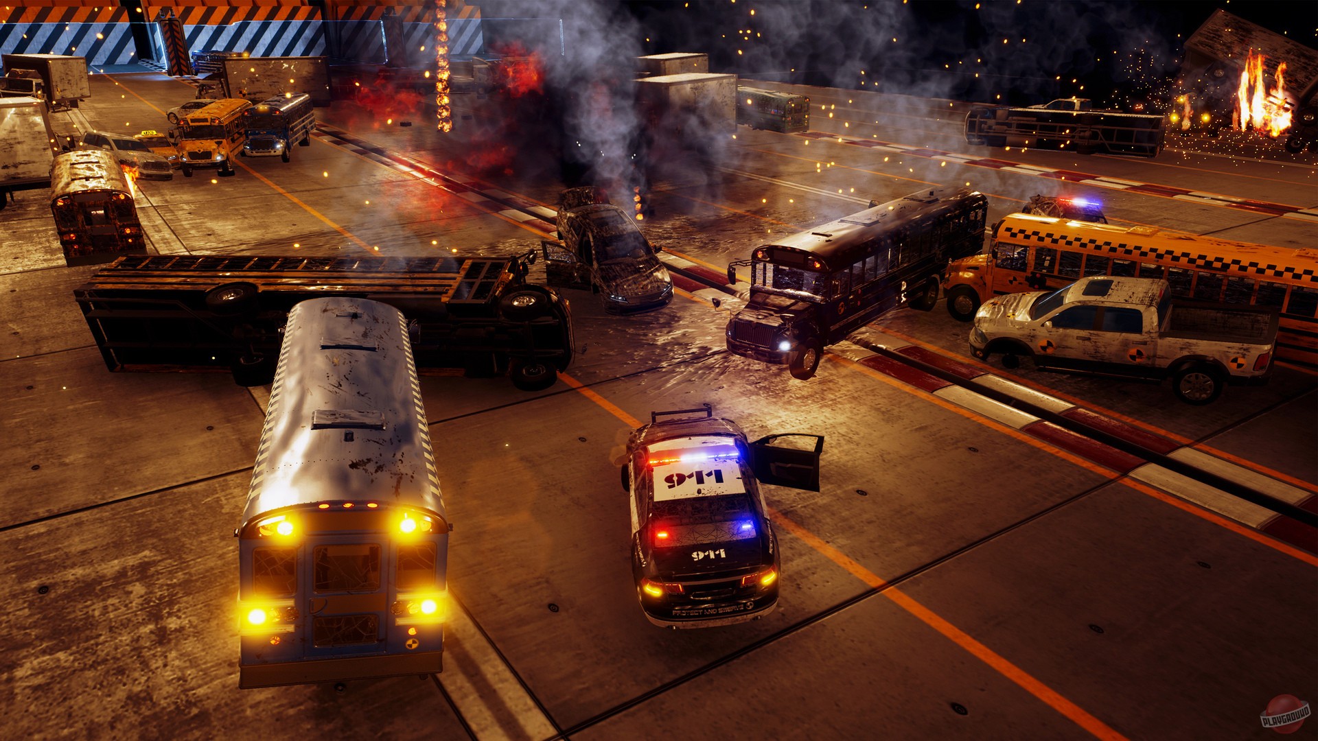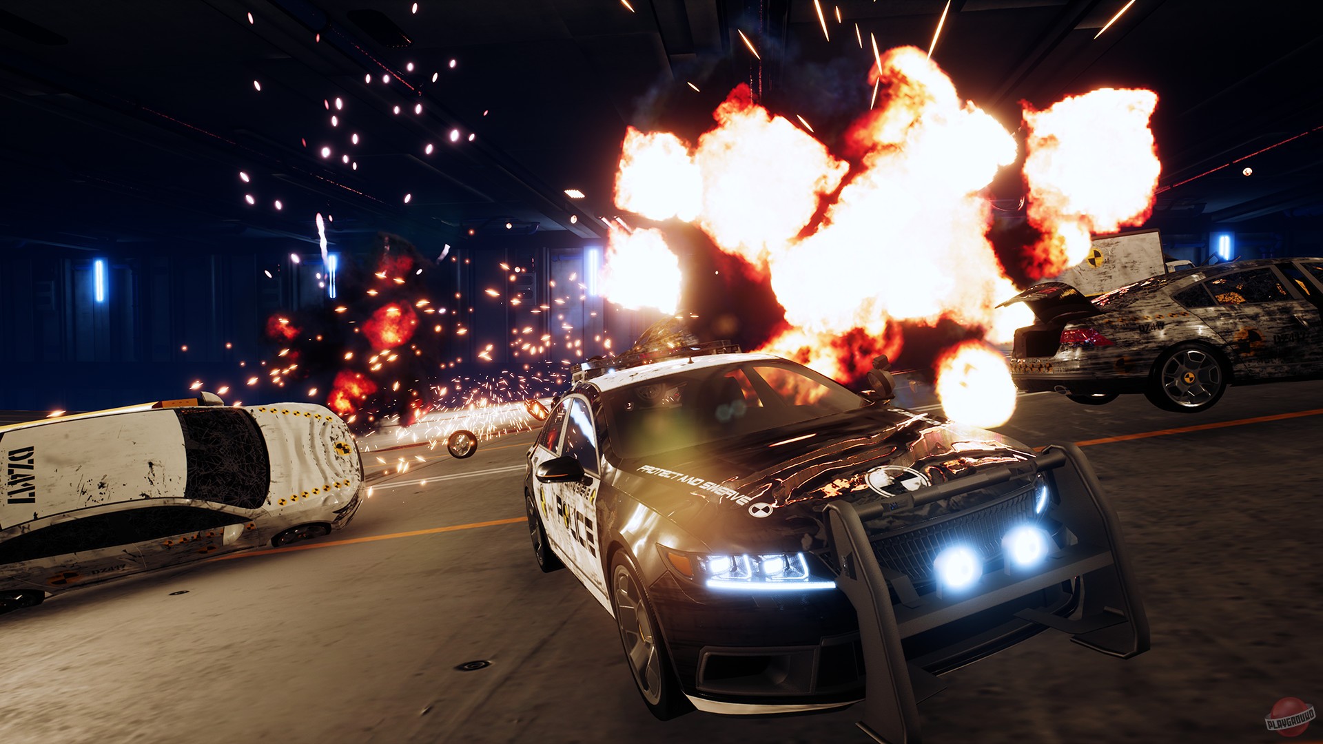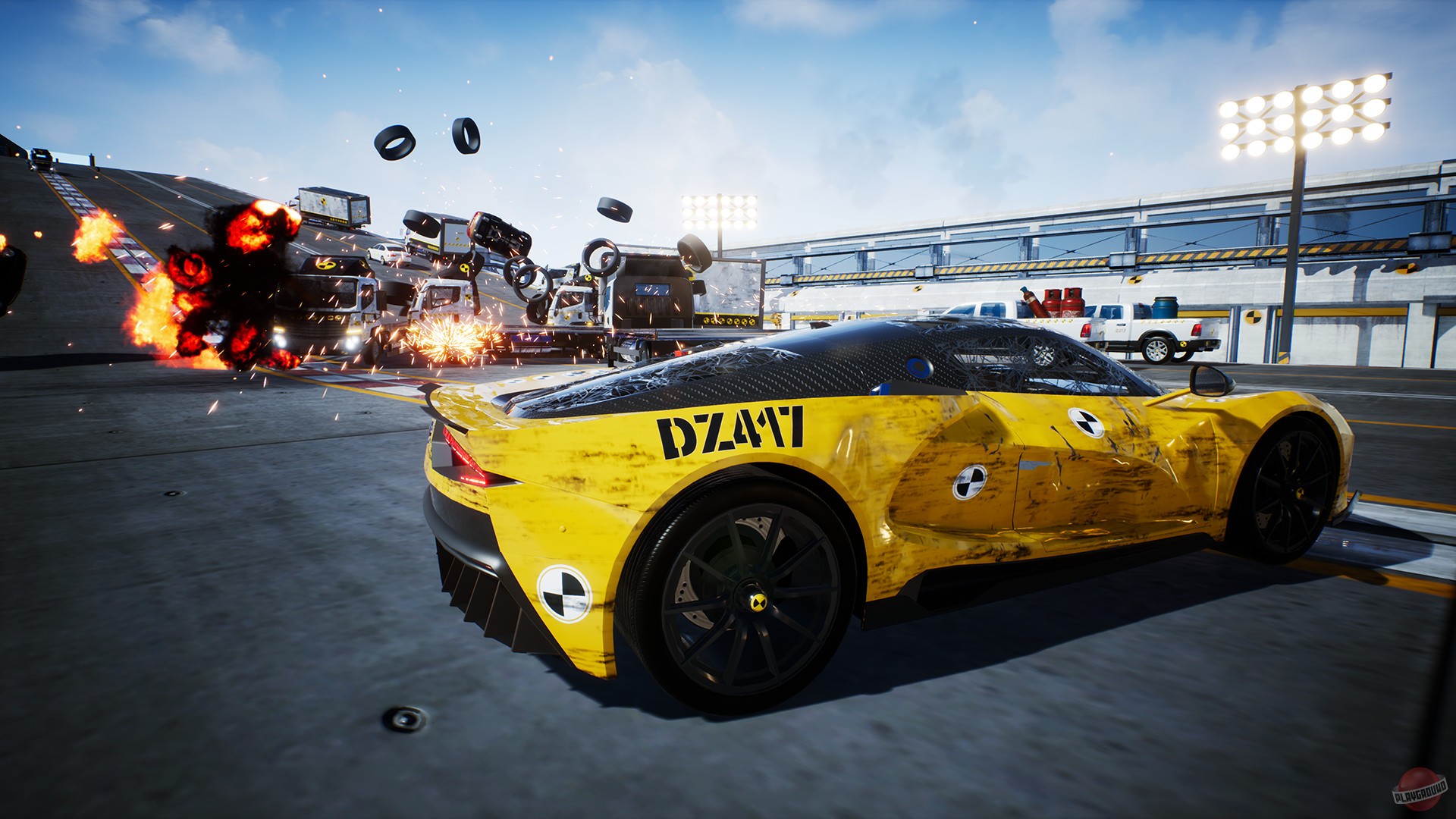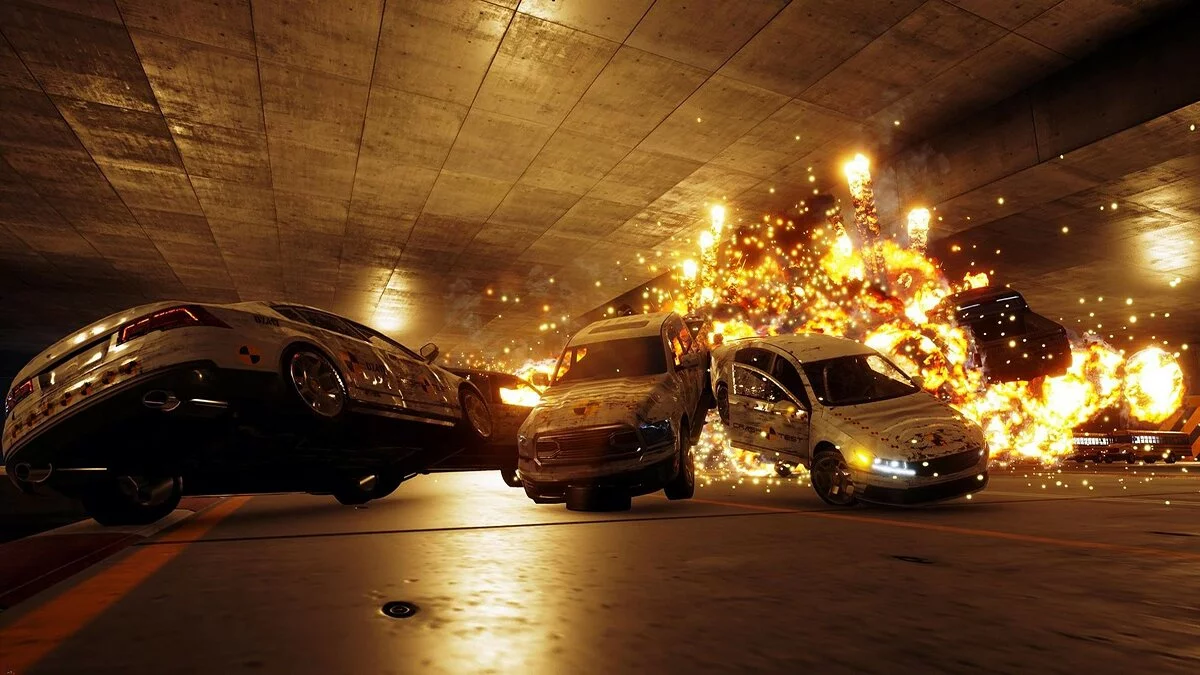 Геймплей Danger Zone поражает своей простотой и при этом безумной глубиной. Вы попадаете на закрытый полигон для испытаний — виртуальный «Полигон Разрушений», где каждая из 20+ миссий предлагает уникальную сцену для ваших подвигов. Здесь нет сложных трасс или противников-гонщиков; вместо этого вас ждут продуманные ловушки из статичного и движущегося транспорта, бочки с горючим и другие взрывоопасные сюрпризы. Ваша задача — найти идеальную точку удара, чтобы вызвать максимальный «SmashBreak» (а-ля фирменные моменты из Burnout) и набрать как можно больше очков за ущерб. Чем больше машин вы отправите в металлолом, чем эффектнее будет взрыв и чем дольше продержится цепная реакция, тем выше ваш рейтинг. Это как решать головоломку, но вместо чисел и фигур вы используете тонны стали и закон Ньютона!