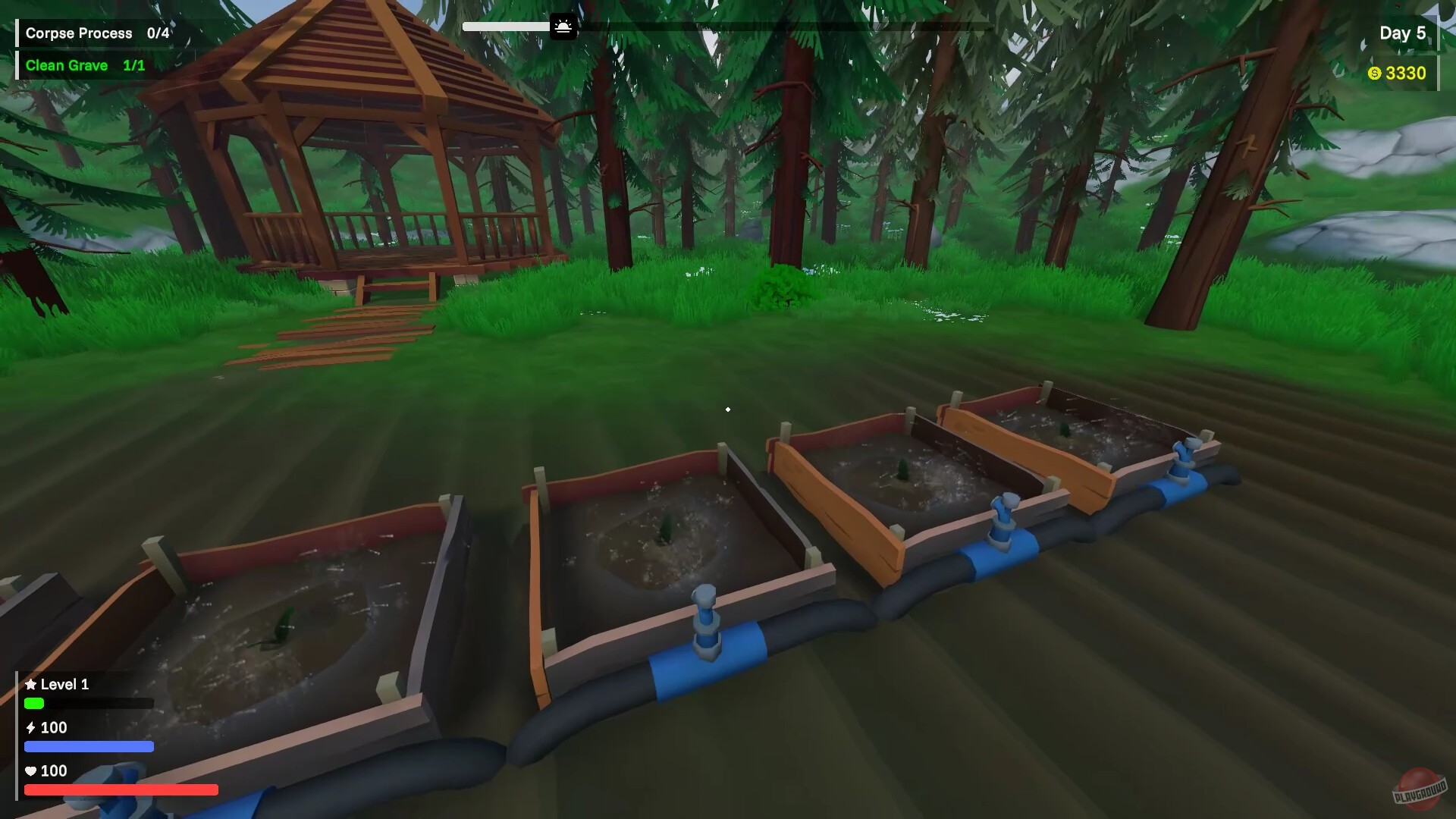 Ещё один симулятор на тему зомби-апокалипсиса, на этот раз с примесью могильного бизнеса. Геймплей разделён на две довольно разные части. В светлое время суток вам придётся возиться с посетителями кладбища, которые, видимо, ничего не знают о творящемся вокруг зомби-апокалипсисе и продолжают требовать чистые могилки и свежие цветочки на них. Придётся ублажать этих странных людей, чтобы получать от них какие-то там бонусы для поддержания вашего мрачноватого бизнеса на плаву.