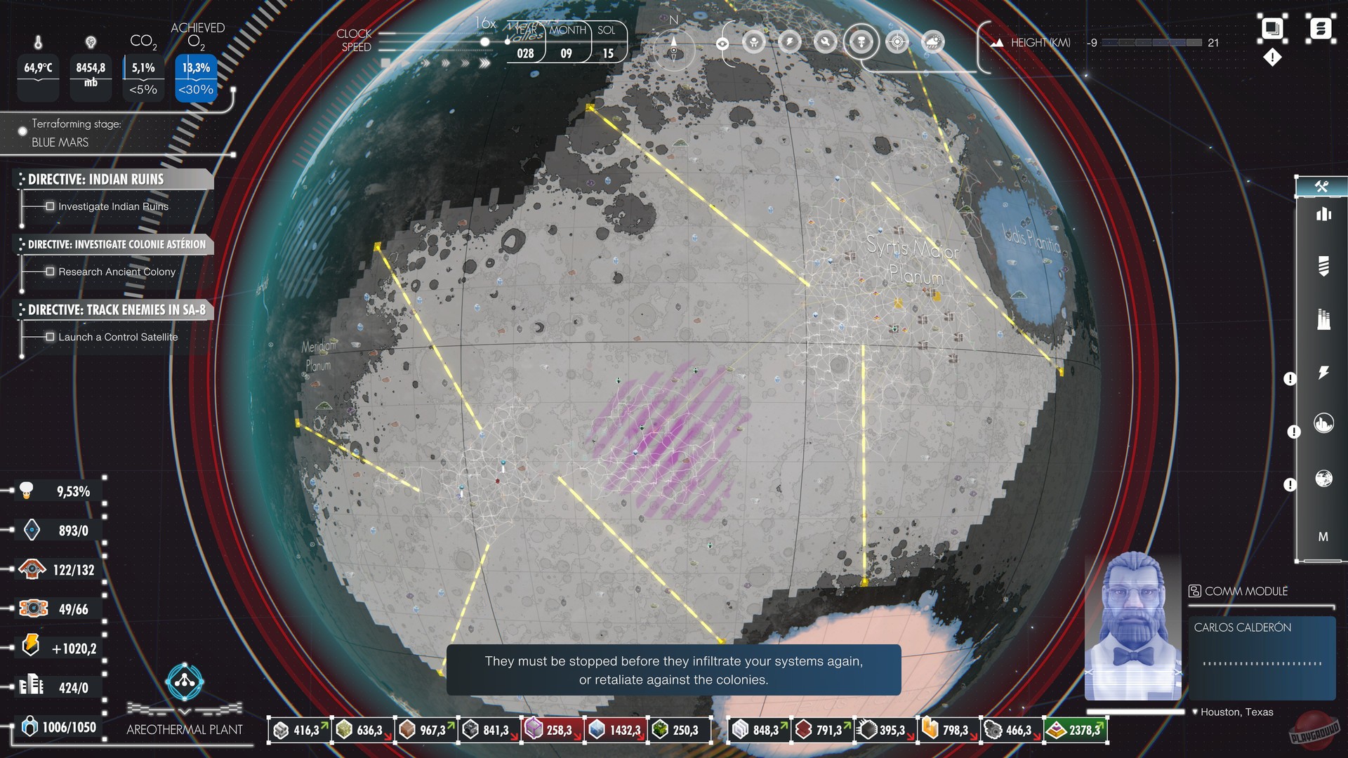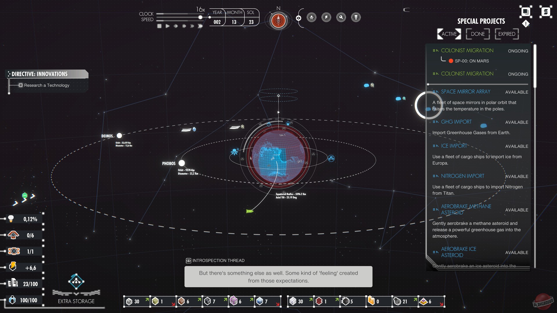 Геймплей Per Aspera — это идеальный микс между головоломкой для инженера и песочницей для мечтателя. Вам предстоит осваивать поверхность Марса, добывать ресурсы, строить сложнейшие производственные цепочки и балансировать экосистему целой планеты. Это как играть в Cities: Skylines, но вместо дорог и канализации вы прокладываете сети для производства кислорода и регулируете глобальную температуру. А еще у вас есть голос! Да-да, вы не безликий алгоритм, а полноценный персонаж с харизмой (озвученный настоящей звездой — актрисой Тильдой Суинтон!), который ведет диалоги с колонистами, учеными и даже с самим собой, размышляя о природе сознания и этике вмешательства в чужой мир. Так что скучать не придется: пока одни модули генерируют воду, вы будете решать философские дилеммы, достойные сериала «Черное зеркало».
