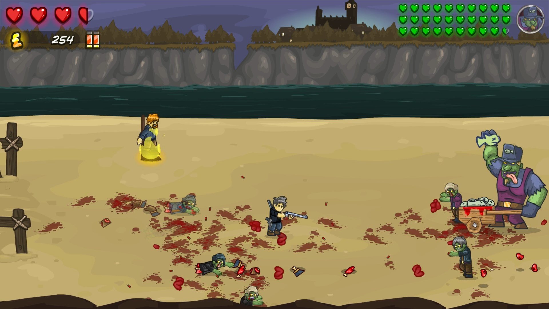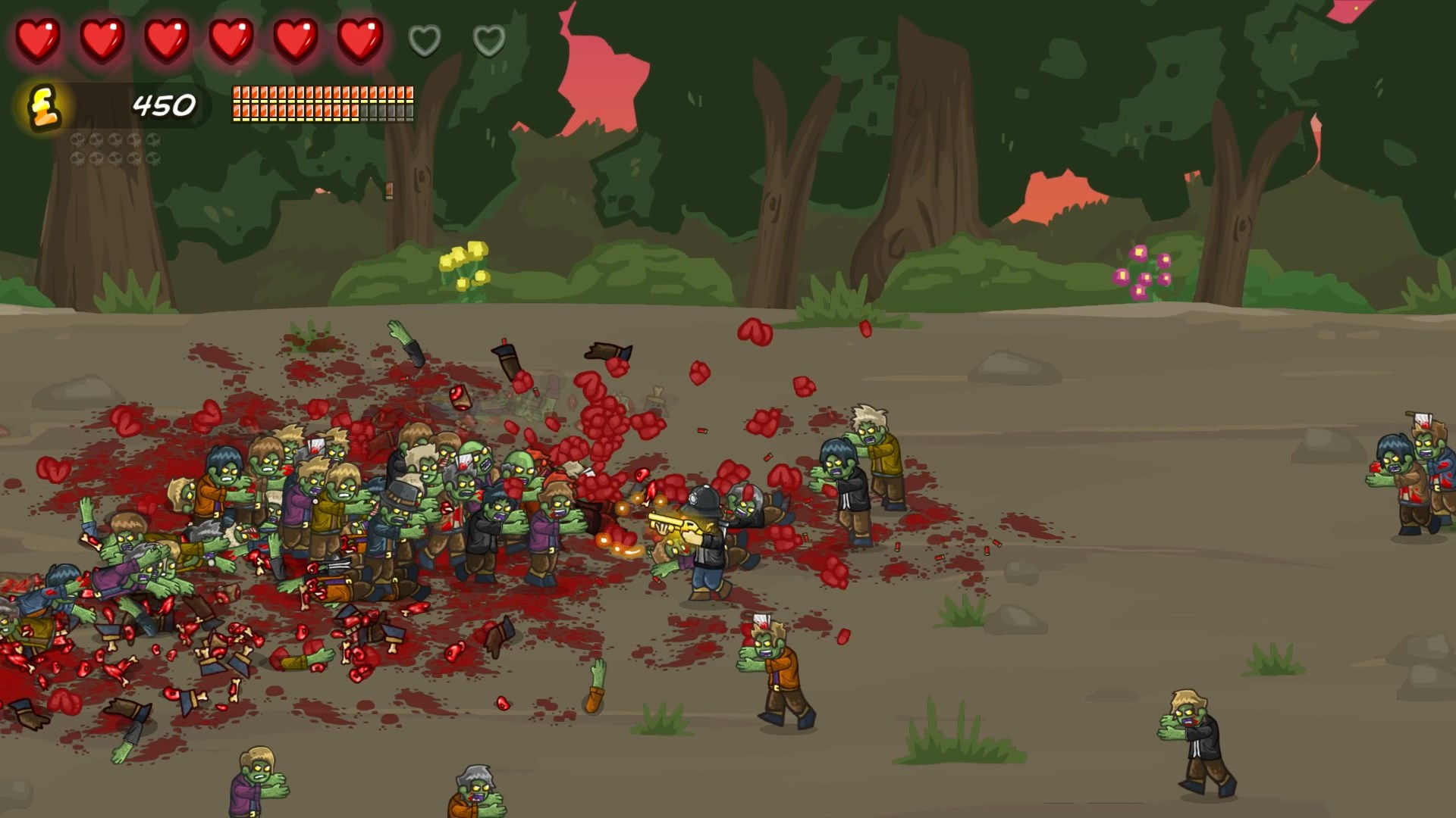 Особое очарование GIBZ заключается в её самоироничном юморе и стиле. Пиксельная графика выполнена с любовью и детализацией, создавая атмосферу старой доброй аркады, но с современным уровнем безумия. Игра идеально подходит как для одиночного прохождения, так и для весёлого кооператива с друзьями — ведь вместе убивать зомби не только веселее, но и безопаснее (ну, относительно). Если вы ищете динамичный аркадный шутер с элементами платформера, кооперативным режимом и безумным количеством врагов для уничтожения, то GIBZ — это именно то, что нужно. Готовы ли вы стать последней надеждой Лондона 1900-х годов и превратить зомби-апокалипсис в фейерверк крови и пикселей?
