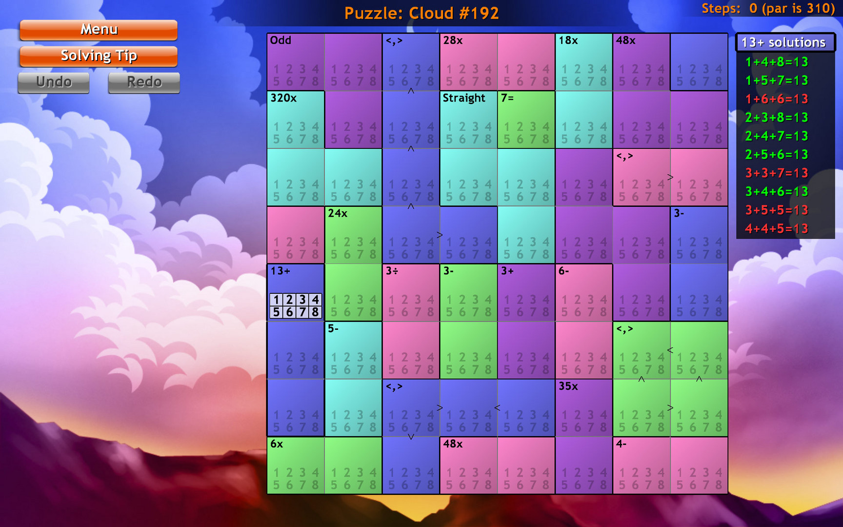 Геймплей Everyday Genius: SquareLogic прост до гениальности, но чертовски увлекателен. Вам предстоит заполнять квадратные поля числами, соблюдая определенные правила: в каждой строке и столбце числа не должны повторяться, а внутри цветных "клеток" они должны давать заданный результат при выполнении указанной арифметической операции (сложение, вычитание, умножение или деление). И да, здесь нет места слепому угадыванию! Все решения логически выводятся из подсказок, что делает процесс честным и невероятно удовлетворяющим. Это как если бы ваш любимый учитель математики вдруг стал крутым гейм-дизайнером и решил, что обучение может быть веселым. Игра предлагает 18 различных типов головоломок и 6 размеров полей, так что скука точно не грозит — вы будете переходить от простых задачек к настоящим интеллектуальным марафонам, даже не заметив, как пролетело несколько часов.