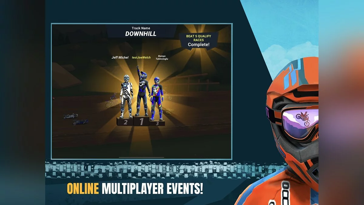 Mad Skills Motocross 3 — аркадный экшен про мотогонки с видом сбоку. С умопомрачительной физикой, бесконечной настройкой, сотнями треков и захватывающими многопользовательскими онлайн-событиями эта игра устанавливает стандарт для гоночных игр с боковой прокруткой. Вас ждет удивительная 3D-графика, реалистичные звуки мотоциклов и оригинальный энергичный саундтрек, которые помогают передать дух и агрессивность настоящих мотокроссовых гонок, но простое управление позволяет легко освоить игру. Эта игра бросит вам вызов, как никакая другая гоночная игра. В конце концов, мотокросс не должен быть простым.