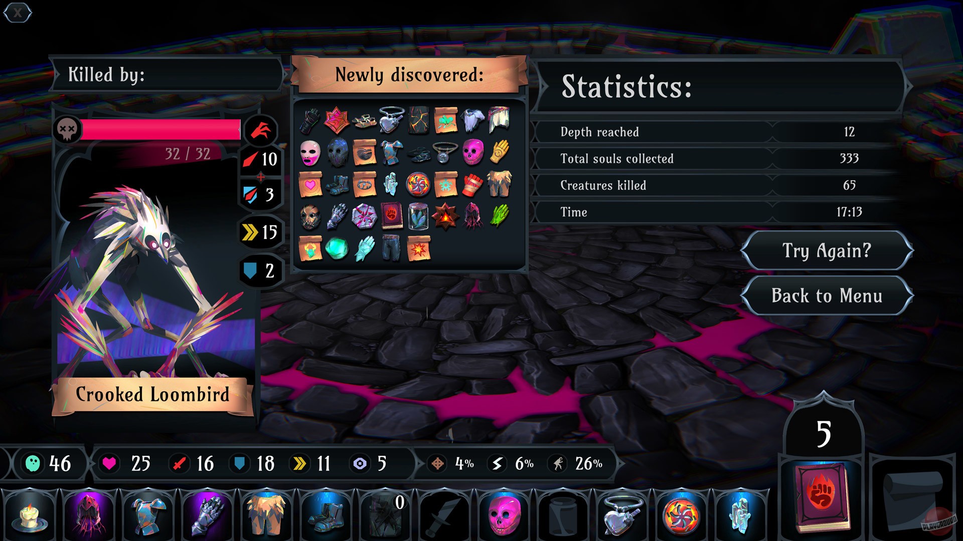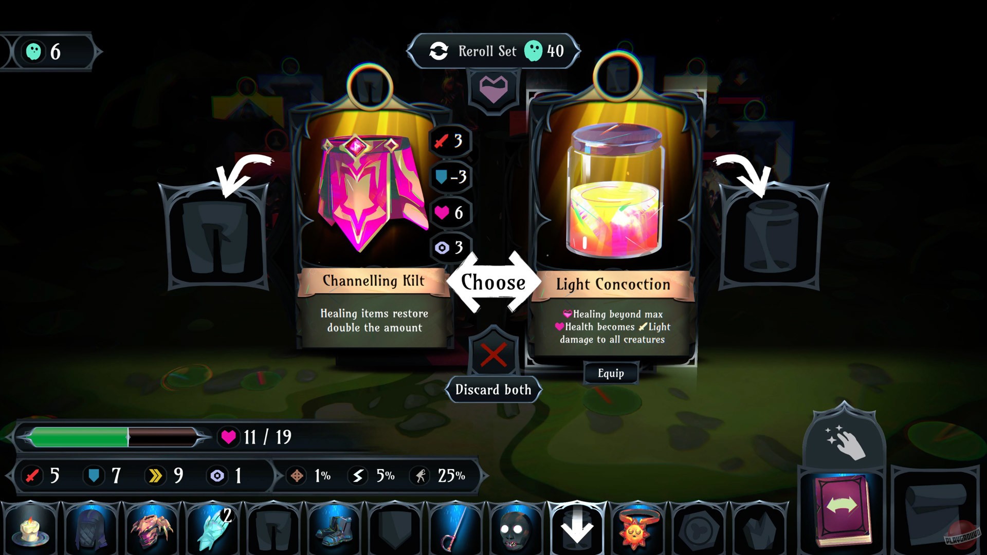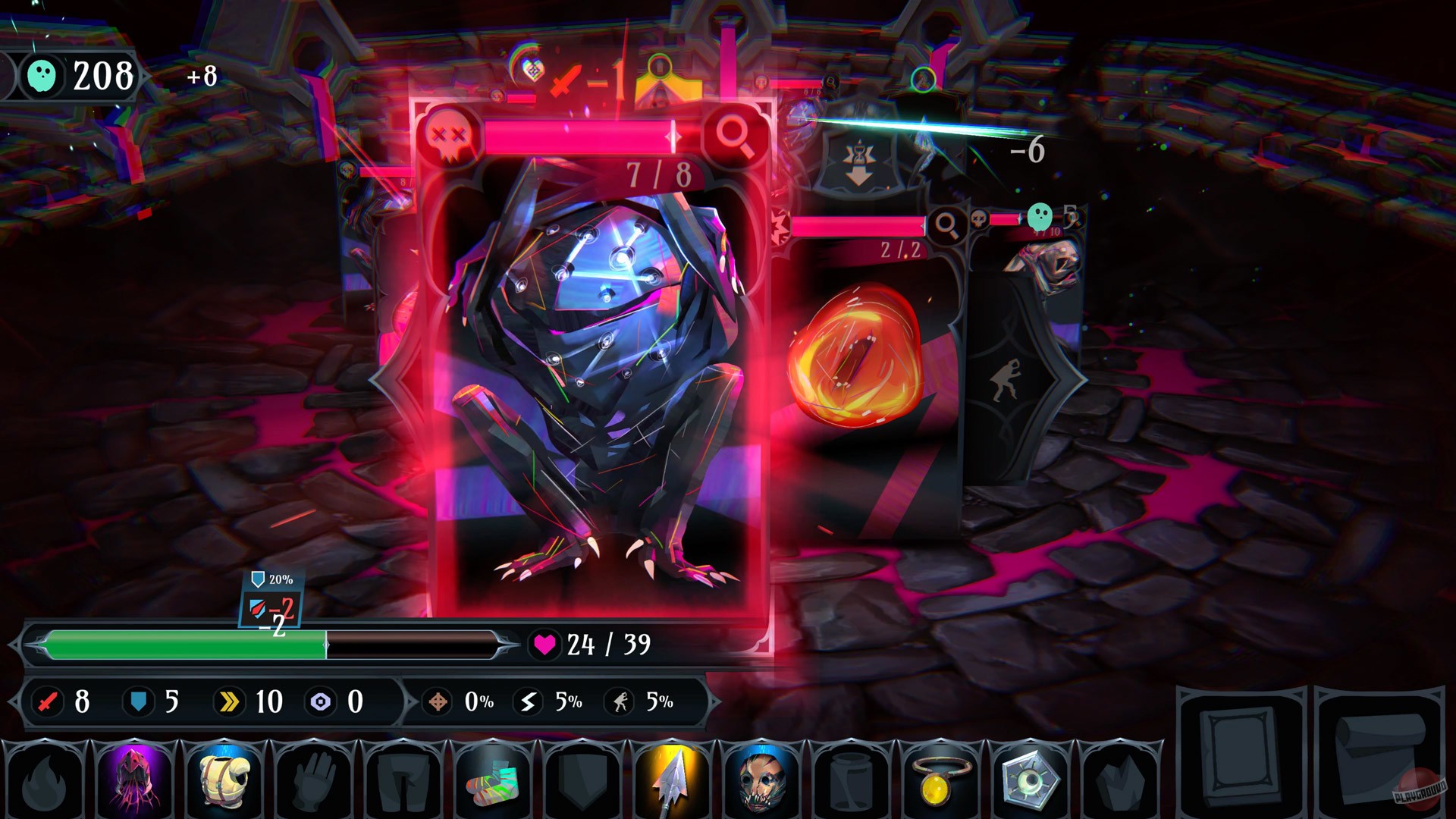 Сердце Ring of Pain — это её карточная система и управление инвентарём. По мере прохождения вы будете собирать разнообразные предметы и экипировку, которая кардинально меняет вашу тактику. Хотите стать непробиваемым танком? Или, может, предпочитаете стиль "нанеси урон и исчезни"? А может, вы тот самый хитрый игрок, который собирает коллекцию милых, но смертоносных питомцев? Возможности безграничны, а рандомизированные награды после каждого боя гарантируют, что ни одна попытка не будет похожа на предыдущую. Игра щедро вознаграждает тех, кто умеет просчитывать риски и принимать взвешенные решения, превращая каждый забег в уникальную историю о борьбе со страхами и темными углами вашего инвентаря.