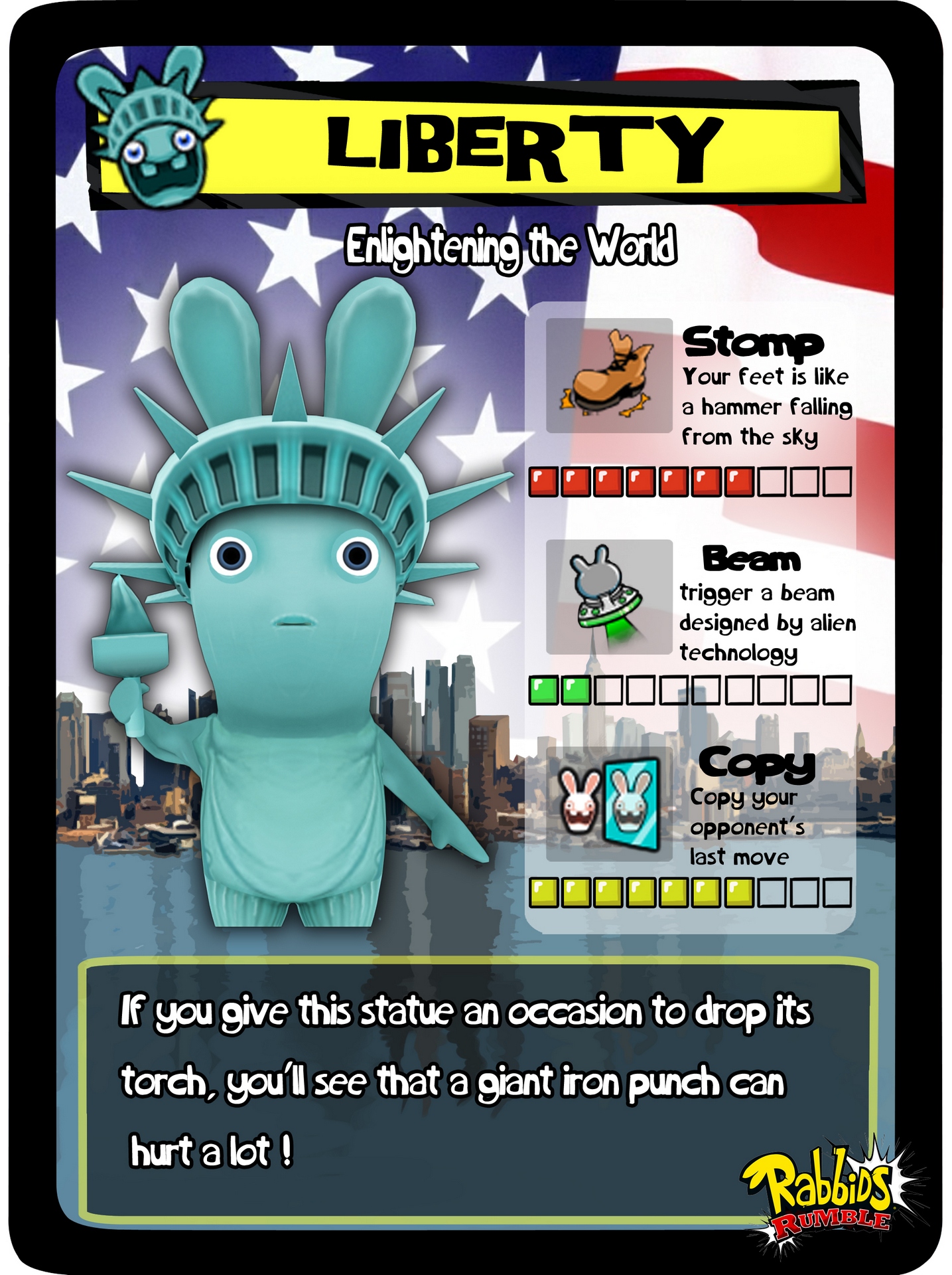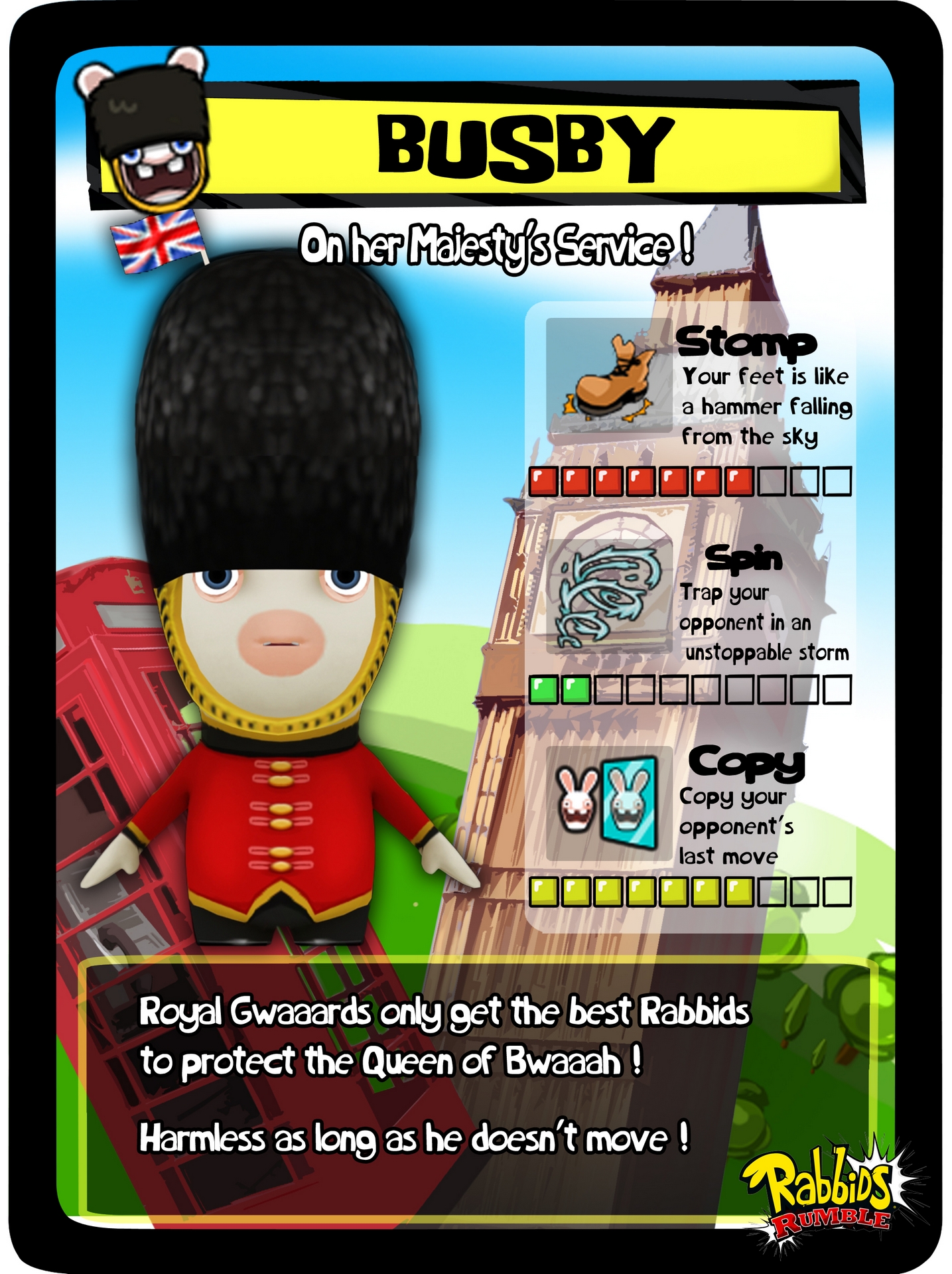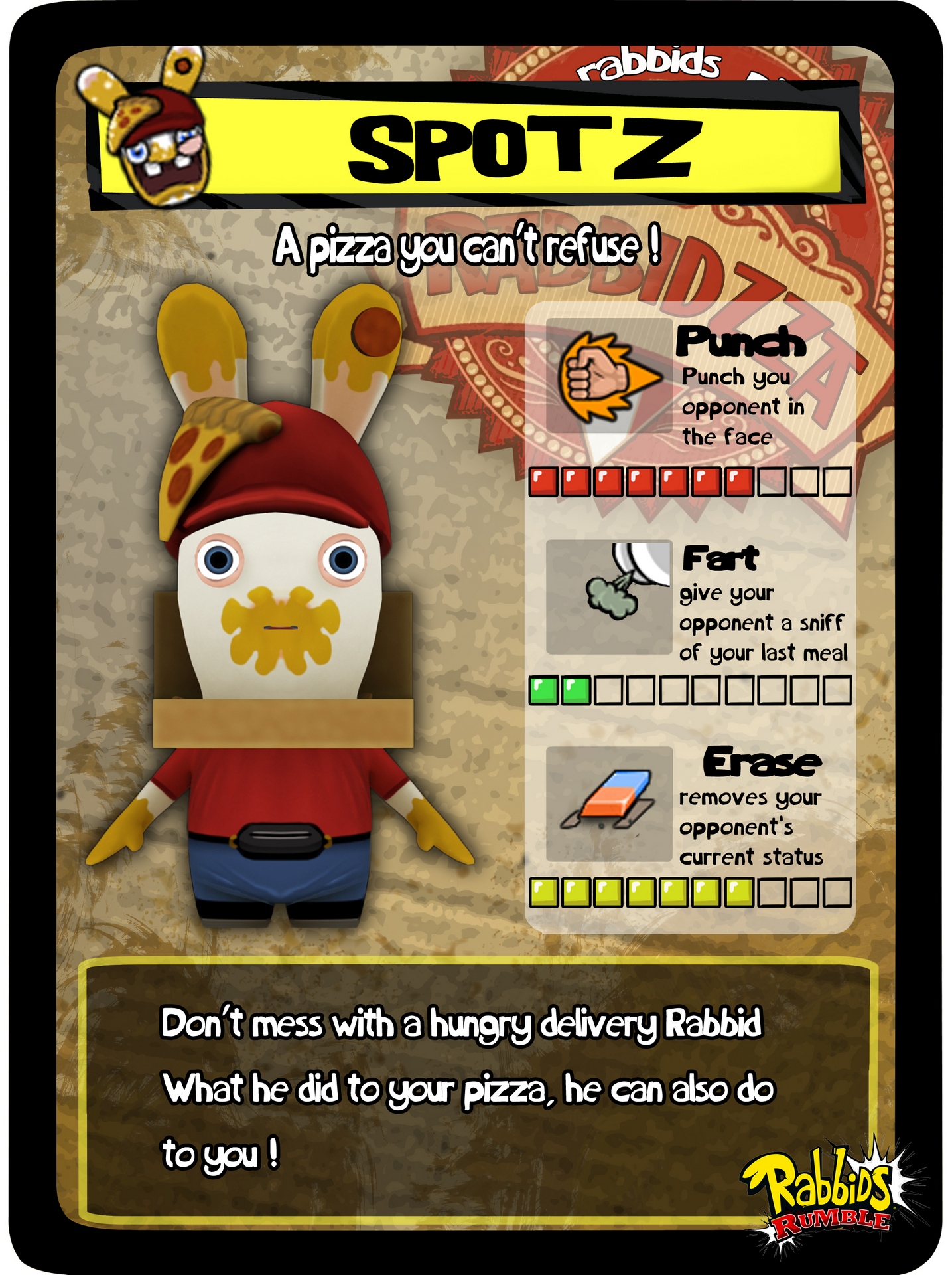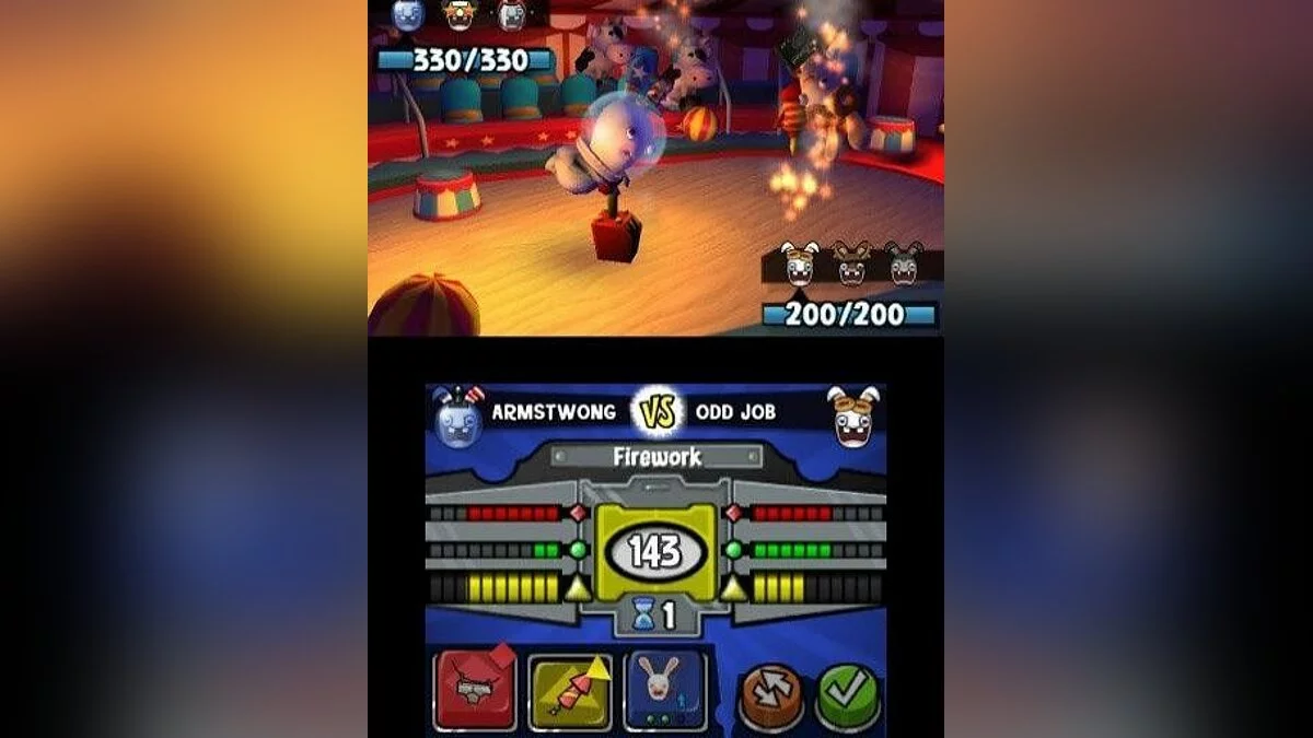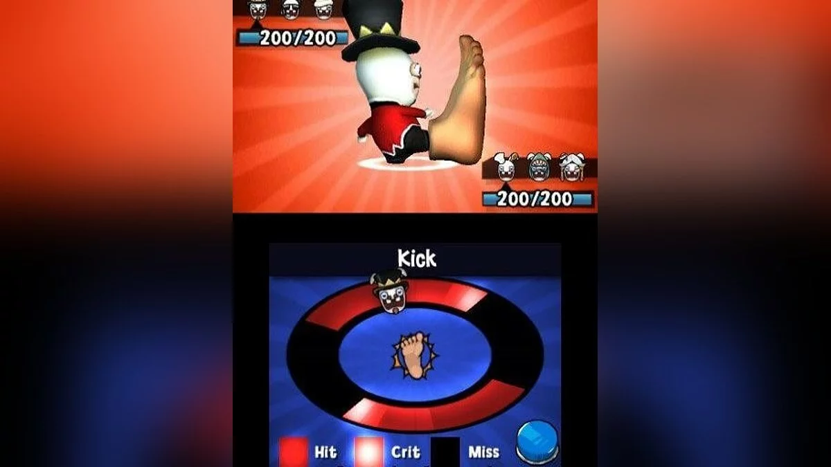 Ваше приключение разворачивается на огромной игровой доске, разделенной на семь сумасшедших миров. Чтобы продвигаться вперед, вам предстоит проходить через череду веселых и порой абсурдных мини-игр, которые отлично используют все фишки вашего 3DS, включая сенсорный экран и гироскоп. А затем, добравшись до конца уровня, вас ждет главное событие — эпическая потасовка! В режиме «Битвы» вы выбираете своего чемпиона из коллекции собранных Рэббитов и отправляете его в бой против троих противников. Сражения в Rabbids Rumble — это чистейший слэпстик-экшен: никаких сложных комбо, только прямые удары, безумные предметы и куча смеха. Это не Mortal Kombat, это Mortal... ну, вы поняли, тут все гораздо веселее и менее кроваво!