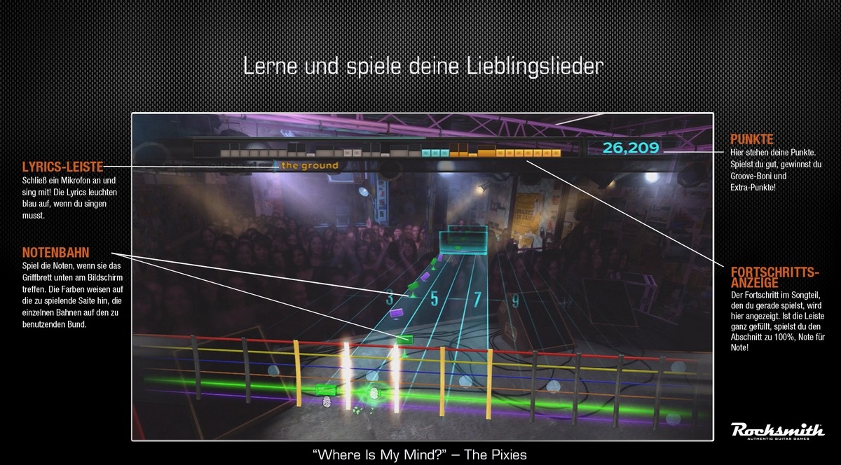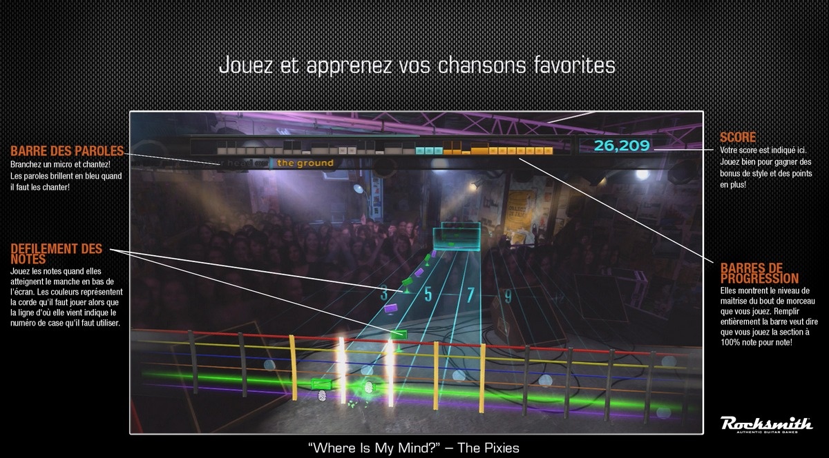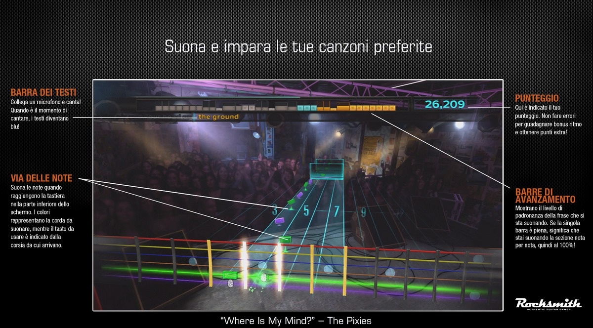 Геймплей Rocksmith устроен как интерактивная табулатура: на экране перед вами будут появляться цветные ноты, скользящие по струнам, и ваша задача — вовремя зажать нужный лад и сыграть аккорд или рифф. Система адаптируется под ваш уровень: если вы новичок, игра покажет вам самые простые партии, а по мере того, как вы будете прогрессировать, начнет добавлять сложные элементы вроде бенда, вибрато и быстрых соло. В арсенале игры — огромная библиотека лицензированных треков от таких легенд, как Nirvana, The Rolling Stones, Radiohead, Muse и многих других. А еще есть специальные режимы и мини-игры для отработки конкретных техник: хотите освоить тремоло? Пожалуйста! Мечтаете о безупречном слайде? Вперед! Это как Guitar Hero, но только вместо того, чтобы просто жать кнопки, вы реально становитесь музыкантом.