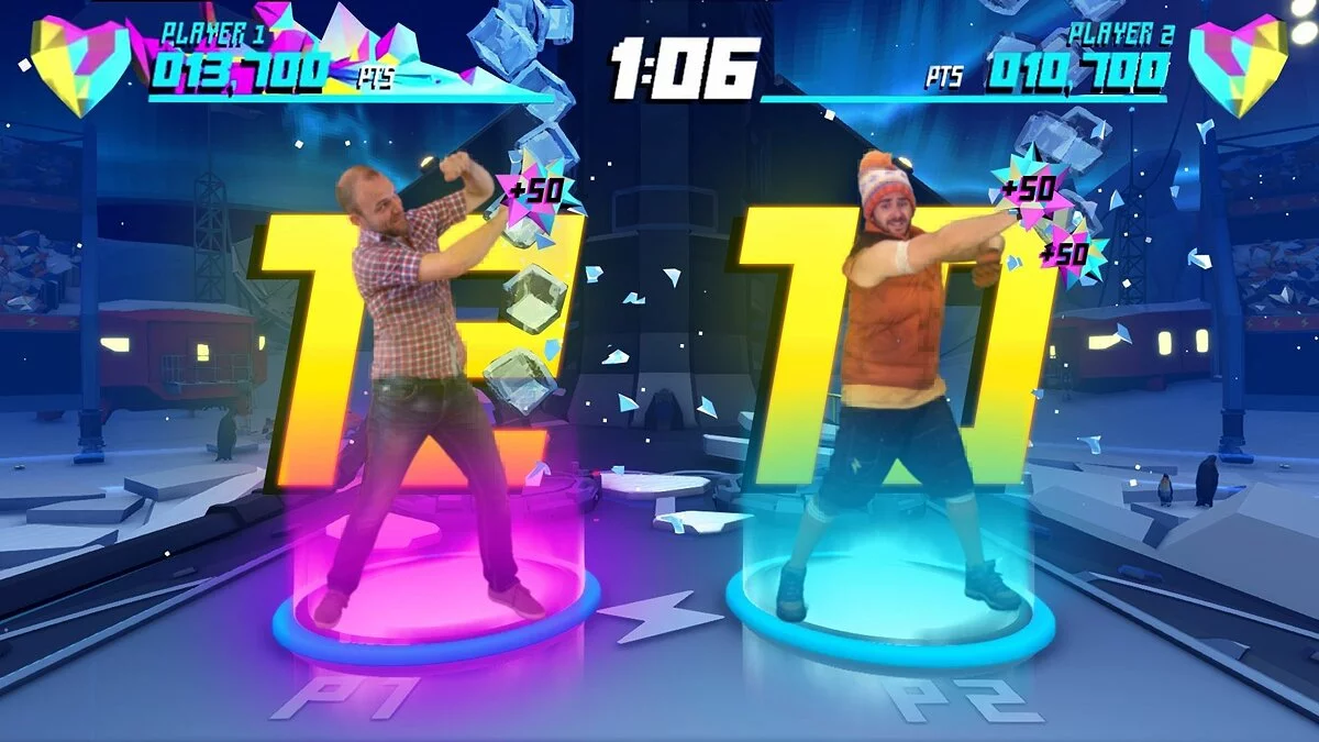 В Shape Up вы не просто делаете планку или приседания — вы сражаетесь с гигантскими кексами, ловите падающие торты, отбиваетесь от нападок разъяренного робота-тренера и даже примеряете на себя роль живого маятника! Вся магия происходит благодаря сенсору Kinect, который внимательно следит за каждым вашим движением, превращая вашу гостиную в персональный фитнес-зал будущего. Игра предлагает два основных режима: один сосредоточен на кардио-нагрузках для сжигания калорий, а другой — на силовых упражнениях для тонуса мышц. Каждое занятие — это короткий, но интенсивный сет из мини-игр, который не даст вам заскучать и подарит ощущение настоящего достижения. Это идеальный выбор для тех, кто ищет интерактивные тренировки для Xbox One или хочет найти забавную фитнес-игру с Kinect, чтобы совместить пользу и удовольствие.