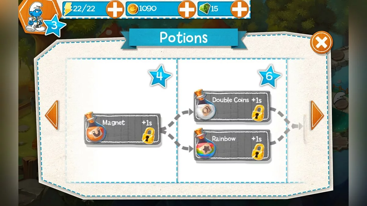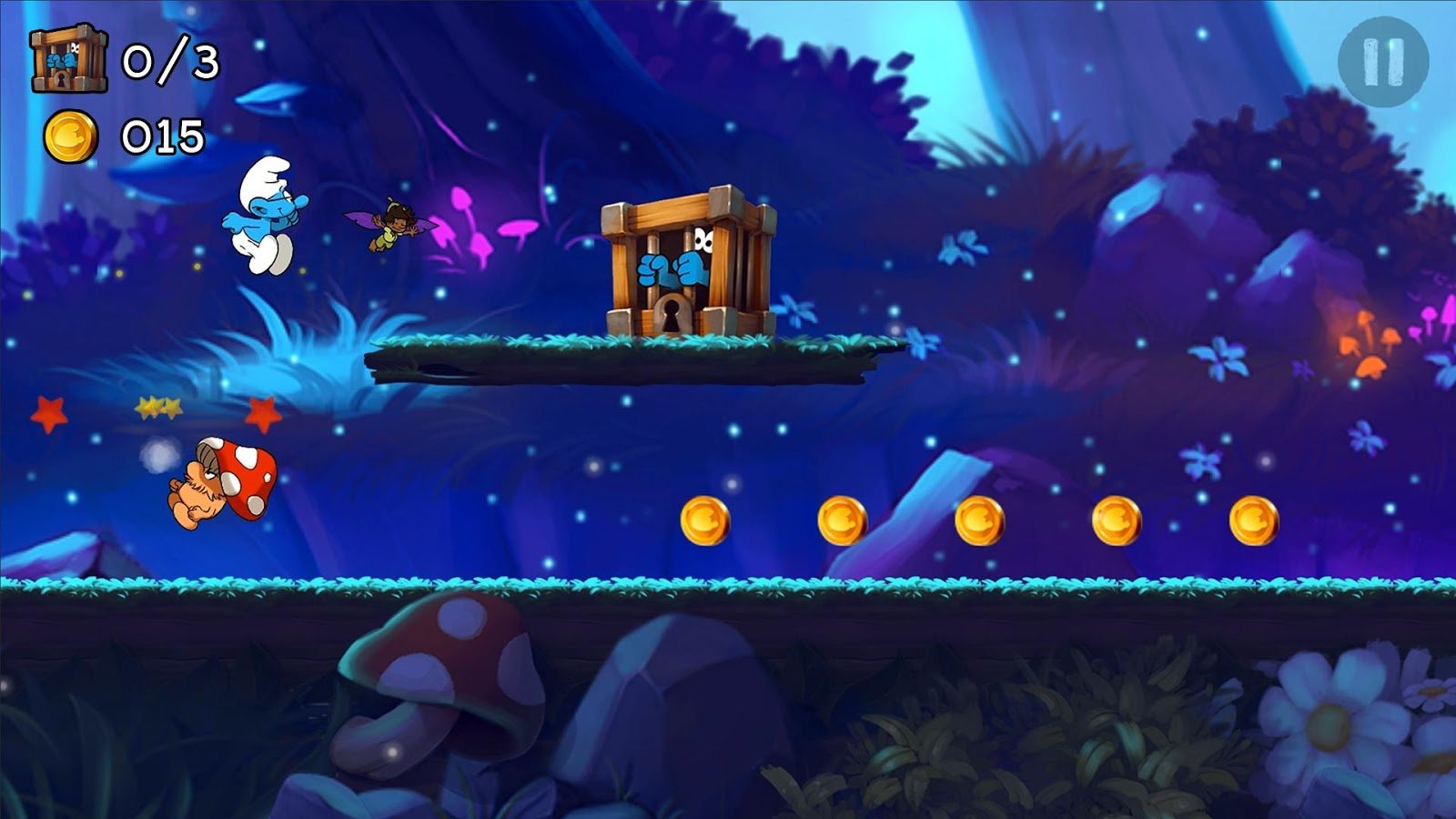 Геймплей Smurfs Epic Run — это чистый адреналин в лучших традициях бесконечных раннеров, но с фирменным смурфским шармом. Вам предстоит не просто бежать, а выполнять головокружительные трюки: прыгать через коварные ловушки, скользить под препятствиями, парить на воздушных потоках и даже использовать специальные способности персонажей. Каждый смурфик — это отдельная история: кто-то может разбивать камни, а кто-то — прыгать выше остальных. Игра предлагает более 100 уровней, ежедневные испытания и множество миссий, которые не дадут вам заскучать. Управление интуитивно понятное и отзывчивое, так что даже если вы случайно уроните телефон в ванну от восторга, виноват будете только вы, а не игра!