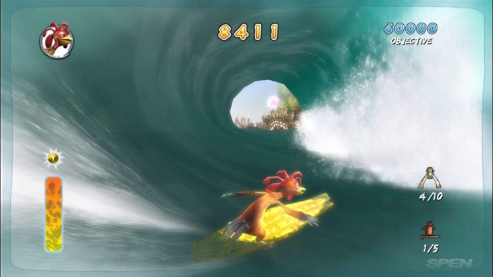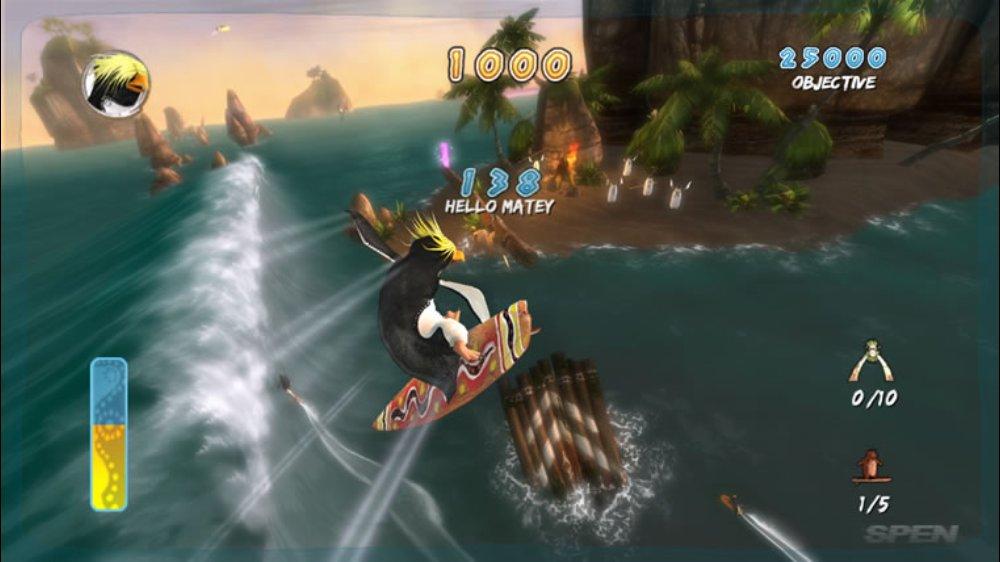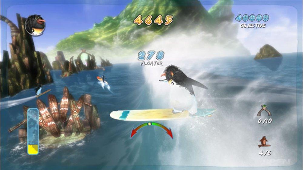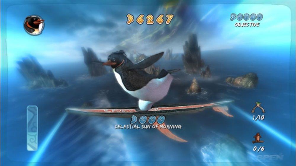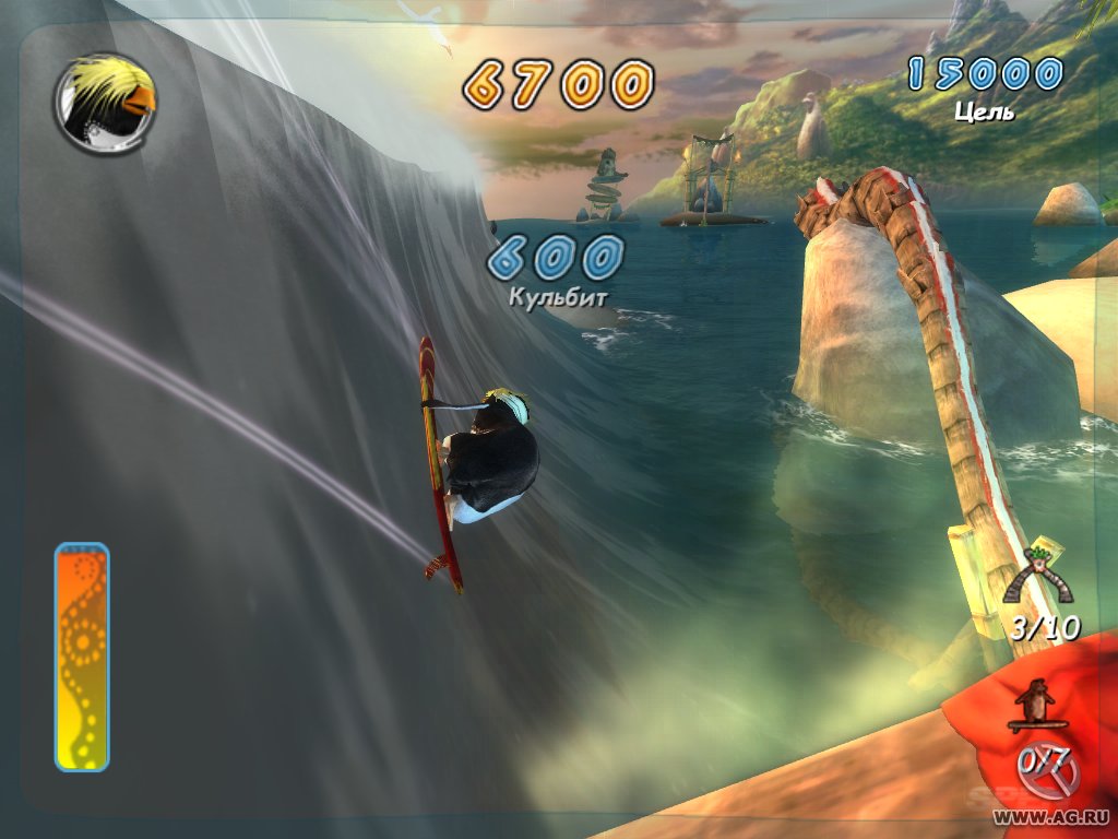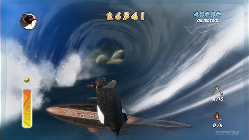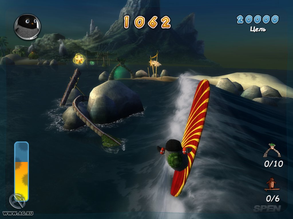 Геймплей Surf's Up — это идеальный микс из аркадного экшена и спортивного симулятора, который заставит вас забыть обо всем на свете. Ваш путь начинается с роль новичка Коджи, но уже через пару часов вы будете выполнять такие головокружительные трюки, что даже Тони Хоук покраснеет от зависти! Прокатывайтесь через арки для удвоения очков, собирайте бонусы и осваивайте новые локации — от заснеженных берегов до жарких тропических островов. Управление интуитивно понятное (хотя, признаемся честно, первые попытки могут закончиться «вляпыванием» в воду), а каждая волна — это новый вызов и шанс прославиться. Это не просто игра про серфинг, это ваш билет в мир, где пингвины — короли доски!