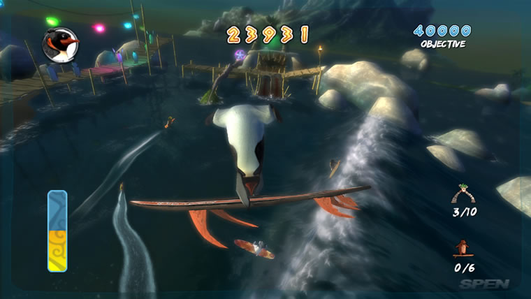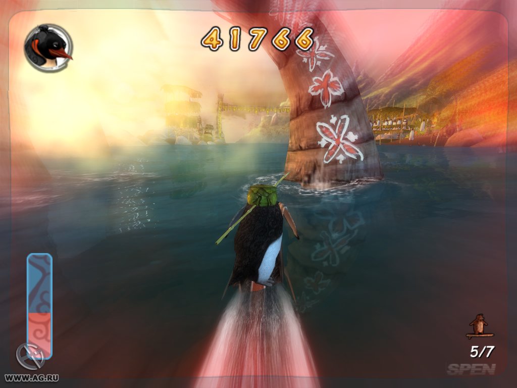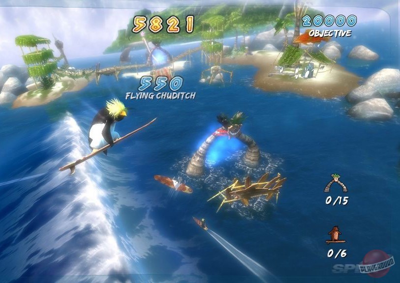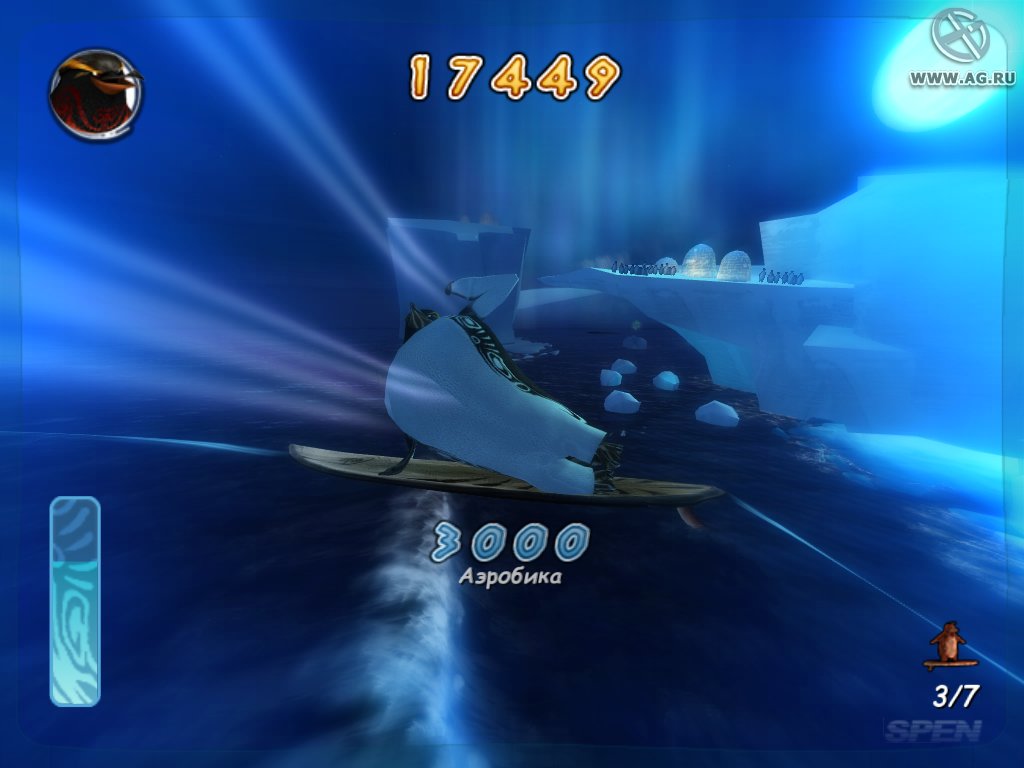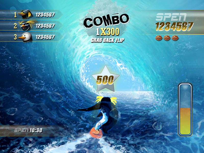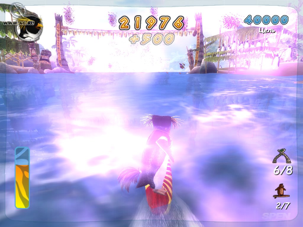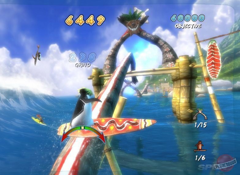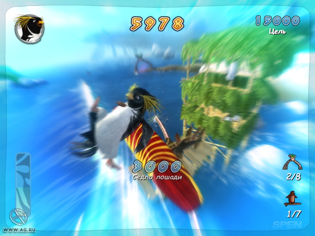Геймплей Surf's Up — это идеальный микс из аркадного экшена и спортивного симулятора, который заставит вас забыть обо всем на свете. Ваш путь начинается с роль новичка Коджи, но уже через пару часов вы будете выполнять такие головокружительные трюки, что даже Тони Хоук покраснеет от зависти! Прокатывайтесь через арки для удвоения очков, собирайте бонусы и осваивайте новые локации — от заснеженных берегов до жарких тропических островов. Управление интуитивно понятное (хотя, признаемся честно, первые попытки могут закончиться «вляпыванием» в воду), а каждая волна — это новый вызов и шанс прославиться. Это не просто игра про серфинг, это ваш билет в мир, где пингвины — короли доски!