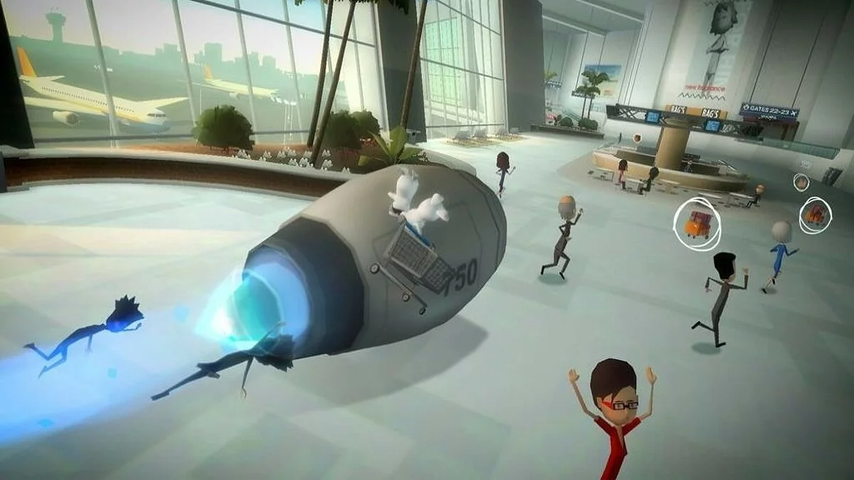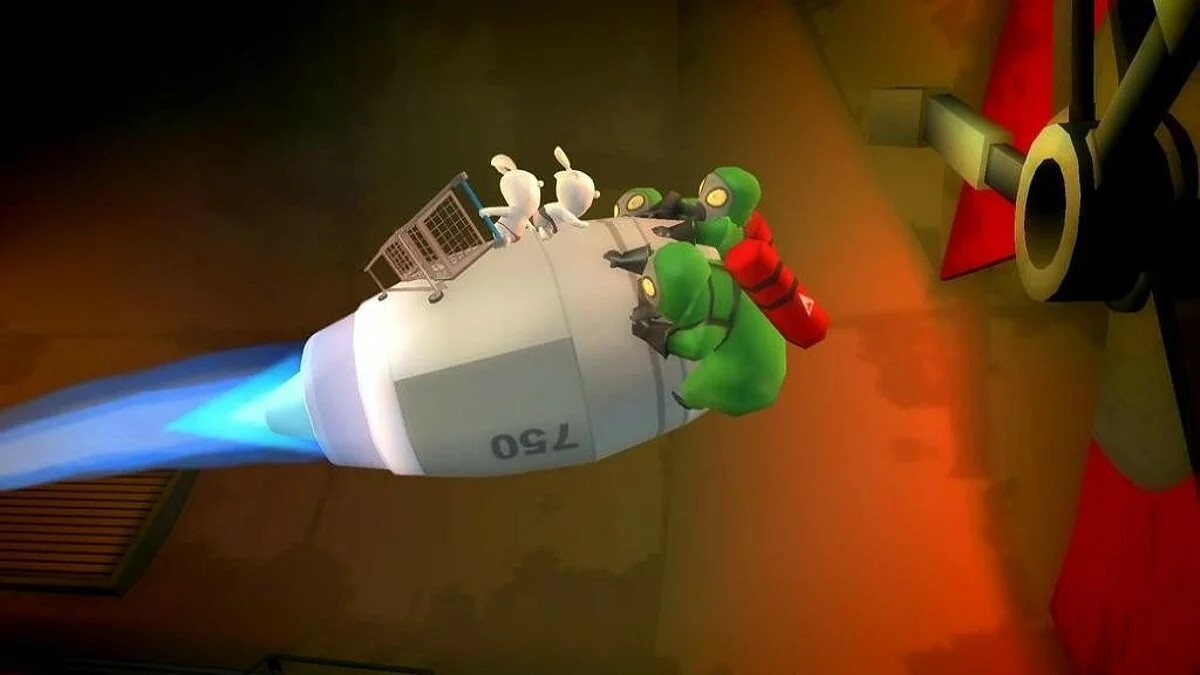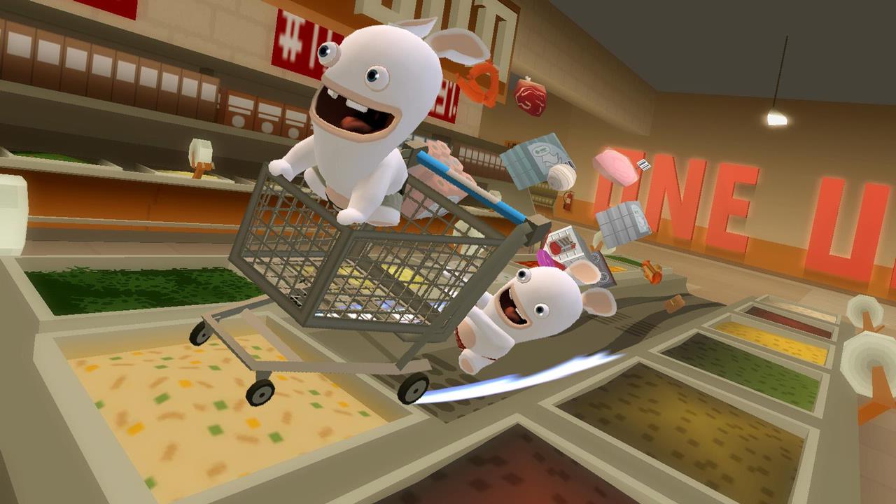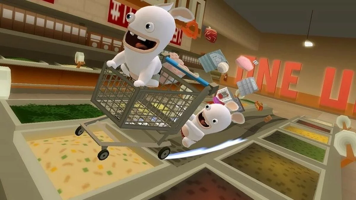Забудьте о спокойной жизни! В Rabbids Go Home вас ждёт самый безумный, хаотичный и откровенно сумасшедший уборочный марафон в истории видеоигр. Представьте: толпа белоснежных кроликов-маньяков, известных своим фирменным «БВАААХ!», вдруг решает, что им пора по домам. И где же их дом? Правильно — на Луне! Но как добраться до небесного светила, если у тебя в арсенале только мозги (которых, честно говоря, маловато) и неугомонная энергия? Конечно же, построить башню из человеческого хлама! Эта веселая игра-приключение для Nintendo Wii предлагает вам окунуться в мир абсурда, где главные герои — два управляемых кролика: один катит гигантскую тележку-шоппинг-карту, а второй сидит в ней и собирает всё, что плохо лежит. От старых носков и пустых банок до гигантских холодильников и автобусов — в Rabbids Go Home нет ничего слишком странного или бесполезного для вашей космической миссии.