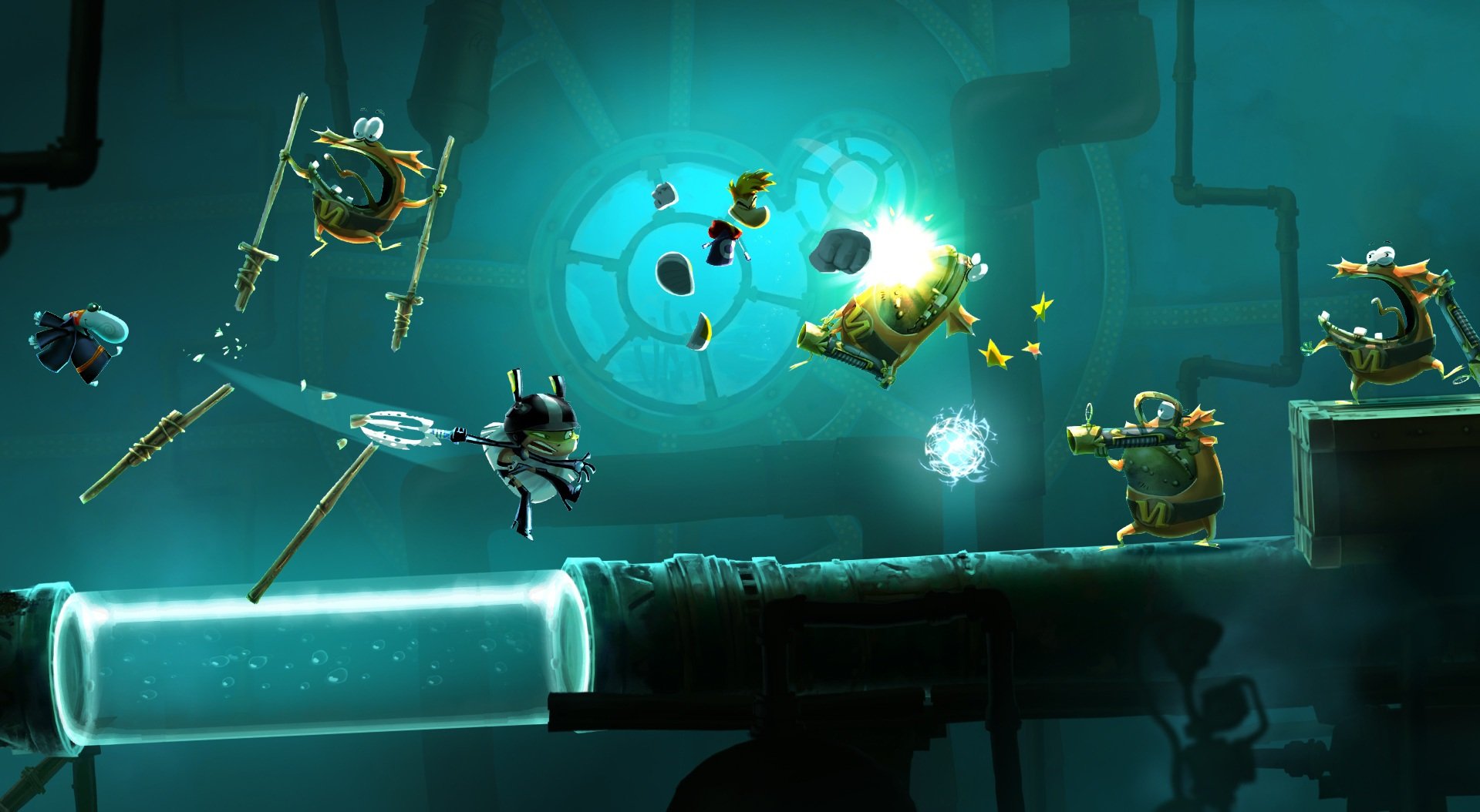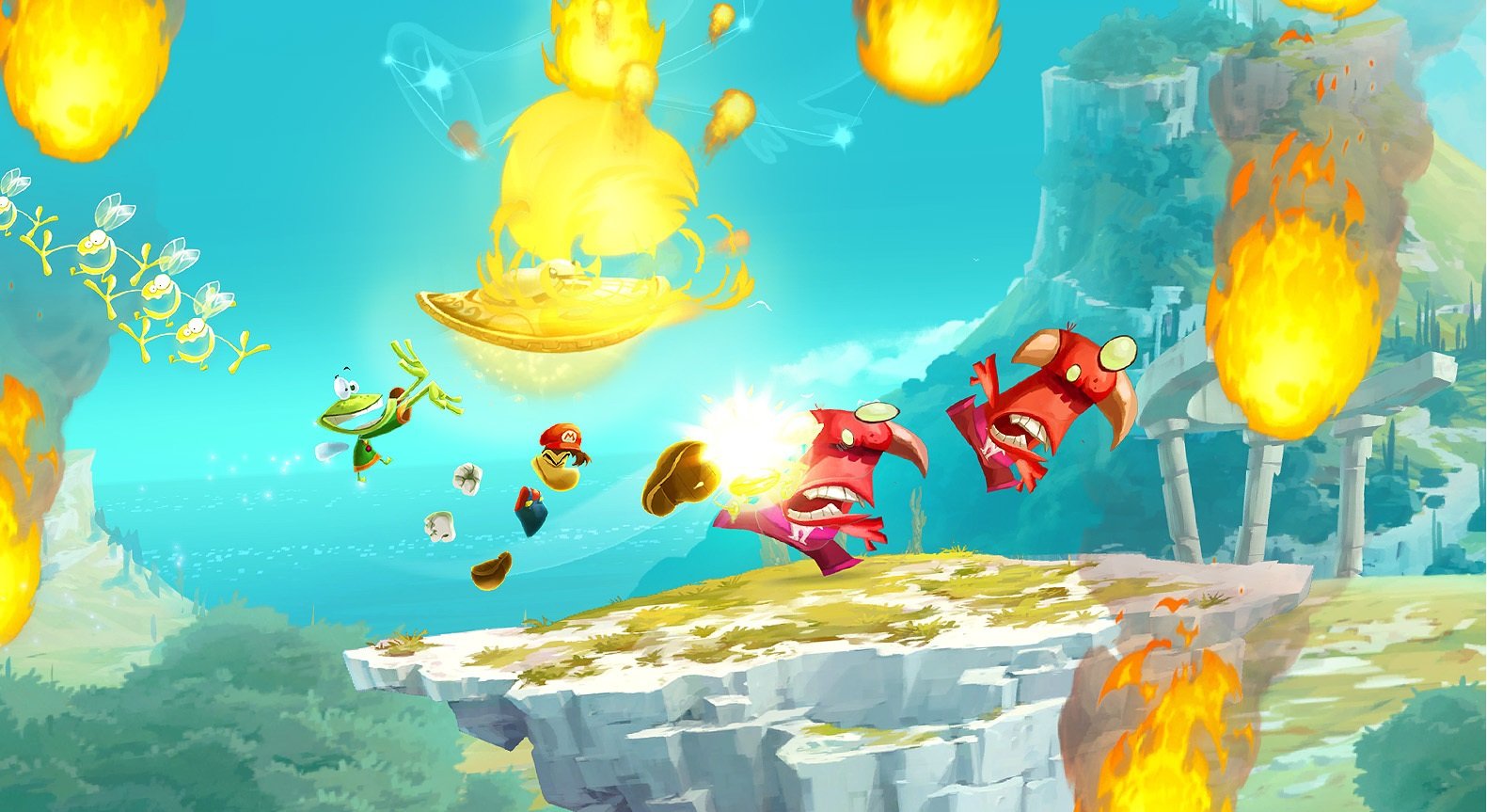 Геймплей Rayman Legends — это чистая, отполированная до блеска платформенная магия. Вы будете прыгать, скользить, бить кулаками (ладно, локтями) и даже играть в ритме музыки в знаменитых уровнях под треки вроде "Eye of the Tiger" или "Black Betty". Каждый новый мир — это новая тема: от мрачных замков вампиров до сочных пиратских островов и даже сюрреалистичных картин, оживающих прямо на ваших глазах. И да, вас будут сопровождать забавные зик-зиксы, этих пушистых зеленых существ, которых нужно спасать от неминуемой гибели (обычно в виде огромной кастрюли). Спасение зик-зиков — это не просто доблесть, это ключ к разблокировке новых персонажей и уровней!