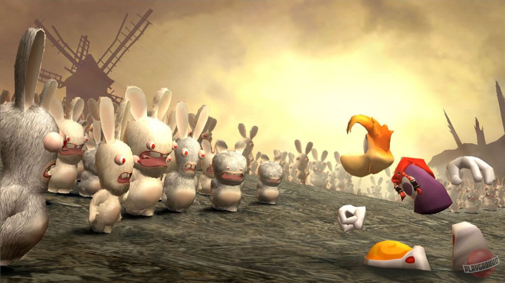 Представьте себе: вы спокойно гуляете по волшебному лесу, наслаждаетесь пением птичек и ароматом цветов, как вдруг из-за ближайшего куста на вас с диким воплем «Бвух!» выскакивает толпа белоснежных, красноглазых, абсолютно безумных кроликов. Вот так примерно и начинается приключение в Rayman Raving Rabbids — игре, которая с легкостью превратит ваш монитор в цирк, а вас — в главного героя этого самого безумия. Это не просто платформер или головоломка, это настоящий сборник мини-игр, где каждая новая активность — это новый способ убедиться, что эти кролеги (да-да, именно кролеги!) — самые непредсказуемые и веселые антагонисты в истории гейминга.
