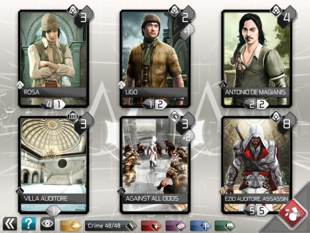 Assassin's Creed Recollection - карточная настольная игра для iPad во вселенной Assassin's Creed. Поклонники смогут обнаружить и накопить большое разнообразие художественных работ, созданных для игр Assassin’s Creed. Они также смогут состязаться в карточных боях в настольной игре в реальном времени с ключевыми персонажами и локациями из игр серии.