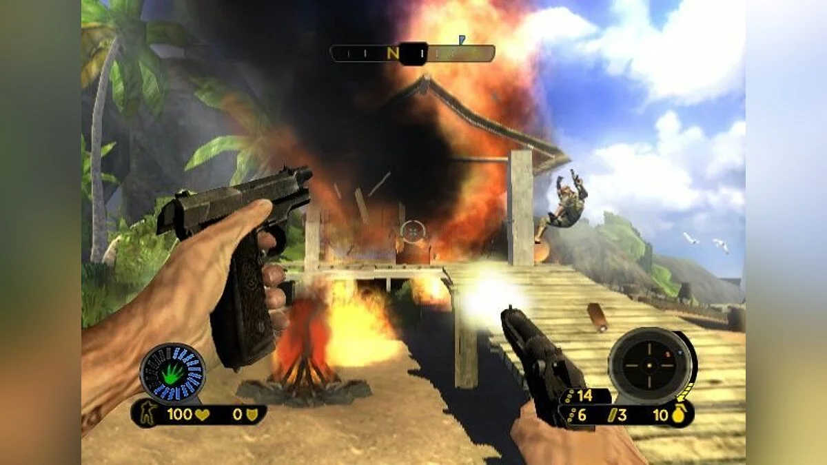 Добро пожаловать в тропики, где вместо кокосов по вам стреляют, а вместо расслабляющего массажа — ураган из пуль и гранат! Far Cry: Vengeance для Nintendo Wii — это ваш шанс стать Джеком Карвером, героем, который явно перепутал свой отпуск на райском острове с заданием спецназа. Эта игра — не просто экшен от первого лица, а настоящий эксперимент над вашими запястьями и терпением, ведь здесь управление построено вокруг магии контроллера Wii Remote и его верного спутника Nunchuk. Хотите метнуть гранату? Размахнитесь рукой! Захотелось прыгнуть за укрытие? Поднимите руку с «нунчаком»! Это как играть в боевик, но вместо джойстика у вас в руках волшебная палочка, которая иногда решает, что вы хотели сделать совсем не то.