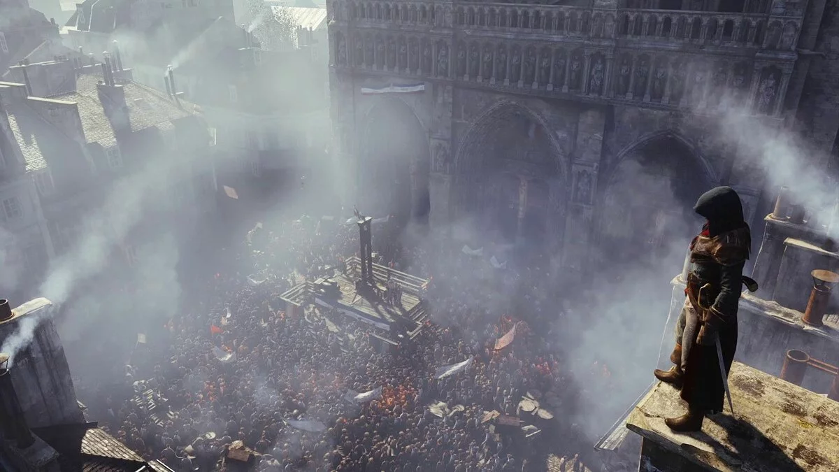 Assassin's Creed Unity - это седьмая "основная" часть приключенческого экшена про ассасинов и тамплиеров, действие которого разворачивается во времена Великой Французской Революции. Главным героем этой части становится молодой человек Арно Виктор Дориан, чья миссия - отмостить за убитого отца, а так же найти некоего "Мудреца", который понадобился ассасинам из "настоящего времени". Unity от остальных частей серии отличает не только изменившийся сеттинг, но и наличие кооперативного режима на четверых игроков - некоторые миссии гораздо проще выполнить, позвав друзей на помощь. Помимо этого, игроки получили доступ к огромному ассортименту предметов для кастомизации своего ассасина, а так же к огромному Парижу образца 1798 года, который полон заданий, сокровищ и тайн.