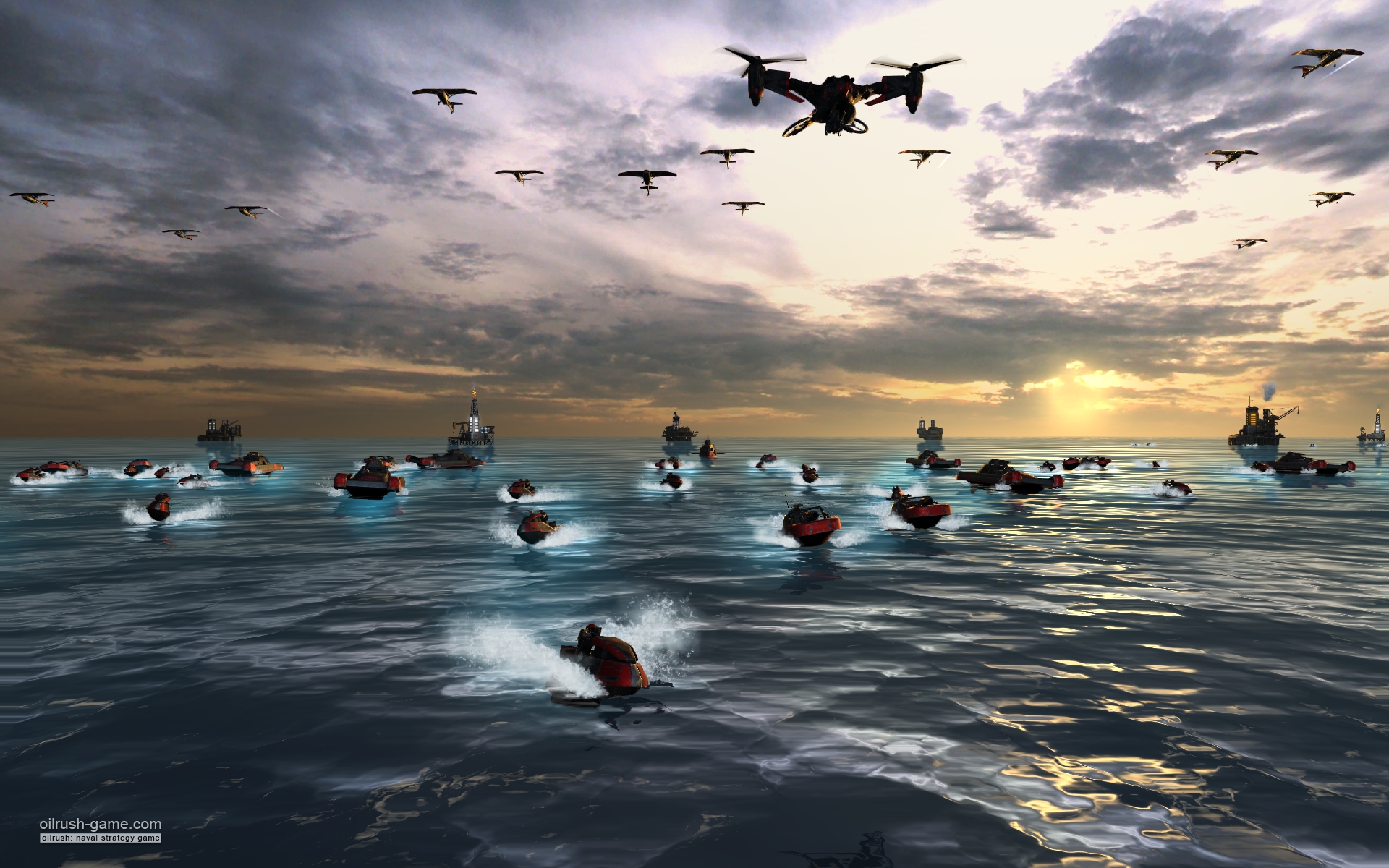 Добро пожаловать в затопленное будущее, где суша — это миф, а нефть — новая вода! Встречайте Oil Rush — уникальную 3D-стратегию в реальном времени от российских разработчиков UNIGINE Corp., которая перенесёт вас в постапокалиптический мир, напоминающий «Водный мир» на стероидах. Представьте: глобальное потепление победило, континенты ушли под воду, и теперь всё человечество воюет не за землю, а за последние нефтяные вышки и плавучие заводы. Ваша задача? Захватить как можно больше этих драгоценных точек добычи «чёрного золота», пока ваши противники не сделали это первыми. Это не просто морская стратегия, это настоящая битва за выживание в мире, где бензин дороже жизни!