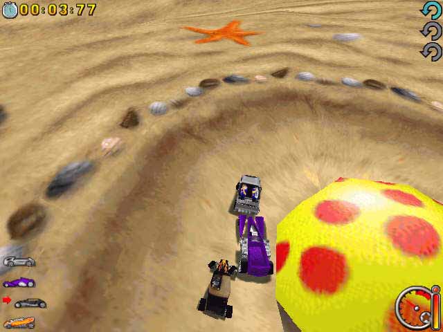 В Hot Wheels Micro Racers вас ждут три уникальные и невероятно детализированные 3D-трассы, каждая из которых полна сюрпризов. Вас поджидают не только острые повороты и крутые виражи, но и всевозможные препятствия и ловушки, которые превратят заезд в настоящее приключение. Геймплей прост до безобразия: берите управление в свои руки и мчитесь к победе, обгоняя трех других компьютерных соперников. Хотите потренироваться перед чемпионатом? Пожалуйста! Режим одиночной гонки позволит вам изучить каждый изгиб трека и найти все секретные короткие пути, чтобы потом шокировать оппонентов своей скоростью. Это идеальная «офисная диверсия» или способ весело провести время после школы, ведь игра затягивает с первых же секунд.