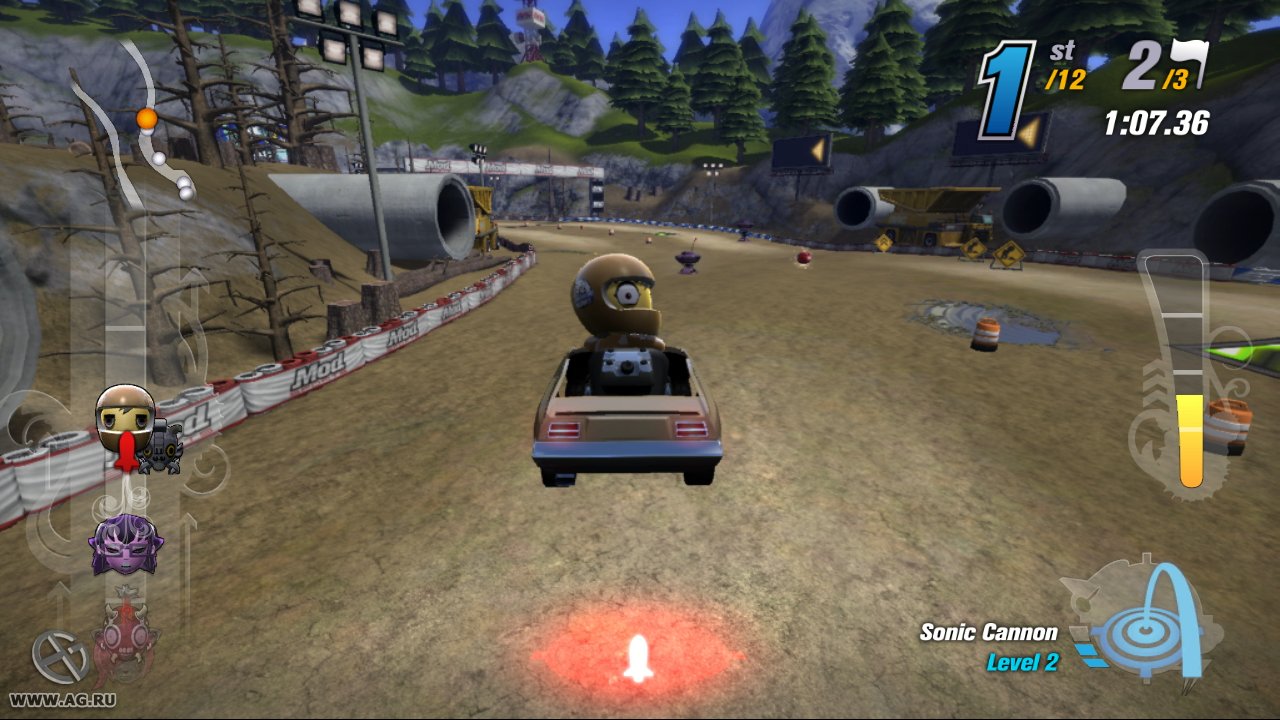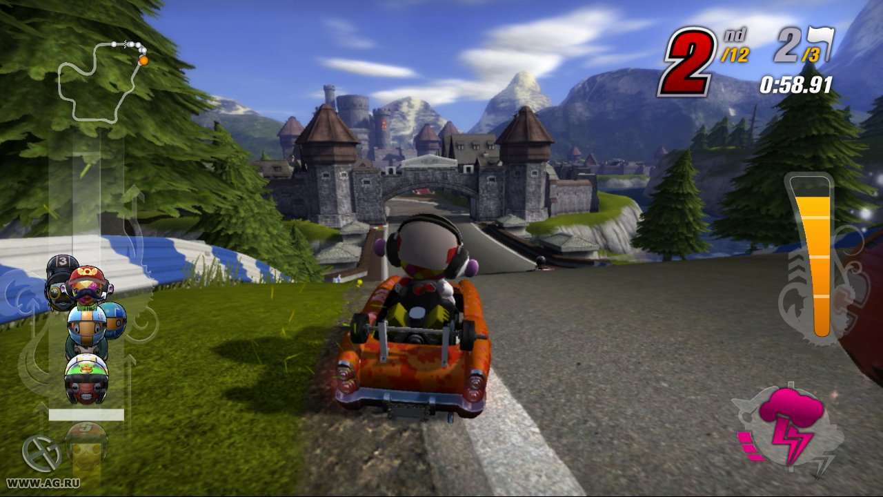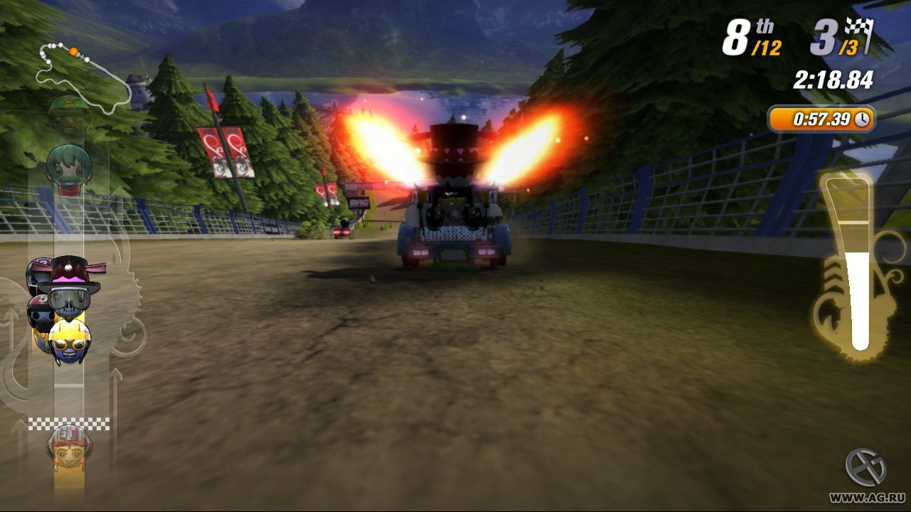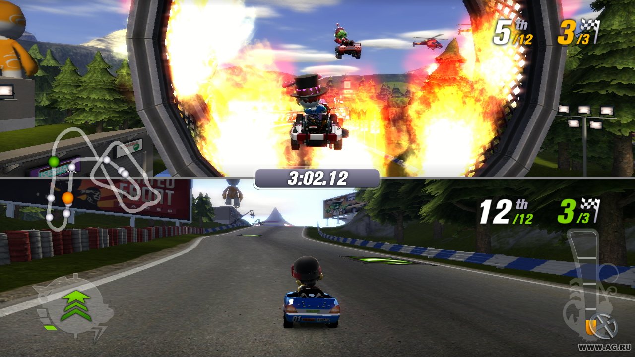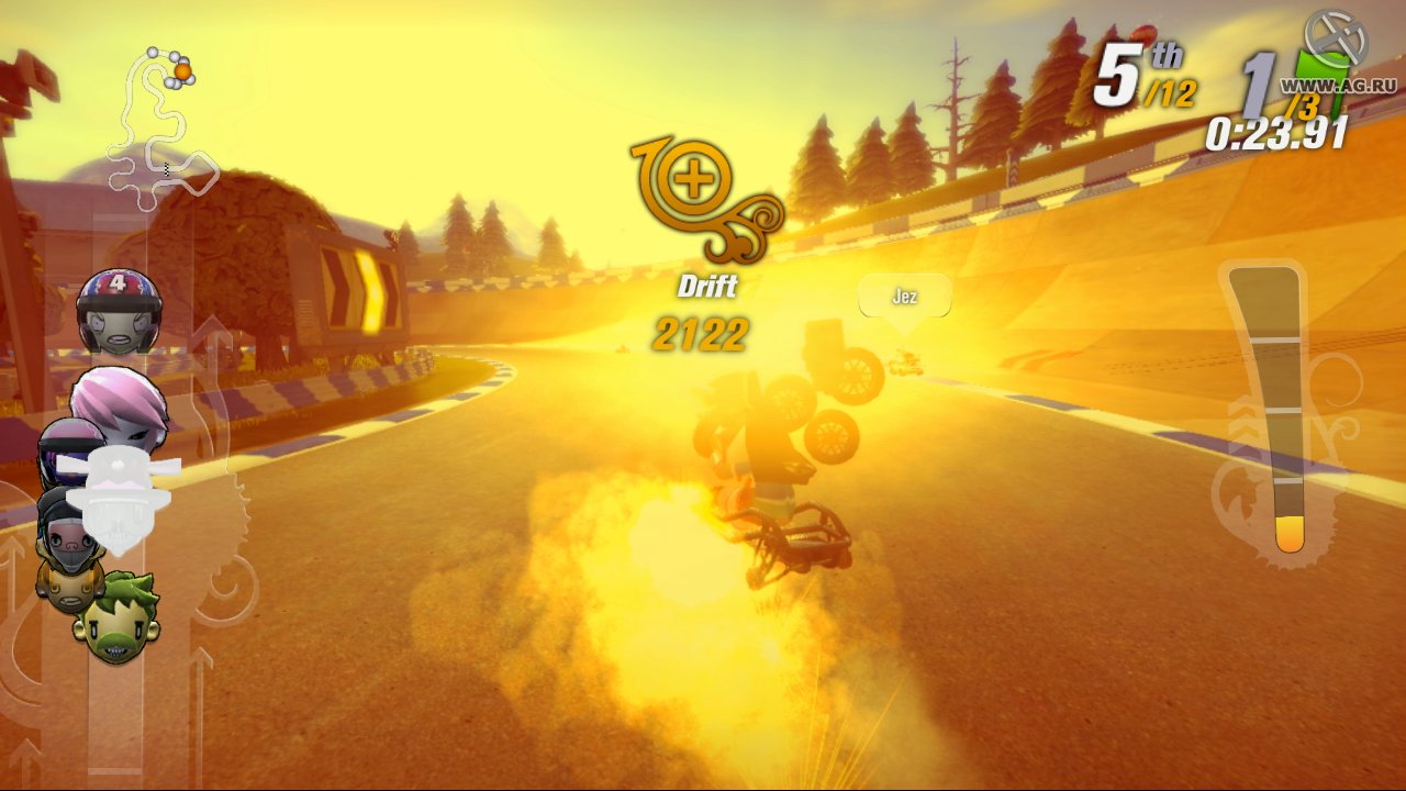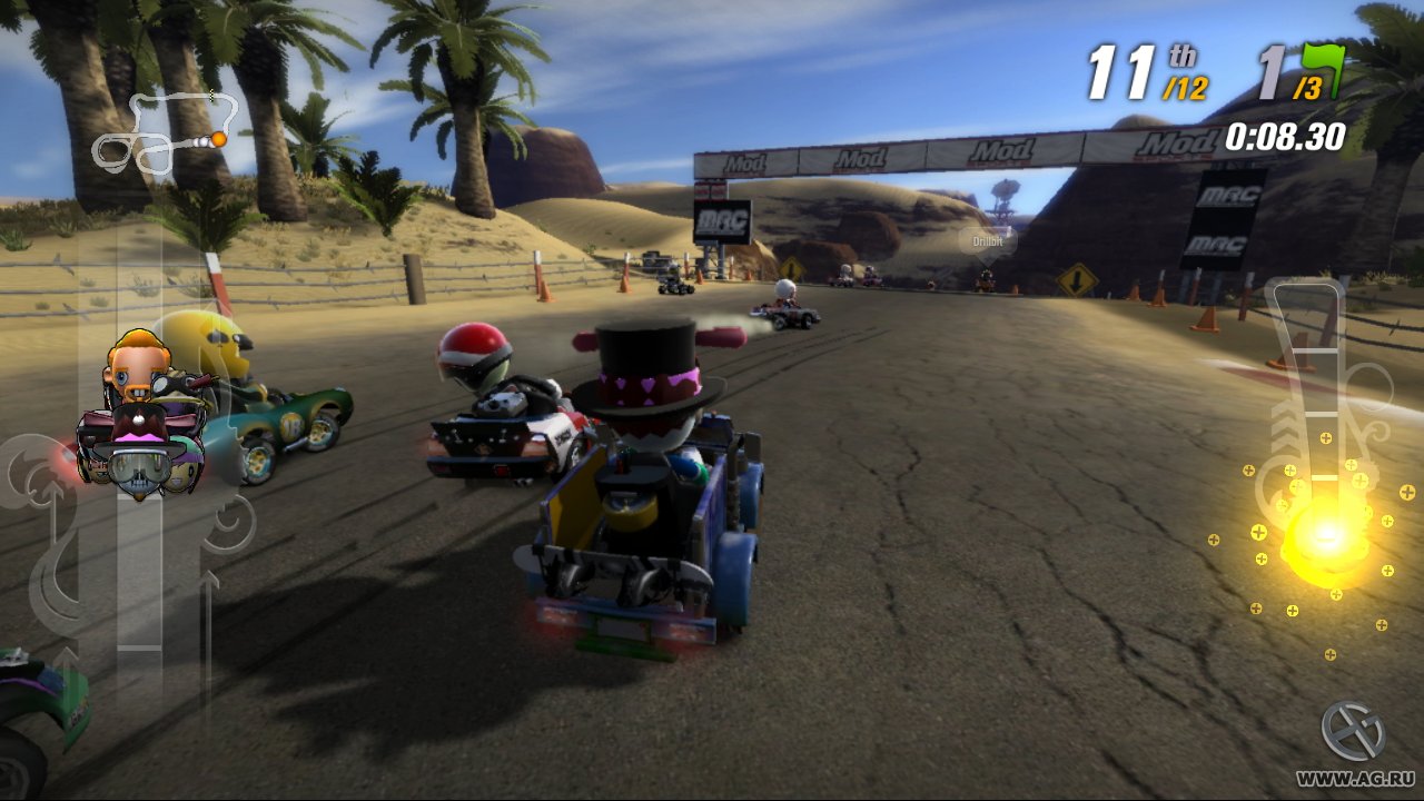 Забудьте про скучные гонки с идеальными машинами и асфальтом, который вылизан до блеска! Встречайте ModNation Racers — это не просто картинг-гонки, это настоящий цирк скорости, где ваша фантазия — главный режиссер, а законы физики — всего лишь рекомендации. Представьте себе любовное дитя Mario Kart и LittleBigPlanet: здесь вы не только мчитесь по трассе, оставляя за спиной клубы дыма и вражеские болиды, но и сами лепите из этого безумия всё, что душе угодно. Это игра-конструктор для тех, кто всегда мечтал поставить на колёса своего любимого персонажа или создать трассу, которая напоминает квест из "Форт Боярд". Жанр? Назовём его "аркадные гонки с элементами творчества и здоровенной долей хаоса".