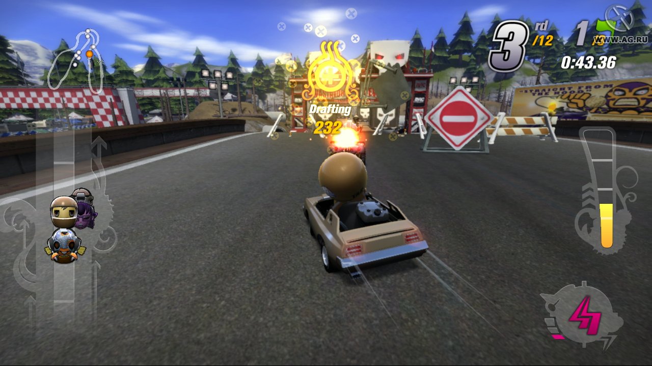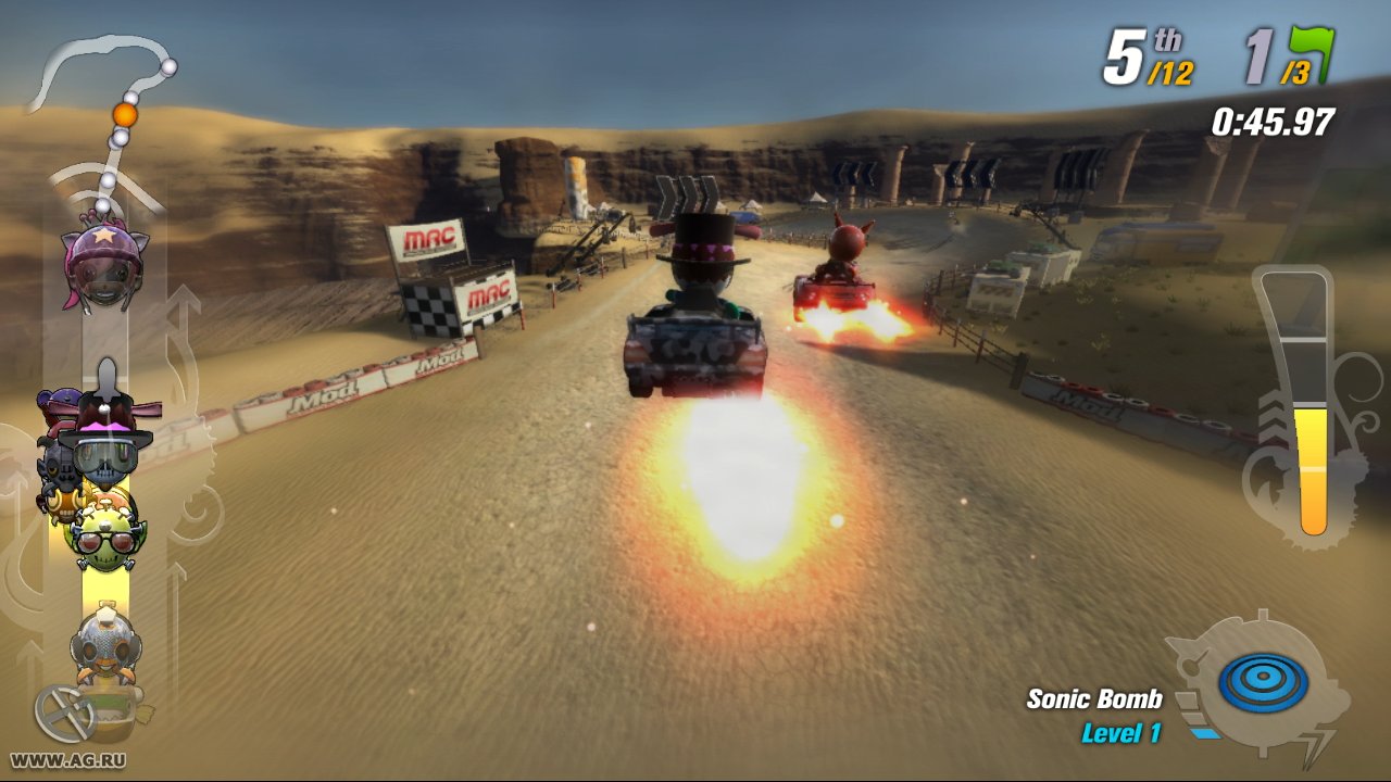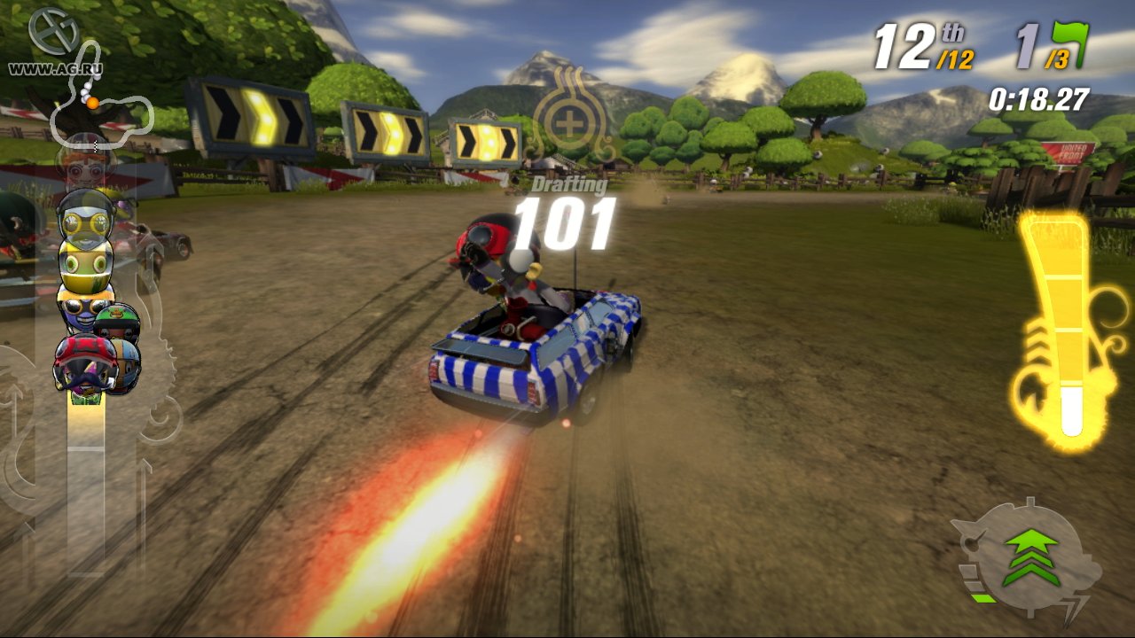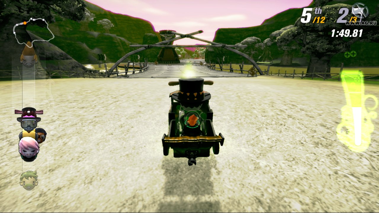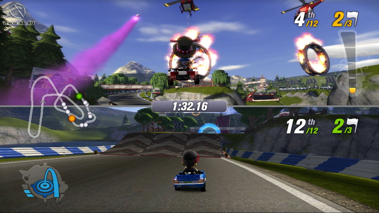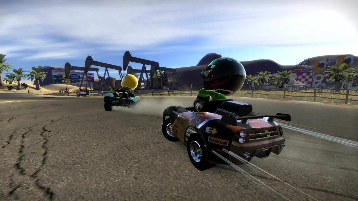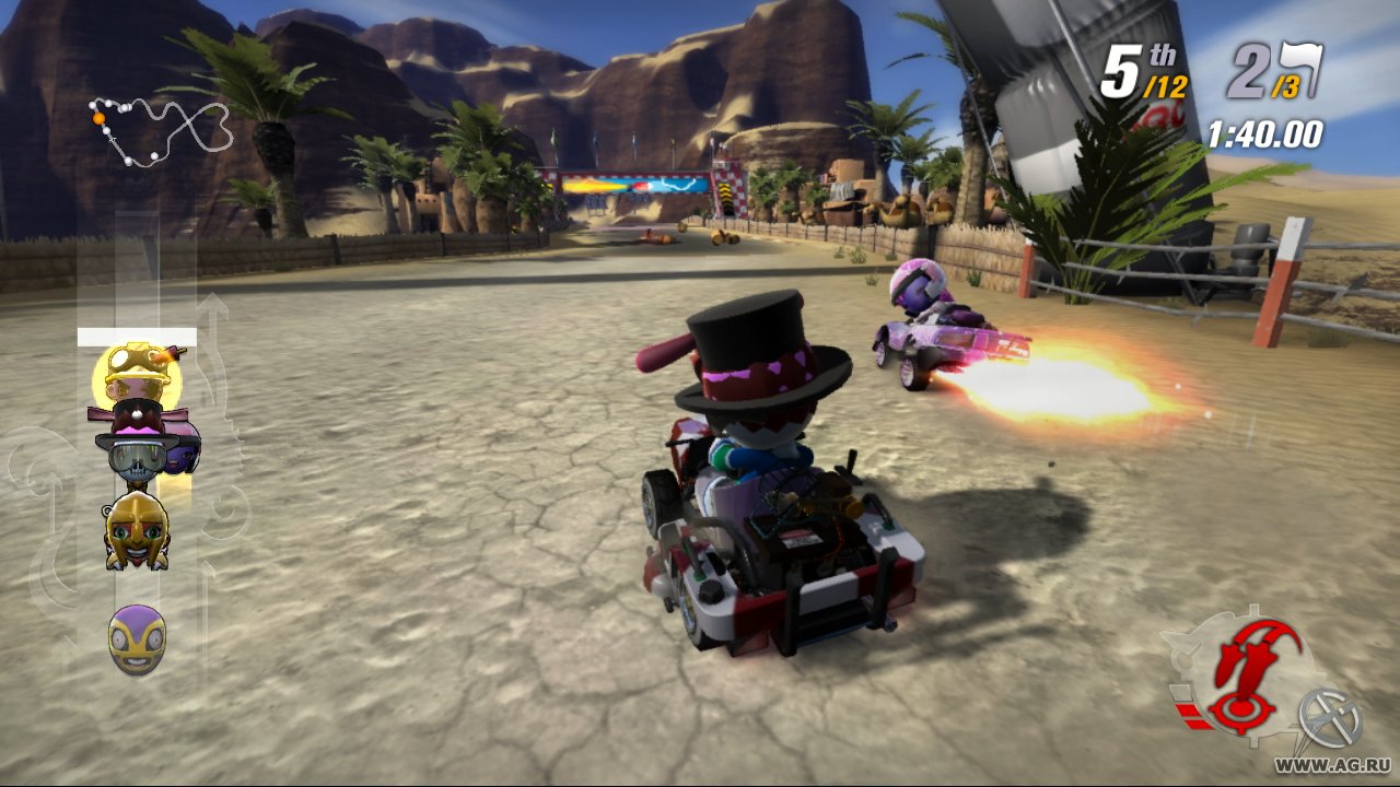Забудьте про скучные гонки с идеальными машинами и асфальтом, который вылизан до блеска! Встречайте ModNation Racers — это не просто картинг-гонки, это настоящий цирк скорости, где ваша фантазия — главный режиссер, а законы физики — всего лишь рекомендации. Представьте себе любовное дитя Mario Kart и LittleBigPlanet: здесь вы не только мчитесь по трассе, оставляя за спиной клубы дыма и вражеские болиды, но и сами лепите из этого безумия всё, что душе угодно. Это игра-конструктор для тех, кто всегда мечтал поставить на колёса своего любимого персонажа или создать трассу, которая напоминает квест из "Форт Боярд". Жанр? Назовём его "аркадные гонки с элементами творчества и здоровенной долей хаоса".